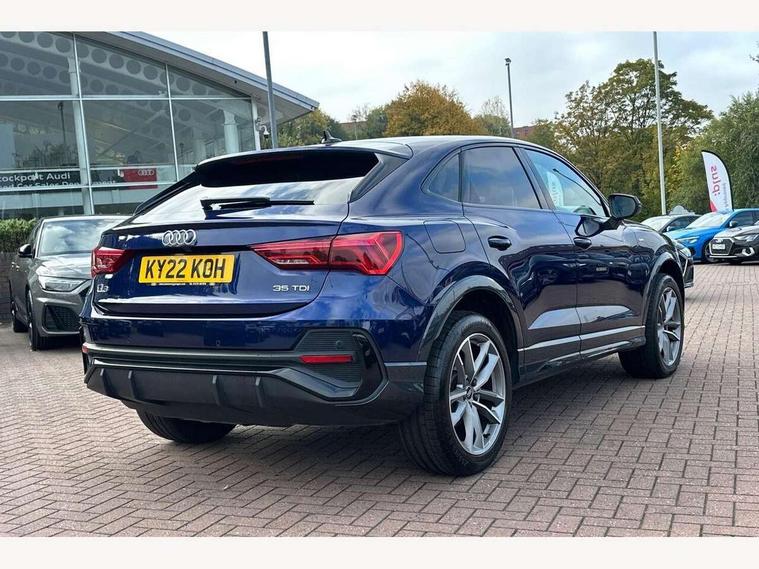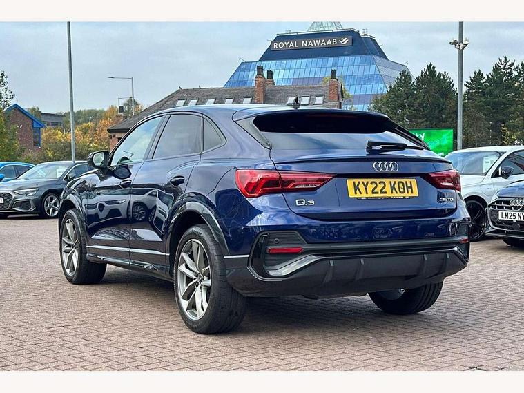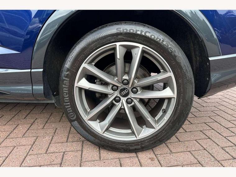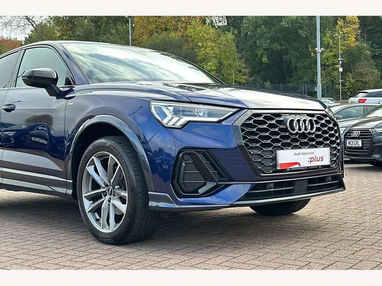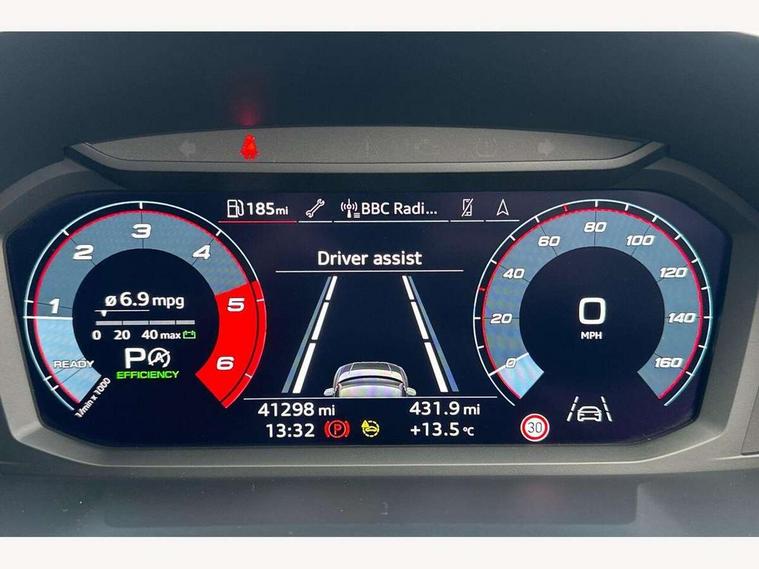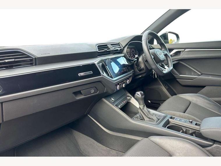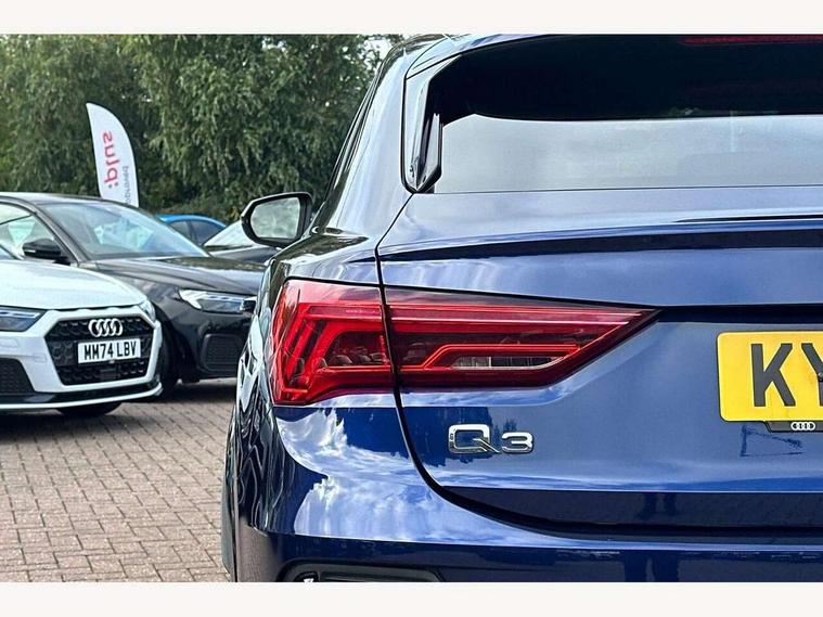 Audi drive select, Audi lane departure warning, Audi smartphone interface includes wireless Apple carplay/Android Auto, Audi Virtual Cockpit - 10.25" display, Bluetooth interface, Camera based traffic sign recognition, Legal emergency call, MMI Navigation Plus with high resolution 10.1 inch touchscreen colour display, Power operated tailgate, Progressive steering, Service interval indicator, Start stop system with recuperation, Voice control system with natural language interaction, Diesel particulate filter, Sports suspension, 2 USB-C ports with charge and data functions, 6 passive loudspeakers, DAB digital radio module, Acoustic windscreen, Auto dimming frameless rear view mirror, Diffuser grille in grained matt black, Diffuser trim in selenite silver, Electrically folding, adjustable and heated door mirrors with integrated LED side indicators and kerb view function for passenger side, Front and rear electric windows, Front fog lights, Front side air inlets in selenite silver, Front underbody protection in manhattan grey paint finish, High gloss black finish B and C pillars, LED headlights with LED daytime running lights, LED rear lights, LED third brake light, Privacy glass dark tinted rear and rear-side windows (from B-pillar backwards), Rain and light sensors, Rear side wing doors, Rear underbody protection in matt black, Rear wiper, Variable front intermittent wipers, 12V socket in rear centre console, 3 seat bench in 2nd row, 40:20:40 folding with manual adjustment for 60:40 forwards/backwards position and backrest angle, Adjustable rear seat bench/backrest with centre armrest and cupholder, Black cloth headlining, Dual zone electronic climate control, Front and rear black floor mats with contrast stitching, Front and rear headrests, Front and rear roof module including reading lights, Front centre armrest, Glove compartment lighting, Height and reach adjustable steering wheel, Illuminated door sill trims with S logo, ISOFIX child seat mounting for front passenger with airbag deactivation and outer rear seat including top tether attachment point for outer rear seats, Luggage compartment light in right, Luggage compartment sill protection in stainless steel, Manual front seats with height adjustment, Perforated leather gearknob, Single front passenger seat, Stainless steel pedals, Black styling pack - Q3, Non smoking pack - Q3, 3x3 point rear seatbelts, 6 airbags - Driver, front passenger, curtain and side windows, Electromechanical parking brake, Electronic stabilisation control including ABS, ASR and EDL, Front seatbelt reminder, Hill descent control, Hill hold assist, Manual child lock in rear doors, Pre sense basic, Seatbelt monitoring, Tyre pressure warning, Warning triangle and first aid kit, Anti theft alarm, Anti theft wheel bolts, Audi pre-sense front with pedestrain and cyclist recognition, Immobiliser, Remote central locking, Black dashboard, Leatherette door armrest, MMI touch colour display in glass look, black with surround in aluminium look, Piano black inlay,