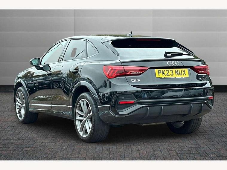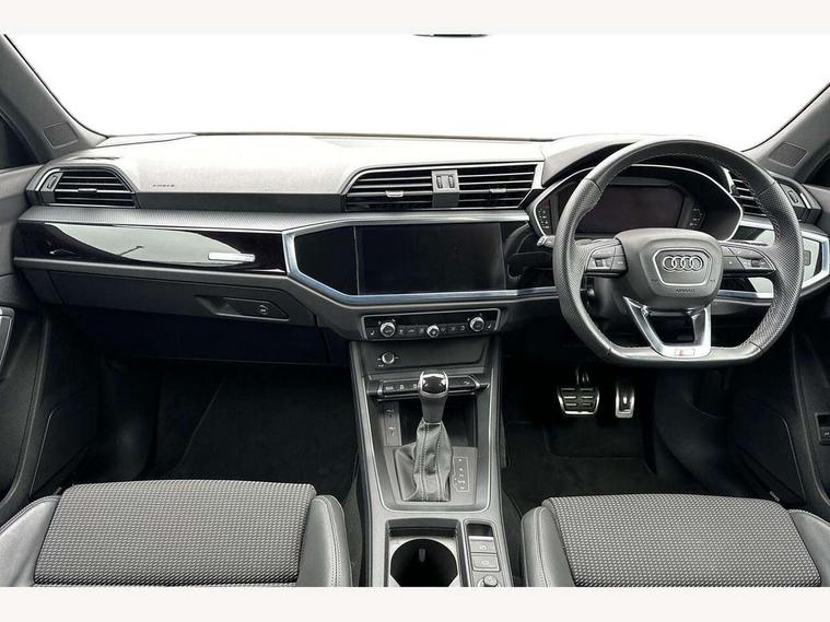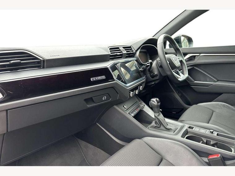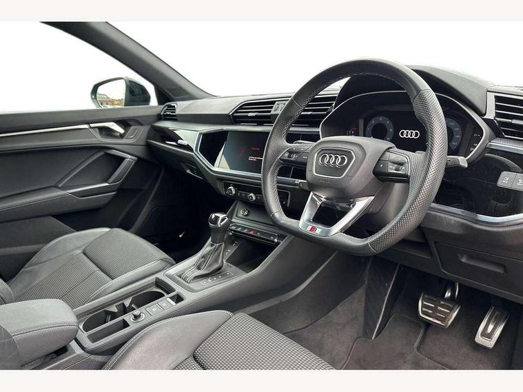 Audi drive select, Audi lane departure warning, Audi Virtual Cockpit - 10.25" display, Bluetooth interface, Camera based traffic sign recognition, Legal emergency call, MMI Navigation Plus with high resolution 10.1 inch touchscreen colour display, Power operated tailgate, Progressive steering, Service interval indicator, Smartphone interface includes wireless Apple carplay/Android Auto, Start stop system with recuperation, Voice control system with natural language interaction, Diesel particulate filter, Sports suspension, 2 USB-C ports with charge and data functions, 6 passive loudspeakers, DAB digital radio module, Acoustic windscreen, Auto dimming frameless rear view mirror, Diffuser grille in grained matt black, Diffuser trim in selenite silver, Electrically folding, adjustable and heated door mirrors with integrated LED side indicators and kerb view function for passenger side, Front and rear electric windows, Front fog lights, Front underbody protection in manhattan grey paint finish, High gloss black finish B and C pillars, LED Dynamic rear indicators, LED headlights with LED daytime running lights, LED rear lights, LED third brake light, Privacy glass dark tinted rear and rear-side windows (from B-pillar backwards), Rain and light sensors, Rear side wing doors, Rear underbody protection in matt black, Rear wiper, Variable front intermittent wipers, 12V socket in rear centre console, 3 seat bench in 2nd row, 40:20:40 folding with manual adjustment for 60:40 forwards/backwards position and backrest angle, Adjustable rear seat bench/backrest with centre armrest and cupholder, Black cloth headlining, Dual zone electronic climate control, Front and rear black floor mats with contrast stitching, Front and rear headrests, Front and rear roof module including reading lights, Front centre armrest, Glove compartment lighting, Height and reach adjustable steering wheel, Illuminated door sill trims with S logo, ISOFIX child seat mounting for front passenger with airbag deactivation and outer rear seat including top tether attachment point for outer rear seats, Luggage compartment light right in white, Luggage compartment sill protection in stainless steel, Manual front seats with height adjustment, Perforated leather gearknob, Single front passenger seat, Stainless steel pedals, Ambient lighting pack - Q3, Black styling pack - Q3, Non smoking pack - Q3, 3x3 point rear seatbelts, 6 airbags - Driver, front passenger, curtain and side windows, Audi pre-sense front with pedestrain and cyclist recognition, Electrically operated child locks on rear doors, Electromechanical parking brake, Electronic stabilisation control including ABS, ASR and EDL, Front seatbelt reminder, Hill descent control, Hill hold assist, Pre sense basic, Seatbelt monitoring, Tyre pressure warning, Warning triangle and first aid kit, Anti theft alarm, Anti theft wheel bolts, Immobiliser, Remote central locking, Aluminium look interior elements, Black dashboard, Detail dashboard around MMI touch colour display in glass look, black with surround in aluminium look, Leatherette door armrest, Piano black inlay, 19" 5 twin arm design diamond cut audi sport alloy wheels in matt grey look,