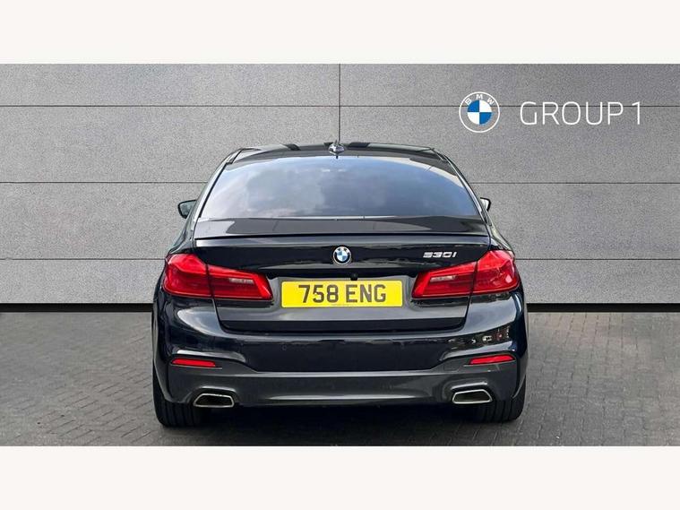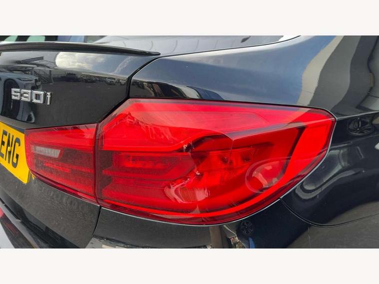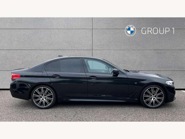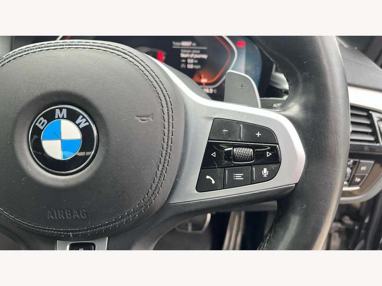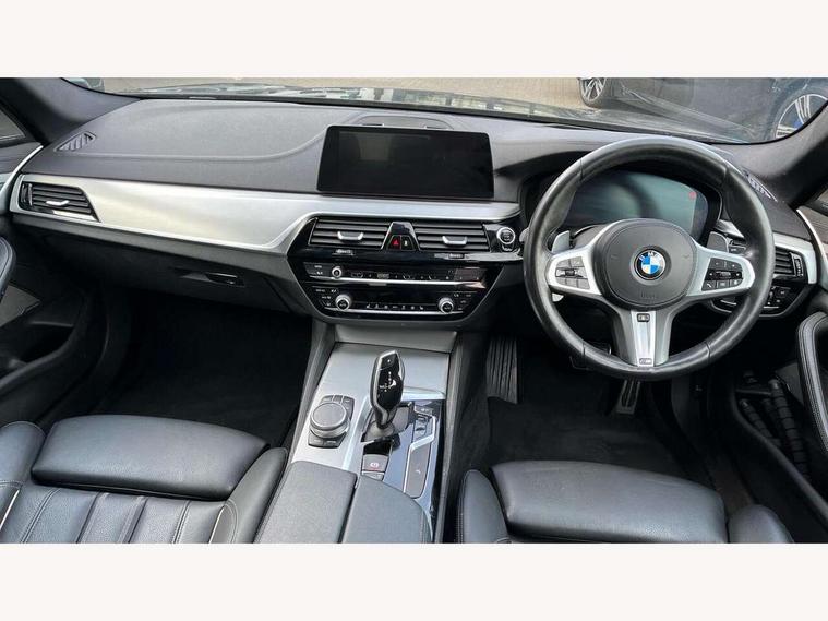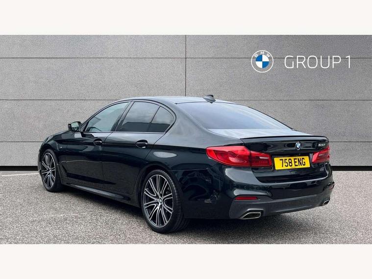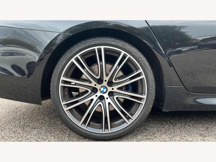 20GB hard disc drive (HDD) memory, BMW Live Cockpit Professional sat nav system including 10.25" high resolution display and Intelligent Voice Assistant, BMW Online services, BMW Teleservices, Brake force display, Control display - 10.25" colour touch sensitive display screen, iDrive touch controller with shortcut buttons, Navigation System Professional Multimedia, Oil sensor for level and grade, On board computer inc. average speed, fuel consumption, liquid crystal Info display, journey computer, outside temperature display, personal profile, Service interval indicator, Voice control system, Anti roll bar front and rear, Drive performance control with ECO PRO comfort + sport mode, High precision direct injection, M sport suspension, Petrol Particulate Filter, Sport automatic transmission, VALVETRONIC with Double VANOS, Auxiliary input socket, Bluetooth audio streaming, BMW professional radio with MP3 + DVD playback capability, DAB Digital radio, Favourite buttons, Acoustic glazing, Active air stream kidney grille, All round anti-corrosion system, Auto dimming rear view mirror, Body colour door handles, Body coloured bumpers, Body coloured door mirrors, Body coloured side sills, Door handle illumination, Dynamic brake lights with LED technology, Electric front and rear windows with fingertip open/close + anti-trap facility and comfort closing function, Electrically adjustable and heated exterior mirrors includes integrated direction indicators, Follow me home headlights, Heated windscreen washer jets, Interior rear view electrochromatic mirror with automatic anti dazzle function, LED daytime running lights, LED fog lights, Left and right single chrome quadrilateral exhaust tailpipes, M aerodynamic bodystyling, Rain sensor with automatic headlight activation, 12V power socket in front and rear, 3 Spoke M sports leather steering wheel, Ambient interior lighting with 6 selectable light designs, Battery in luggage with jump start facility, Door sill finishers with BMW designation, Front and rear armrests integrated in door trim + centre console includes storage compartment and rear centre armrest includes 2 cupholders, Front and rear cupholders x 2, Front and rear door sill inlays with illuminated BMW M designation, Front and rear footwell lights, Gearshift paddles, Height and length adjustable steering column and activation via lateral lever on the steering column, Lockable glove compartment with light, M specific floor mats, M specific key, M specific pedals, M specific steering wheel, Multi-function controls for steering wheel, Rear headrests, Connected package professional - 5 Series, 3x3 point rear seatbelts, Anti-lock braking system (ABS), Automatic Stability Control (ASC), BMW emergency call, Brake assist function, Brake energy regeneration, Child seat ISOFIX attachment rear outer seats, Cornering brake control (CBC), Crash Sensor - activation of central locking release, hazard warning light and interior lighting, Deformation zones front and rear with door reinforcements and bumpers that regenerate, Driver/front passenger, rear and side airbags, Driver/Passenger airbags (Impact dependent), DSC - Dynamic Stability Control, Dynamic brake control, Dynamic Traction Control - DTC, Electromechanical parking brake with automatic drive away release and auto hold function, Electronic brake force distribution, Engine drag torque control, Front head restraints with anti-whiplash, Front passenger airbag deactivation, Head airbags for first and second row seats, Hill start assist, M Sport braking system, Seat belts front inertia reel with pyrotechnical belt latch tensioner, belt force limiter and belt restrainer, Side impact protection, Three inertia reel rear seatbelts, Two tone horn, Tyre pressure monitoring system, Warning triangle and first aid kit, Alarm system with remote control and engine immobiliser, Locking wheel bolts, Remote central locking,