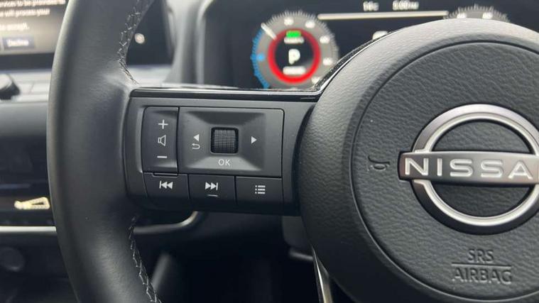 Android auto/Apple CarPlay (Wired), Blind spot warning, Drive modes (sport, normal, eco), Electric speed sensitive power steering, Emergency and breakdown call, Front and rear parking sensors, Full Digital 12.3" TFT Digital Combimeter, Google maps services - search, weather, 3D maps and Google street view, Idle stop/start system, Intelligent around view monitor, Intelligent Cruise control (ICC), Intelligent driver alert system, Intelligent forward collision warning, Intelligent lane intervention, Lane departure prevention, Lane departure warning system, Maximum speed limiter, Moving object detection, Nissan connect 12.3 inch touchscreen infotainment system, Nissan connect navigation, Push button starter, Rear cross traffic alert, Rear view camera, Remote control services - door locks, lights, horn and car locator, Telematics - notifications and connectivity services, TomTom live traffic services, Traffic sign recognition with legal speed adjustment, Trip computer, Virtual personal assistant and firmware over the air capability, Wireless apple carplay, 6 speakers, AM/FM audio system with DAB, Bluetooth audio streaming, Front USB connections (Type-A and Type-C), Rear USB charging only ports (Type-A and Type-C), Auto dimming rear view mirror, Auto rear wiper when reversing, Automatic hazard signal with emergency stop signal, Body colour mirror caps, Body coloured door handles, Bodyside mouldings, Chrome side window finisher, Door handle with button, e-POWER badging, Electric auto folding door mirrors, Electrically adjustable and heated door mirrors with LED turn indicator, Follow me home headlights, High beam assist, Intelligent auto headlights, LED daytime running lights, LED Headlights, LED rear lights, One touch front and rear electric windows with remote opening and closing, Partially body coloured bumpers, Privacy glass, Rear bumper with graphite insert, Rear reversing light (bulb lighting), Rear roof spoiler, Rear side wing doors, Rear styling plate, Shark fin antenna, Splash free rain sensing wipers, Super UV and infrared cut glass, Three blink turn signal, 12v power socket in dashboard and luggage, 2x Rear coat hooks, 3 bench rear seats in 2nd row, 3 rear headrests, 4 folding assist grip, 6-way manually adjustable driver's seat, 60/40 split folding rear seat bench, Ambient lighting around centre console, Centre console storage tray, Chrome interior door handles, Cloth monoform upholstery, Driver and front passenger sunvisors with illuminated vanity mirrors, Driver seat back pocket, Dual zone automatic climate control with pollen filter, e-POWER shifter, Front and rear door storage, Front centre console and armrest, Front cupholders x 2, Front door with bottle holders, Glovebox with light, Hard trunk cover, Height adjustable driver's seat, Height adjustable front headrests, Height adjustable passenger seat, Leather steering wheel, Luggage board system, Luggage space lighting, Manually adjustable passenger (slide recline + lifter), Multifunction steering wheel, Passenger seat back pocket, Rear armrest with 2 cupholders, Rear door bottle holders, Single front passenger seat, Soft PVC kneepad, Steering wheel switches, Sunglasses holder, Tilt/telescopic adjustable steering wheel, Two rear isofix child seat anchorage points with top tether, Welcome light and console tray ambient lighting, 3x3 point rear seatbelt pretensioners + load limiters, ABS with EBD and brake assist, Active brake limited slip, Auto hold function, Child locks on rear doors, Curtain and front side, far side airbags, Driver and passenger airbags, Driver, passenger and 2nd row rear seat belt reminder, Electronic parking brake, Front seatbelt pretensioners + load limiters, Height adjustable front seatbelts, Hill start assist, Intelligent blind spot intervention, Intelligent front emergency braking with pedestrian, cyclist recognition and junction assist, Intelligent rear automatic braking, Tyre pressure monitoring system, Vehicle dynamic control, Capless fuel filler, Engine immobiliser, Intelligent Key, Remote central door locking with deadlocking, Thatcham Cat.1 alarm, Interior instrumental panel B finisher, 18" Diamond cut alloy wheels, Tyre puncture repair kit,