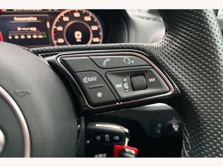 Audi connect navigation and infotainment includes innovative services, Audi connect remote and control connects your vehicle to your smartphone, Audi drive select, Audi smartphone interface, Audi virtual cockpit, Automatic start/stop system with recuperation, Bluetooth interface includes bluetooth audio streaming, Cruise control, MMI navigation plus with MMI touch, Power operated tailgate, Progressive steering, Rear parking sensors, 2 x SDXC card reader, 8 passive loudspeakers, DAB Digital radio, DVD Drive, Auto dimming rear view mirror, Black window trims, Body colour door mirrors, Electrically adjustable, folding, auto dimming and heated door mirrors with integrated LED side indicators, Front windscreen with grey tinted sunband, LED headlights with LED rear lights, S Line badges on the front wings, S Line body styling - front and rear bumpers, side skirts, radiator grille, rear diffuser insert and front air intakes, Wheel arch trims in manhattan grey, 4-way electric lumbar support for front seats including seat height adjustment for both front seat, 60/40 split folding rear seat bench, Black cloth headlining, Front and rear head restraints, Front centre armrest, Front/rear floor mats, Height/reach adjust steering wheel, Illuminated door sill trims with S logo, ISOFIX child seat mounting for front passenger with airbag deactivation and outer rear seat including top tether attachment point for outer rear seats, Stainless steel pedals, 3x3 point rear seatbelts, 6 airbags - Front, curtain and front side airbags, Electromechanical parking brake, Electronic stabilisation control including ABS, ASR and EDL, Hill hold assist, Pre-sense front with pedestrian recognition, Seatbelt monitoring, Tyre pressure warning light, Warning triangle and first aid kit, Anti theft alarm, Anti theft wheel bolts, Electronically operated child locks, Aluminium interior element, Matt brushed aluminium trim inlays, Tool kit,