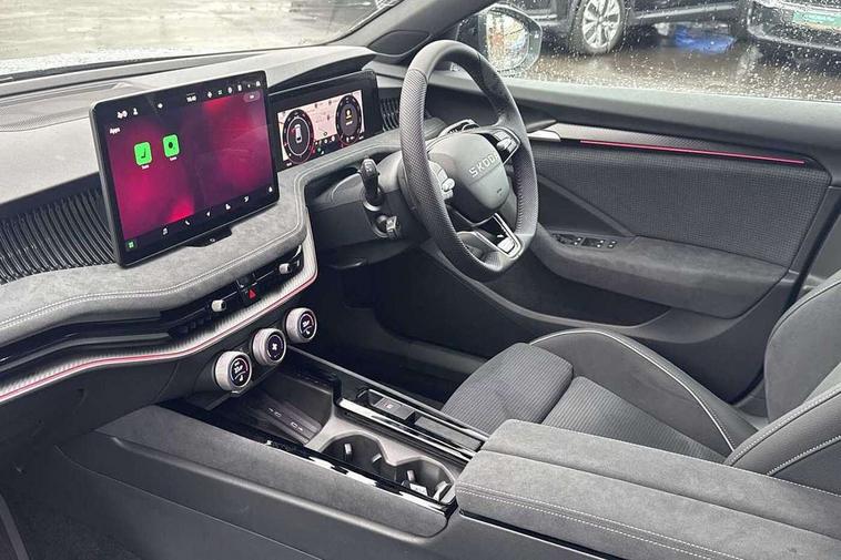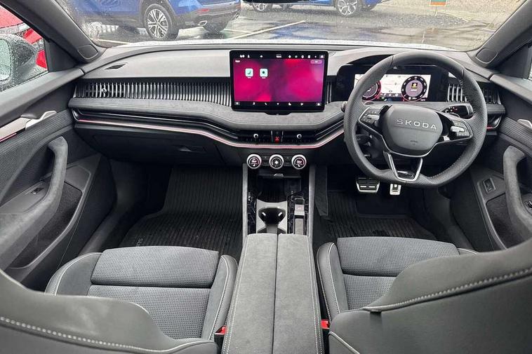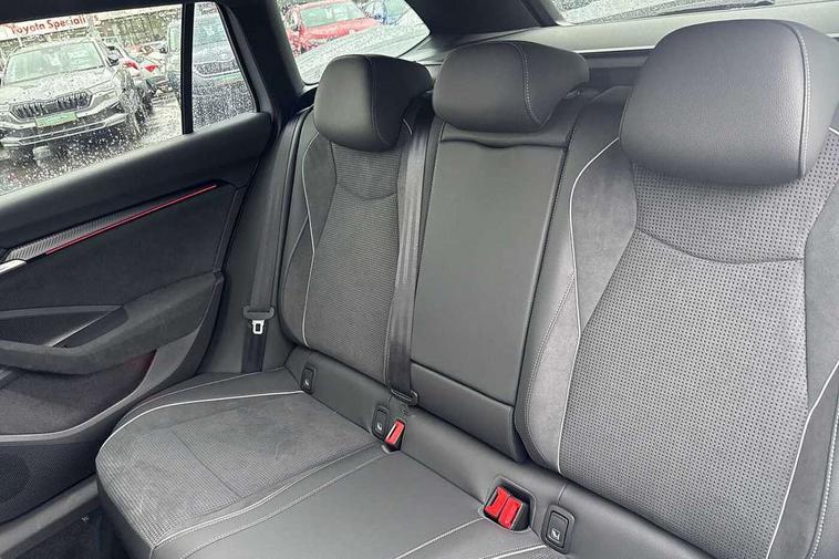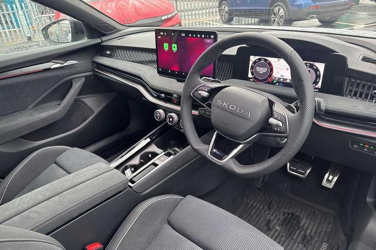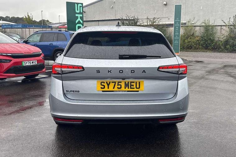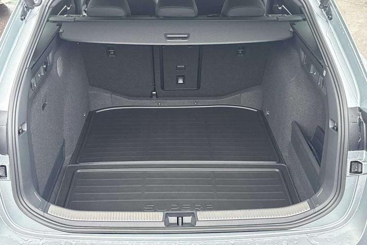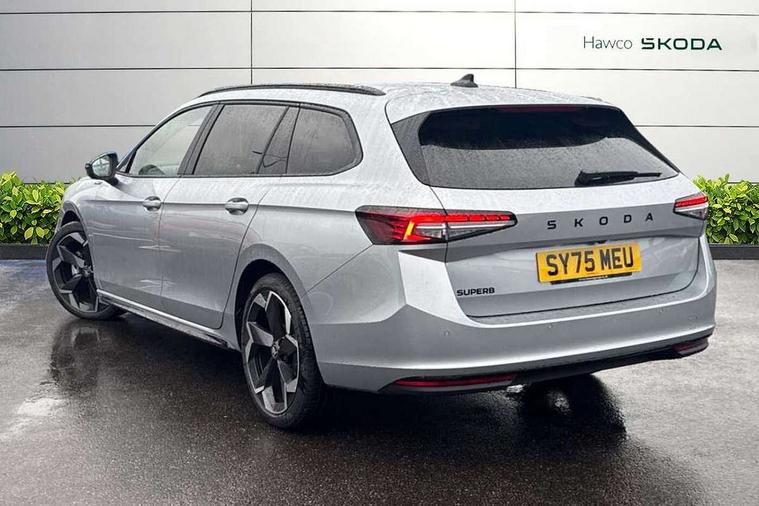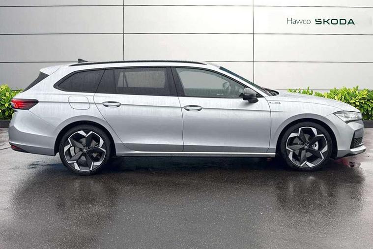 13" touchscreen display with satellite navigation, 4x USB-C ports (2x in front centre console and 2x in rear) (45W), Adaptive cruise control with speed assist, lane assist plus and traffic tram assist, Blind spot detection with door exit warning, Bluetooth system, CareConnect and Emergency Call, ChatGPT functionality, Driver fatigue sensor, Front assist with extended predictive pedestrian protection, Front cross traffic assist, PAS, Quick start all heating software functionality, Stop/start engine system, Traffic sign recognition, Turn assist with evasive assistance, Virtual Cockpit - 10.25" digital display, Voice control system, Washer for rear camera, Wireless charging for one smartphone (15W) with cooling function, Wireless smartlink apple carplay, SmartLink+ android auto, Dynamic chassis control plus with progressive dynamic steering, DAB Digital radio, Display cleaner, FM radio connection, Web radio connection, Acoustic side windows and interior noise suppression, Backdrop lighting, Black exterior styling window and grille surrounds, Black roof rails, Body colour door handles, Dynamic range control with poor weather light and integrated fog light, Electrically adjustable, heated, folding and driver side auto-dimming door mirrors with memory function, integrated indicators and logo projection, Frameless auto-dimming rear view mirror with USB-C, Gloss black door mirrors, Ice scraper in fuel tank cap, LED 3rd brake light, Light assist with High beam control, Light assistant (coming/leaving home/tunnel light), Privacy glass, Rear fog lights (x2), Rear roof spoiler, Rear side wing doors, Rear windscreen wiper, Skoda lettering in black, Sportline badging, Sports bumpers, Windscreen wipers with rain sensor, 12V socket 1x centre console 1x boot, 14-way electrically adjustable, memory, front seats with 4-way pneumatic lumbar support, and extendable thigh support with smart comfort entry aid, 2x cargo elements in boot, 2x light in boot, 3 seat bench in 2nd row, 4x foldable bag hooks in boot, 60:40 Split folding rear seats, Aluminium pedals, Bottle holders in the front doors 1.5 litre bottle and rear 1.5 litre bottle, Cup holder in front with easy open mat, Front armrest with storage box, Front sports seats, Heated and ventilated front seats, Height adjustable front and rear head restraints, Illuminated glovebox, Interior lights with control switches, Isofix child seat fittings in outer rear and front passenger seats, LED front and rear reading lights, Single front passenger seat, Skoda lettering on steering wheel, Storage compartment with cover, Storage pockets on back of front seats, Sun visors with illuminated vanity mirrors, Ticket holder on A Pillar, Tri zone climate control, Umbrella in driver's door, Light and view package - Superb, Transport package - Superb Estate, 3 rear seatbelts, 8 Airbags - Front driver and passenger, front side driver and passenger, centre, curtain front and rear, drivers knee, Crew protect assist, Driver and passenger seatbelts with warning light, Electronic parking brake, ESC including ABS, EBV, MSR, ASR, EDS, HBA, DSR, RBS, CBC, multi-collision brake (MKB) and Auto hold, Hill hold assist, Power operated child lock in rear doors, Alarm with interior monitoring tilt sensor and back up horn, Backrest remote release from trunk, Electronic engine immobiliser, Keyless start/stop, Remote central locking with SAFE system, Third key, Walk away locking, Decorative front door sills, 19" Torcular polished black alloy wheels with anti theft wheel bolts,