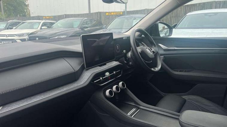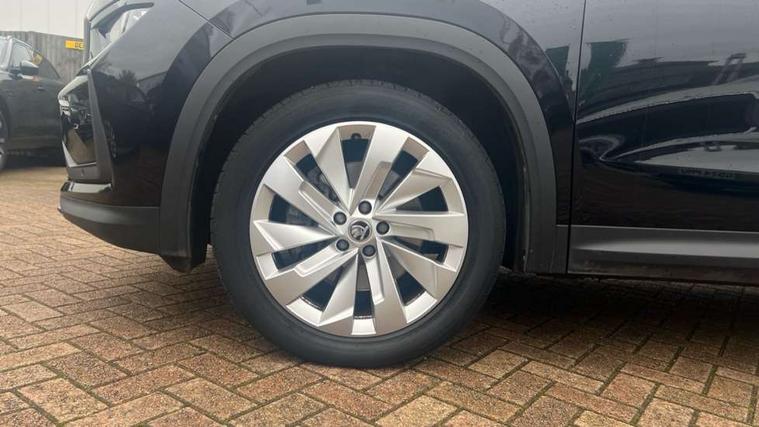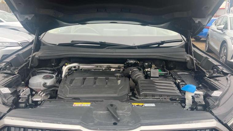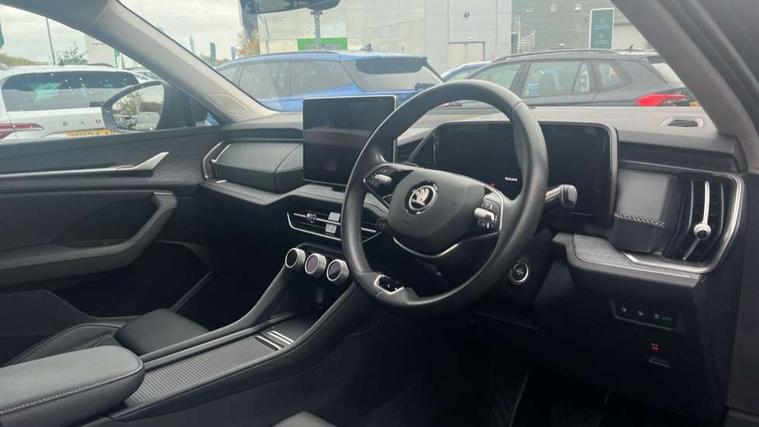 13" satellite navigation touchscreen display, Blind spot detection with door exit warning, Bluetooth system, Drive mode selector, Driver alert with fatigue sensor, Driver drowsiness alert system, Dry display cleaner, e call+, Front cross traffic assist, Lane assist, PAS, Rear traffic assist, Tailgate unlocking from outside, Traffic sign recognition, USB C Port x 2 in front centre console, Virtual Cockpit - 10.25" digital display, Voice control system, Wireless charging for two smartphones (15W) with cooling function, Wireless SmartLink for Apple CarPlay and Android Auto, Stop/start function, 2x USB-C in the rear, DAB Digital radio, Aero front windscreen wipers with intermittent function, Auto dimming rear view mirror, Black wheel arch surrounds, Body colour bumpers, Body colour door mirrors and handles, Cornering light and poor weather light, Electric folding /adjustable/separted heated/folding door mirrors, auto dimming with boarding sports and memory function, Electric front and rear windows, Heat insulating glass in windshield, Heated rear window, Ice scraper in fuel tank cap, Invisible tailpipe, LED daytime running lights, LED rear fog light, LED third brake light in rear spoiler, Light assistant with automatic headlight control and coming home feature, Logo projection in door mirrors, Privacy glass, Rear side wing doors, Rear spoiler, Rear window wiper, Safety reflectors on front and rear doors, Window control switches with black trim, Windscreen wipers with rain sensor, Without engine designation, 1.5l bottle holder points in all door, 12V socket in boot, 1x centre rear reading light, 2 seat bench in 3rd row, 3 configurable smart dials with 32mm coloured display, 3 seat bench in 2nd row, 4 foldable roof handles with rear coat hooks, Automatic gear selector on steering wheel, Chrome interior door handles, Driver/front passenger reading lights, Fabric headlining, Fixed bench 40:60:40 split folding backrests, Front and rear floor mats, Front centre armrest with jumbo box storage compartment, cup holder and 12V socket, Front courtesy lights, Height adjustable front headrests, Interior ambient lighting, Isofix child seat fittings in outer rear seats and front passenger with top tether, Manually adjustable steering column, Pollen filter, Rear centre armrest with cupholders, Rear seat boot backrest release, Retractable luggage compartment cover, Single front passenger seat, Sliding trunk cover, Small Bags on the inner sides of the front backrests, Storage pocket including mobile phone pockets on the backs of the front seats, Sunvisors with illuminated vanity mirrors, Three rear height adjustable headrests, Ticket holder on A Pillar, Tri zone climate control, Umbrella in door panel x1 made from sustainable materials, Upper and lower glovebox with card holder and coin compartment, USB C port by rear view mirror for charging only (15W), Exterior styling package - Kodiaq, Auto door release and activation of warning lights in the event of an accident, Driver and front passenger airbag with knee airbag and front passenger airbag deactivation, Electric child locks, Electronic parking brake, ESC (incl. ABS+EMD+MSR+ASR+EDL+HBA+DSR+RBS+ESBS+MCB+TSA+XDS), Front assist with braking reaction to vehicles, pedestrians and cyclists, Front disc brakes, Fuel cut off safety device, Height adjustable front 3 point seatbelts + pretensioners, Hill hold control, Junction assist with automatic emergency braking, Rear disc brakes, Safety vest holder in door, Seat belt reminder for all seats, Three point rear seat belts, Two tone horn, Tyre pressure monitor, Anti-theft wheel bolts, Immobiliser, Remote central locking with 2 keys, Black/grey fabric with green cross stitching on dashboard, Swan feathers grey dashboard and door decorative inserts, Breakdown kit,