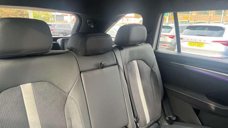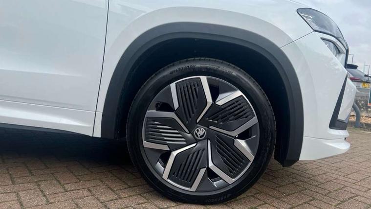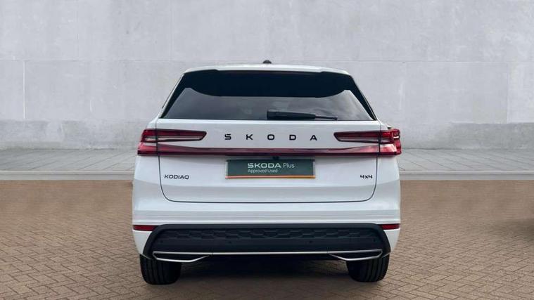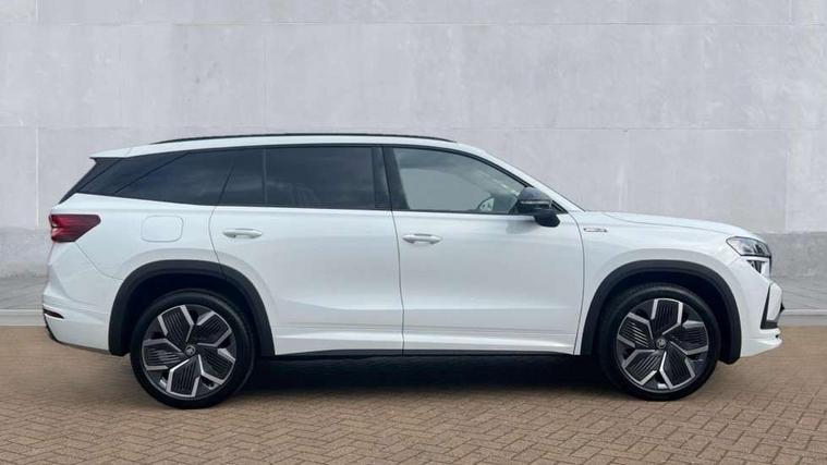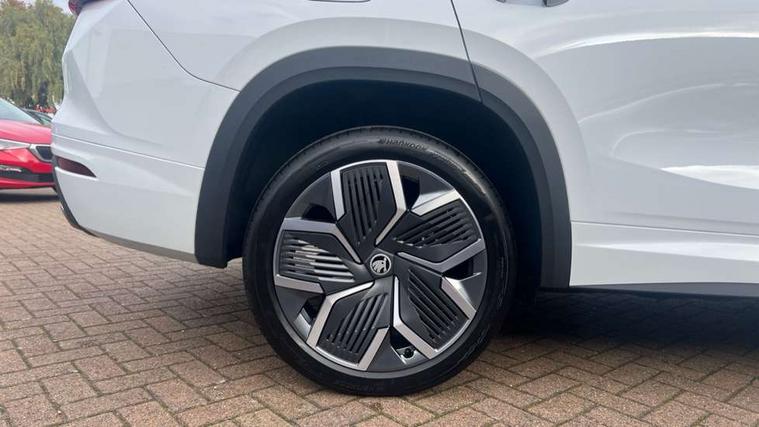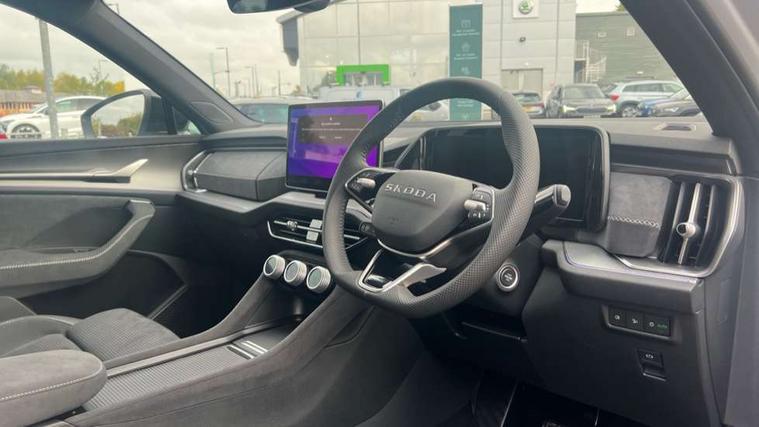 13" satellite navigation touchscreen display, Blind spot detection with door exit warning, Bluetooth system, ChatGPT functionality, Driver alert - Fatigue and drowsiness monitor, Dry display cleaner, Emergency call, Front and rear parking sensors, Front cross traffic assist, Lane assist, Off road modes, PAS, Rear traffic assist, Tailgate unlocking from outside, Traffic sign recognition, USB C Port x 2 in front centre console, Virtual Cockpit - 10.25" digital display, Voice control system, Wireless charging for two smartphones (15W) with cooling function, Wireless SmartLink for Apple CarPlay and Android Auto, Stop/start function, 2x USB-C in the rear, DAB Digital radio, Aero front windscreen wipers with intermittent function, Auto dimming rear view mirror, AWL (all weather lighting) and all weather light with cornering function, Black diffuser and decorative tailpipe with a unique dark chrome finish, Black roof rails, Black sports styling including front grille and window surrounds, Black wheel arch surrounds, Body colour door handles, Cornering light and poor weather light, Electric folding /adjustable/separted heated/folding door mirrors, auto dimming with boarding sports and memory function, Electric front and rear windows, Exterior black decorative trims, Front and rear sports bumpers including lower rear chrome strip, Gloss black door mirrors, Gloss black window frame and D pillar, Heat insulating glass in windshield, Heated rear window, Ice scraper in fuel tank cap, LED daytime running lights, LED third brake light in rear spoiler, Light assistant with automatic headlight control and coming home feature, Logo projection in door mirrors, Privacy glass, Rear roof spoiler, Rear side wing doors, Rear window wiper, Red decorative strip between rear LED lights, Safety reflectors on front and rear doors, Sportline badge on front fenders, Tailgate lettering in Black, Unique dark chrome design logo on alloy wheels, Window control switches with black trim, Windscreen wipers with rain sensor, Without engine designation, 1.5l bottle holder points in all door, 1x centre rear reading light, 2 seat bench in 3rd row, 3 configurable smart dials with 32mm coloured display, 3 seat bench in 2nd row, 4 foldable roof handles with rear coat hooks, Aluminium pedals, Ambient interior lighting - Dashboard, front-door stowage compartments, front and rear door panels and footwell lighting, Automatic gear selector on steering column, Chrome interior door handles, Driver/front passenger reading lights, Fabric headlining, Fixed bench 40:60:40 split folding backrests, Front and rear floor mats, Front centre armrest with jumbo box storage compartment, cup holder and 12V socket, Front sport seats, Height adjustable front headrests, Interior black decorative trims, Isofix child seat fittings in outer middle row rear seats and front passenger with top tether, Manually adjustable steering column, Pollen filter, Rear centre armrest with cupholders, Rear seat boot backrest release, Single front passenger seat, Skoda lettering on steering wheel, Storage pocket including mobile phone pockets on the backs of the front seats, Sunvisors with illuminated vanity mirrors, Three rear height adjustable headrests, Ticket holder on A Pillar, Tri zone climate control, Umbrella in door panel x1 made from sustainable materials, Upper and lower glovebox with card holder and coin compartment, USB C port by rear view mirror for charging only (15W), Acoustic package - Kodiaq, Performance package - Kodiaq, Sportline design selection pack - Kodiaq, Auto door release and activation of warning lights in the event of an accident, Driver and front passenger airbag with knee airbag and front passenger airbag deactivation, Electric child locks, Electronic parking brake, ESC (incl. ABS+EMD+MSR+ASR+EDL+HBA+DSR+RBS+ESBS+MCB+TSA+XDS), Front assist with braking reaction to vehicles, pedestrians and cyclists, Front disc brakes, Fuel cut off safety device, Height adjustable front 3 point seatbelts + pretensioners, Hill hold assist, Junction assist with automatic emergency braking, Rear disc brakes, Safety vest holder in door, Seat belt reminder for all seats, Three point rear seat belts, Two tone horn, Tyre pressure monitor, Alarm with interior monitoring and tilt sensor with safe function, Anti-theft wheel bolts, Immobiliser, Remote central locking with 2 keys, 20" Rila anthacite polished alloy wheel with black matte aero covers,