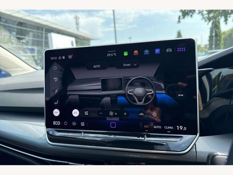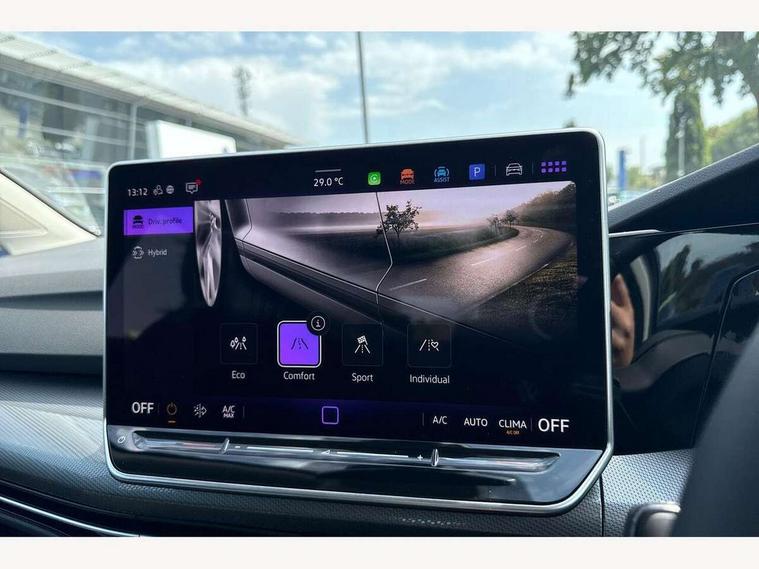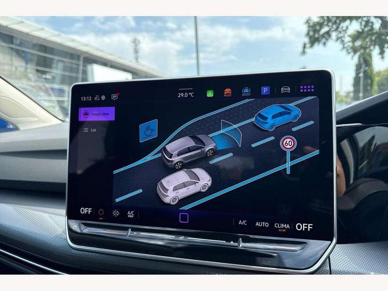 Activated carbon canister, Adaptive cruise control (ACC), Advanced driver attention and drowsiness monitor, Dynamic road sign display, E-Sim card for online connectivity, eCall emergency call system, Multi-color Digital cockpit pro, selection of different info profile possible, Multifunction front facing camera for distance control, Navigation system, Oncoming vehicle braking when turning including swerve support, Side assist blind spot lane change system, rear traffic alert and exit warning system, Speed limiter, Speedo, rev counter, electronic odometer, trip, service interval display, exterior temperature and fuel gauge, Traffic jam assist, Voice enhancer and voice control, Warning signal and warning light for front and rear seatbelts not fastened, We connect plus preparation, We connect preparation, Wireless app connect, Charging cable Mode 2 Type 2 (10A), Charging cable mode 3, type 2 32 A, Hybrid propulsion system, Start-stop system with battery regeneration (recuperation - energy recovery during braking), XDS electronic differential lock for improved traction and handling, 2 USB C ports in front, 2 USB charging sockets on the centre console in the rear charging capacity upto 45W, 6 Speakers - 4 in front and 2 in rear with central speaker, Digital radio reception (DAB), Diversity antenna for FM reception, Gaming platform via car app, Infotainment system with 12.9" display, Mobile phone interface with inductive charging feature, 3rd brake light, Automatic headlamp activation with Coming home and Leaving home feature, Body colour bumpers, Body colour door handles, Body colour door mirrors, Chrome trimmed front air intake surrounds, Chrome trims on the side window bottom, Exterior mirrors convex on the left and aspherical on the right, Front and rear electric windows, Heat insulating windshield made of laminated glass, LED separate daytime running light, Rear exhaust tailpipe, Rear fog light on one side and reversing lights on both sides, Rear side wing doors, Rear windscreen washer and wiper with interval delay, Remote electrically foldable door mirrors, puddle lights and reverse activated passenger's door mirror, Welcome light with surround lighting, 12V socket in front centre console, 12V socket in luggage compartment, 3 rear head restraints, 3 seat bench in 2nd row, Air care climatronic 3 Zone automatic climate control with rear air conditioning control panel, Ambient lighting with 30 colour including LED light unit in front footwell with selectable light colour, Chrome plated radiator grille inserts, air vent surrounds and light switch surrounds, Front + rear black carpet mats, Front centre armrest, ISOFIX anchors for child seats on outer rear bench seats and on front passanger seat compatible for i-Size, Luggage compartment lighting, Plastic gear knob, Rear cupholder and loadthough, Single front passenger seat, Soul black instrument panel, Split folding backrest with centre armrest and unsplit rear seat bench, Standard pedal cluster, Storm grey roof lining, Sun visors with illuminated vanity mirrors, Driver assistance pack - Golf Estate/Hatchback Auto, 3 point height adj front seatbelts + pretensioners, 3 rear three point seatbelts, ABS, Autonomous emergency braking front assist with pedestrian and cyclist monitoring, Child locks on rear doors, Driver and front passenger airbag with front passenger airbag deactivation, Electronic parking brake with auto hold, ESC (Electronic Stability Control), Extended pedestrian protection measures, Hill start assist, Rear disc brakes, Two tone horn, Tyre pressure loss indicator, Volkswagen roadside assistance, Anti theft wheel bolts, Preparation for alcohol interlock, New brushed dark metal decorative inserts for dashboard and front door panels, Tool kit for tyre mobility set, Tyre mobility kit Includes 12V compressor and tyre sealant,