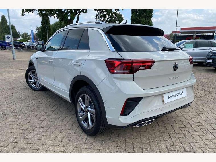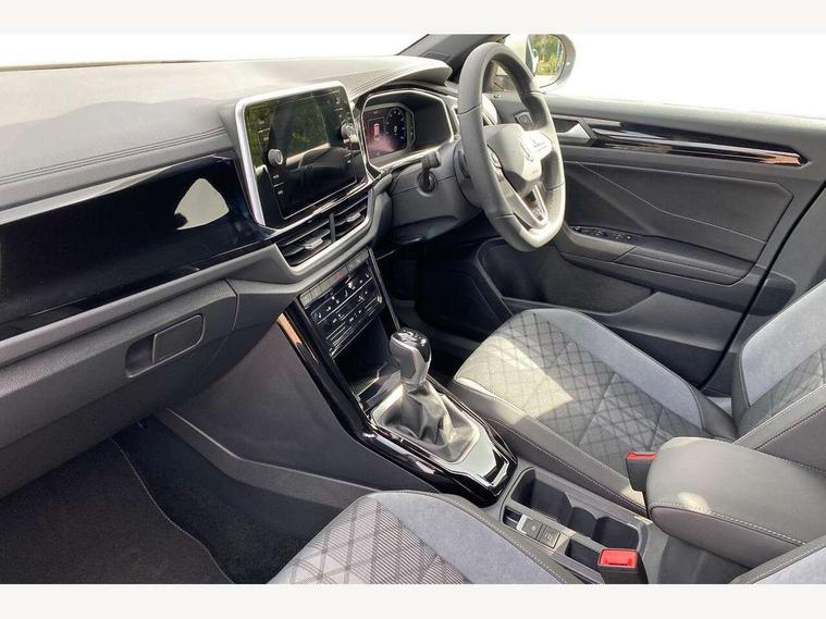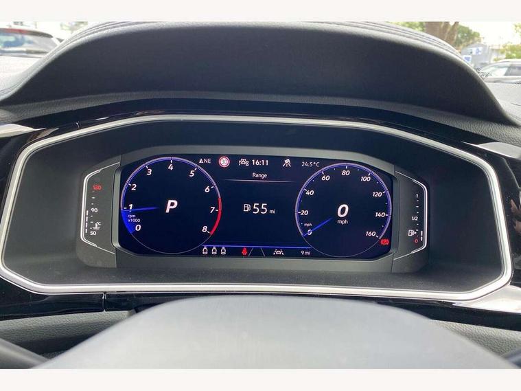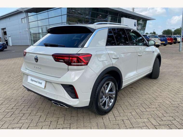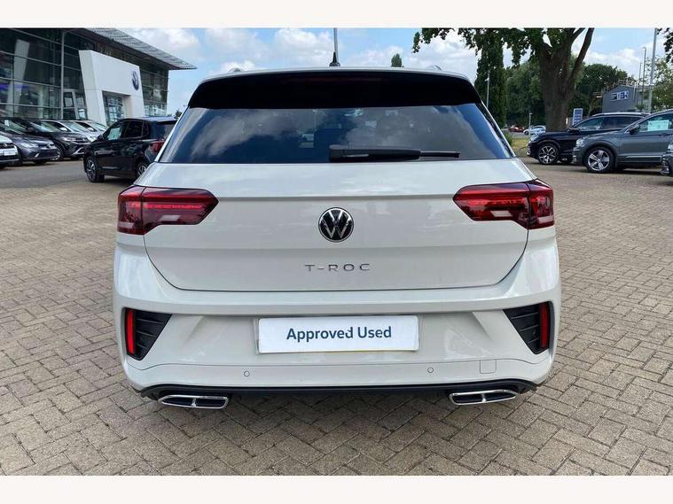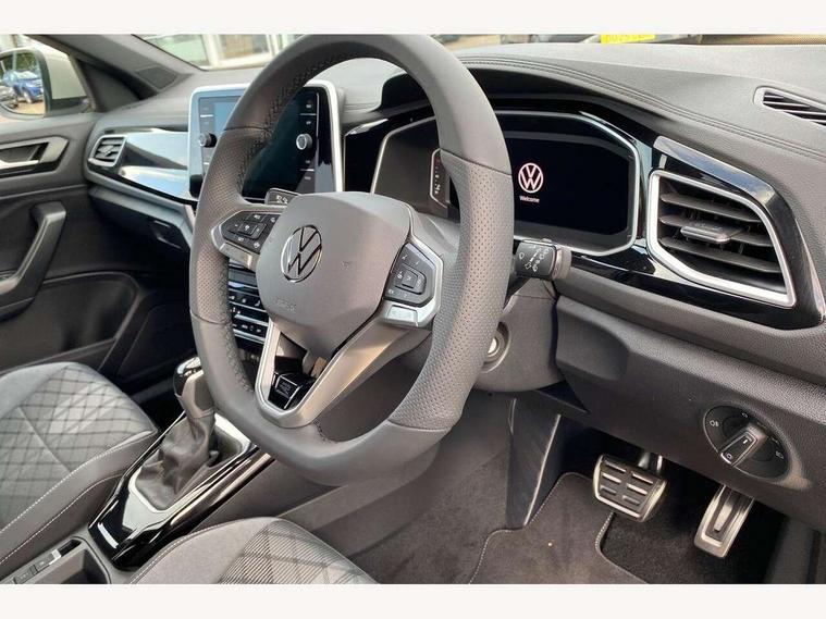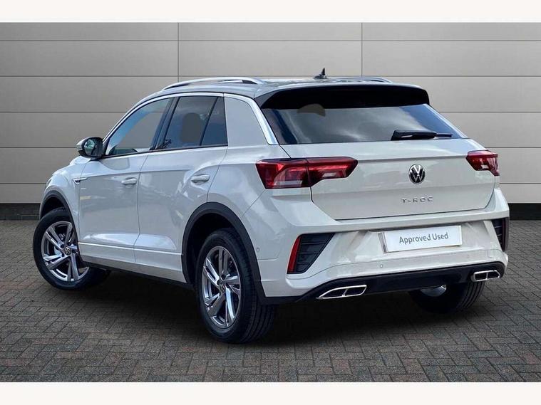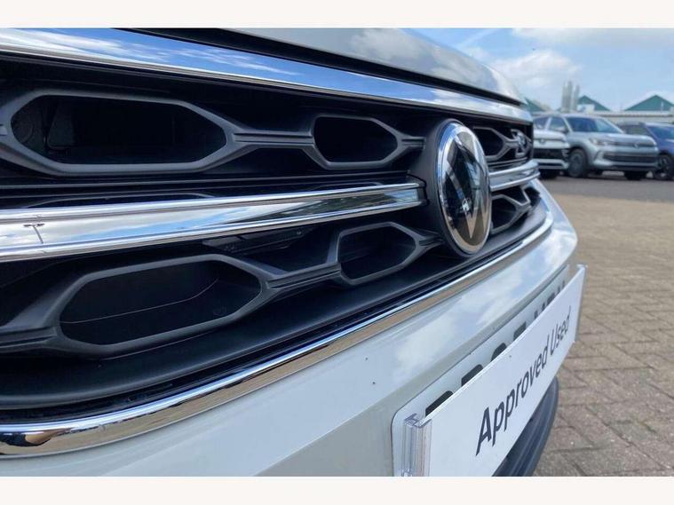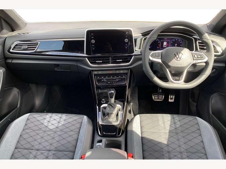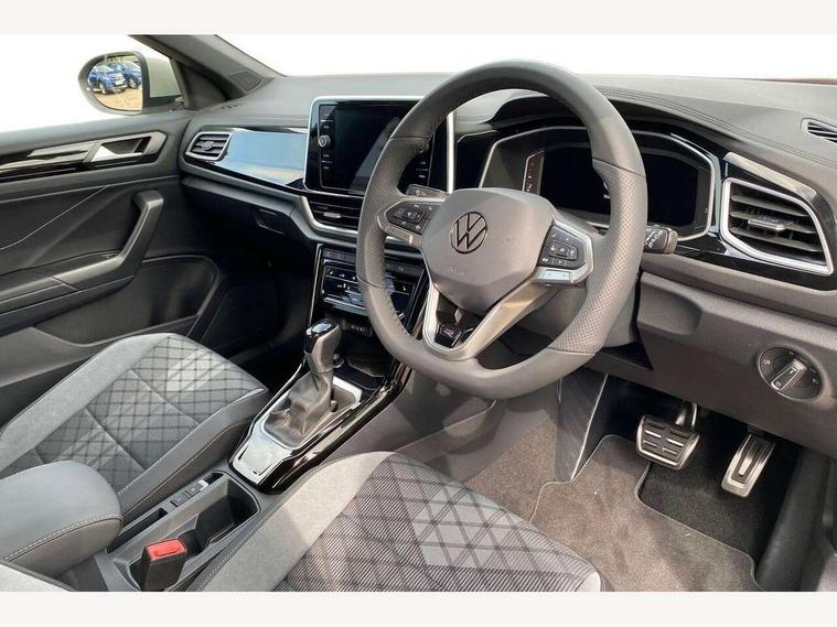 10.25" Digital cockpit pro, Advanced driver attention and drowsiness monitor, Emergency call service, Lane keeping system Lane Assist, Mobile phone interface, Modified key software - reduce switch off time for key status change to Long no motion, Online services, Park assist including front and rear parking sensors, Service interval indicator, Tailgate/trunk lid release from outside, Think blue trainer driver tips and journey analysis, Warning sound and light for front seatbelts unfastened, Wireless app connect, Battery regeneration during braking, Start/stop function with battery regeneration, DAB Digital radio, Diversity antenna for FM reception, Front and rear 6 speakers, Music playback - MP3, WMA and AAC files, Premium USB cable in choice of either Apple or Android smartphone compatibility, SD card slot, Simultaneous pairing of 2 compatible mobile devices, Title and cover art display, We Connect and We Connect Plus functionality, Auto dimming interior rear view mirror, Automatic hazard lights activation under emergency braking, Automatic headlight control with LED separate daytime running lights with coming/leaving home function, Body coloured exterior mirror housings and door handles, Electrically adjustable and heated door mirrors, Extended roof spoiler, Exterior mirrors aspherical on driver side, convex on front passenger side, External USB type C socket and charging sockets, Front windscreen wiper with intermittent wipe and 4 position delay, Heated rear window, LED 3rd brake light, LED rear combination lamps, LED rear number plate lights, Power windows with comfort operation and circuit breaker, Privacy glass for rear side windows and rear window, R-Line design body coloured bumpers, Rain sensor, Rear exhaust tailpipe, Rear fog light on one side and reversing lights on both sides, Rear side wing doors, Rear wash/wipe with intermittent wipe setting, Remote electrically foldable door mirrors, puddle lights and reverse activated passenger's door mirror, 12V power socket in centre console, 3 rear head restraints, 3 seat bench in 2nd row, 4 load lashing points in luggage compartment, Air care climatronic air conditoning system with active combination filter and 2-zone temperature control, Black roof lining, Chrome plated decorative trims, Chrome plated radiator grille inserts, air vent surrounds and light switch surrounds, Door and side trim panel with leatherette insert, Front + rear carpet mats, Front centre armrest, Front cupholders x 2, Front footwell illumination, Front reading light, Front scuff plates with R Line logo, Front seat back storage pockets, Glove compartment door with light, Instrument lighting, white adjustable panel illumination, Interior ambient lighting and surround lighting, Interior light delay, Isofix child seat preparation, Leather gearshift handle, Load-through provision with cup holder when folded down ('Unsplit rear seat bench, split folding backrest, with centre armrest), Luggage compartment lighting, Single front passenger seat, Stainless steel pedals, Storage compartment in left and right luggage area, Storage compartment in rear doors, Storage compartments in driver and front passenger doors, Sunvisors with illuminated vanity mirrors, Variable boot floor, height adjustable and removable, Driver assistance pack without proactive passenger protection - T-Roc, 3 point height adj front seatbelts + pretensioners, 3 point seatbelts in outer rear with ECE label, ABS, Child locks on rear doors, City emergency braking and pedestrian monitoring, Driver and front passenger airbag with front passenger airbag deactivation, Driver and front passenger safety-optimised head restraints, Drivers seatbelt reminder, Electronic parking brake, Electronic Stability Control (ESC) inc EDL (Electronic Differential Lock) and ASR (Traction Control), Front and rear passengers curtain airbag system including front side airbags, Hill start assist, Predictive pedestrian protection, Rear disc brakes, Two tone horn, Tyre pressure loss indicator, Volkswagen roadside assistance, Piano black decorative inserts in dashboard and front door trim panels, Trims for alloy wheels,