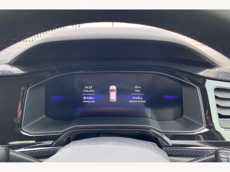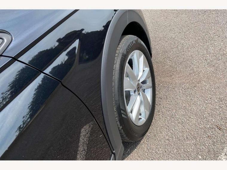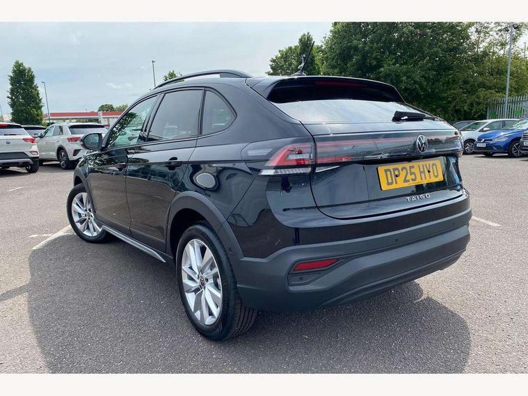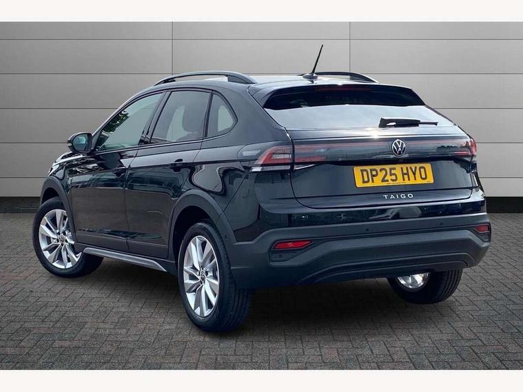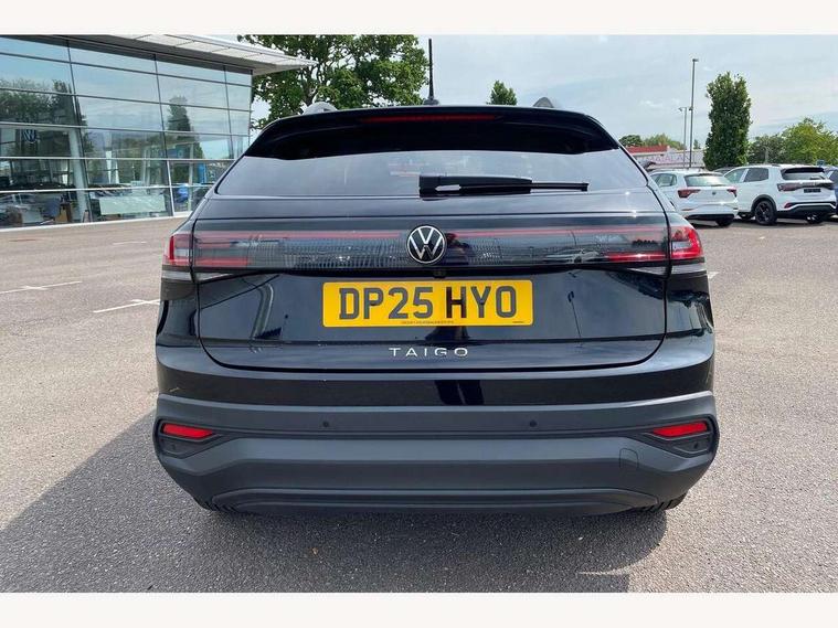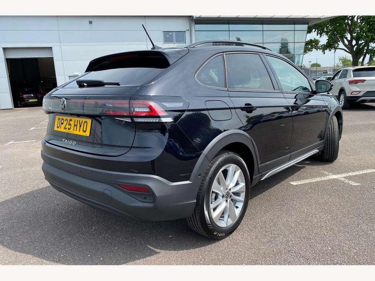 8" Digital cockpit basic display, Advanced driver attention and drowsiness monitor, Dynamic road sign display, e-Call (emergency call), Power Steering, Predictive adaptive cruise control, Rear view camera, Travel assist including emergency assist, Washer fluid level indicator, Wireless Charging including Bluetooth, Start-stop system with battery regeneration (recuperation - energy recovery during braking), Digital radio reception (DAB+), WeConnect plus, Ambient lighting with logo projection, Aspherical driver's exterior mirror, Body coloured bumpers, Body coloured exterior mirror housings and door handles, Electric windows, External USB type C socket and charging sockets, Heat insulating glass windscreen, LED rear combination lamp, LED third brake light, Left convex exterior mirror, Power folding adjustable/heated exterior mirrors and front passenger exterior mirror lowering function, Rear fog light on one side, reversing light on both sides, Rear side wing doors, Rear wash/wipe with intermittent wipe setting, Side windows in heat-insulating glass, from B-pillar and rear window dark tinted, 'Slash/ Austin' Cloth upholstery, 12V socket in centre console, 2 front reading lights, 3 rear head restraints, 3 seat bench in 2nd row, Black carpets, Ceramique headliner, Child seat anchor for child seat system i-Size, 2x top tether and child seat anchor in front on front passenger side, Door and side trim panels in titan black, Driver and front passenger seat height adjustment, Front centre armrest, Handbrake lever handle in leather, Height and reach adjustable steering wheel, Leather trimmed gear knob, Leather wrapped multifunction steering wheel, Luggage compartment floor, Luggage compartment light, Lumbar support for driver's and front passengers seat, Seat covers in titanium black, Single front passenger seat, Split folding backrest with centre armrest and unsplit rear seat bench, Storage compartment under front seats, Sun visors with illuminated vanity mirrors, Titanium black instrument panel, Chrome Package - Taigo, Drivers assistance package - Taigo, Light and sight pack - Taigo, 2 x 3-point seatbelts/outer rear seats with ECE label, 3-point seat belts in front with pretensioner and height adjustment, 3-point seatbelt for centre rear seat, Driver and front passenger airbag with front passenger airbag deactivation, Driver and front passenger safety-optimised head restraints, Electronic stability control, Extended and predictive pedestrian/ cyclist protection, Front and rear disc brakes, Front curtain and side airbags with center airbag, Hill start assist, Manual rear child locks, Single tone horn, Tyre pressure loss indicator, Anti-theft alarm system with interior monitoring, backup horn, and towing protection, Keyless locking and starting system keyless access with safelock, Black (slush) Dashboard, Lava stone black gloss/matt decorative inserts in dash and front door panels, Low rolling resistance tyres,