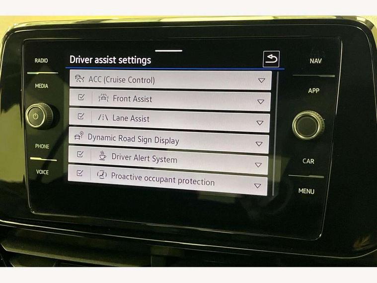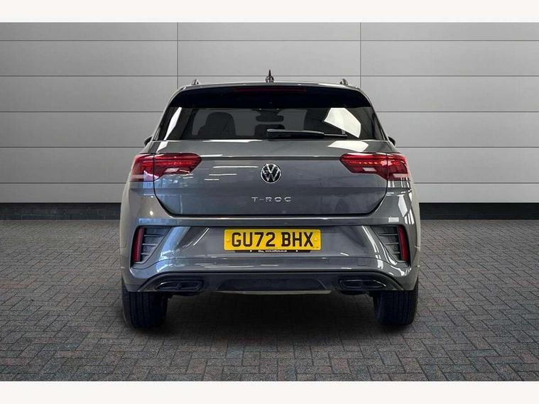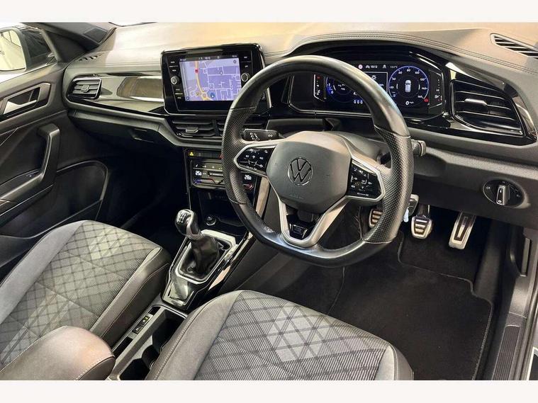 10.25" Digital cockpit pro, Bluetooth mobile phone interface, Driver alert system with fatigue detection, Driver tips and journey analysis, Emergency call service, Lane keeping system Lane Assist, Modified key software - reduce switch off time for key status change to Long no motion, Online services, Park assist including front and rear parking sensors, Service interval indicator, Tailgate/trunk lid release from outside, Think blue trainer driver tips and journey analysis, Warning sound and light for front seatbelts unfastened, Wireless app connect, Battery regeneration during braking, Start/stop function with battery regeneration, Diversity antenna for FM reception, Front and rear 6 speakers, Music playback - MP3, WMA and AAC files, Premium USB cable in choice of either Apple or Android smartphone compatibility, SD card slot, Simultaneous pairing of 2 compatible mobile devices, Title and cover art display, We Connect and We Connect Plus functionality, 3rd brake light, Auto dimming interior rear view mirror, Automatic hazard lights activation under emergency braking, Automatic headlight control with LED separate daytime running lights with coming/leaving home function, Extended roof spoiler, Exterior mirrors aspherical on driver side, convex on front passenger side, External USB type C socket and charging sockets, Front windscreen wiper with intermittent wipe and 4 position delay, Heated rear window, LED Plus headlamps, LED rear combination lamps, LED rear number plate lights, LED tail lamp rear comination lamps, Power windows with comfort operation and circuit breaker, R-Line design body coloured bumpers, Rain sensor, Rear exhaust tailpipe, Rear fog light on one side and reversing lights on both sides, Rear side wing doors, Rear wash/wipe with intermittent wipe setting, Remote electrically foldable door mirrors, puddle lights and reverse activated passenger's door mirror, 12V power socket in centre console, 3 rear head restraints, 3 seat bench in 2nd row, 4 load lashing points in luggage compartment, Air care climatronic air conditoning system with active combination filter and 2-zone temperature control, Black roof lining, Chrome plated radiator grille inserts, air vent surrounds and light switch surrounds, Door and side trim panel with leatherette insert, Drawer under drivers seat, Front + rear carpet mats, Front centre armrest, Front cupholders x 2, Front footwell illumination, Front reading light, Front scuff plates with R logo, Instrument lighting, white adjustable panel illumination, Interior ambient lighting and surround lighting, Interior light delay, Isofix child seat preparation, Leather gearshift handle, Load-through provision with cup holder when folded down ('Unsplit rear seat bench, split folding backrest, with centre armrest), Luggage compartment lighting, Single front passenger seat, Stainless steel pedals, Storage compartment in left and right luggage area, Storage compartment in rear doors, Storage compartments in driver and front passenger doors, Sunvisors with illuminated vanity mirrors, Variable boot floor, height adjustable and removable, Driver assistance pack without proactive passenger protection - T-Roc, 3 point height adj front seatbelts + pretensioners, 3 point seatbelts in outer rear with ECE label, ABS, Child locks on rear doors, Driver and front passenger airbag with front passenger airbag deactivation, Driver and front passenger safety-optimised head restraints, Drivers seatbelt reminder, Electronic parking brake, Electronic Stability Control (ESC) inc EDL (Electronic Differential Lock) and ASR (Traction Control), Front and rear passengers curtain airbag system including front side airbags, Front assist with city emergency braking and pedestrian monitoring, Front seat side impact airbags, Hill start assist, Predictive pedestrian protection, Rear disc brakes, Single tone horn, Tyre pressure loss indicator, Volkswagen roadside assistance, Alarm with interior protection, Anti-theft alarm system with interior monitoring, backup horn, and towing protection, Remote central locking with SAFELOCK, radio remote control with 2 remote control folding keys, Trims for alloy wheels,