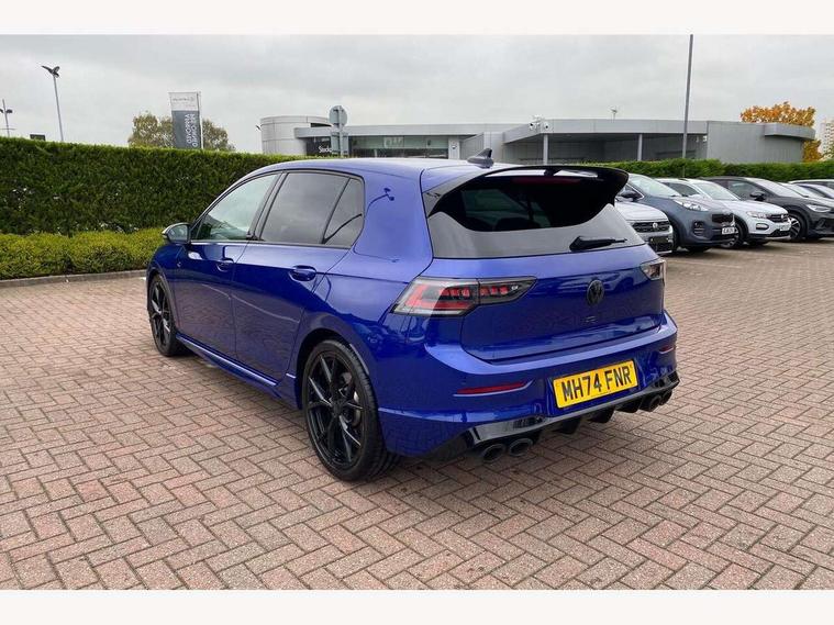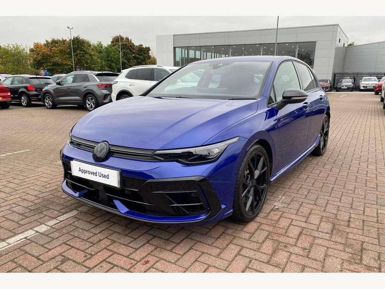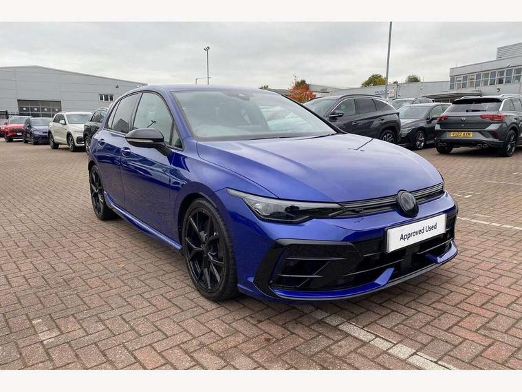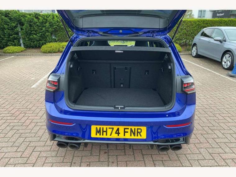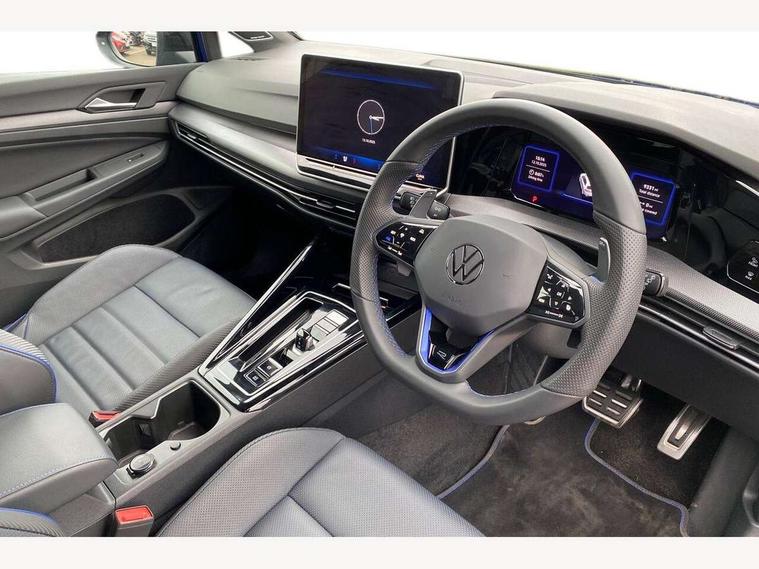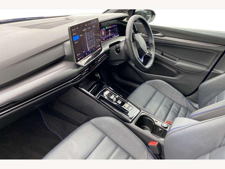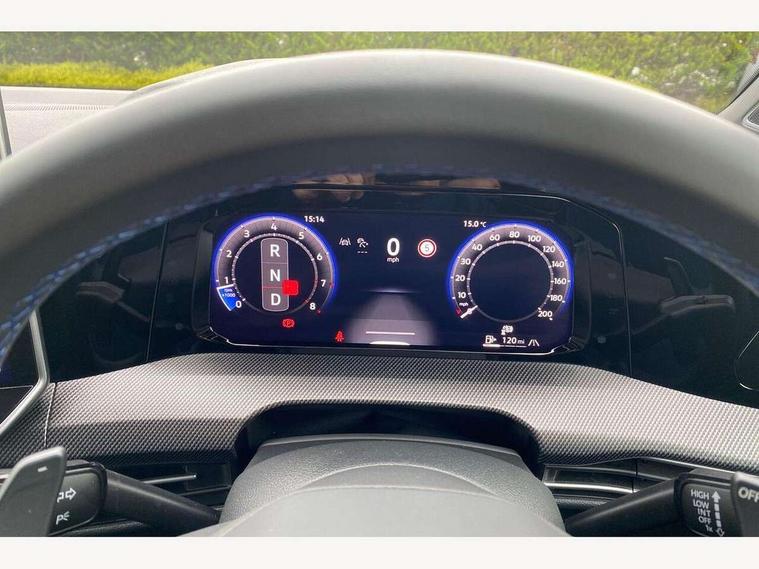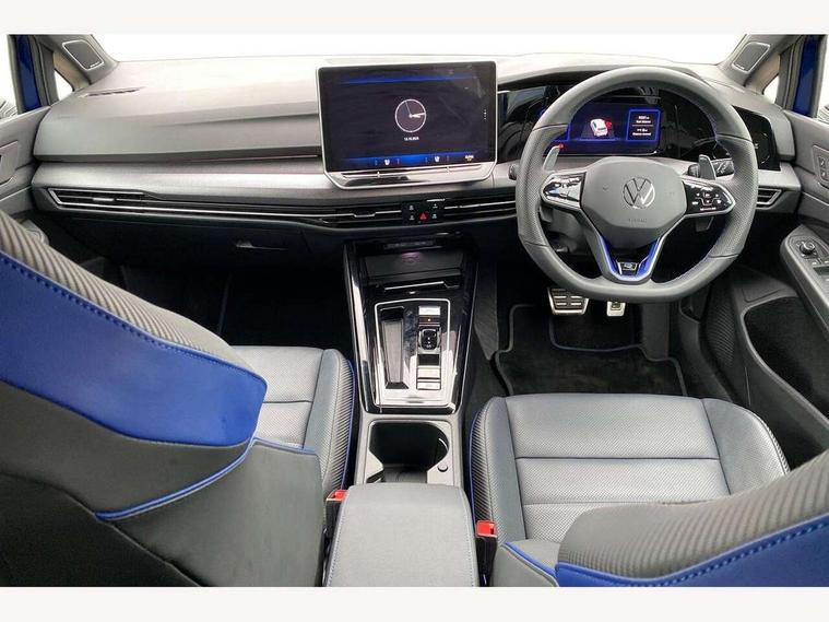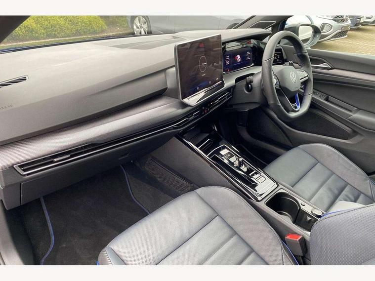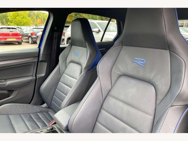 Activated carbon canister, Adaptive cruise control (ACC), Advanced driver attention and drowsiness monitor, Dynamic road sign display, E-Sim card for online connectivity, eCall emergency call system, Electronic maximum speed limit increased to 270 km/h, includes driving Modes 'drift' and 'special', larger roof spolier and GPS laptimer + G-Meter, Multi-color Digital cockpit pro, selection of different info profile possible, Multifunction front facing camera for distance control, Navigation system, Oncoming vehicle braking when turning including swerve support, Preparation for light assist system, Progressive steering, Side assist blind spot lane change system, rear traffic alert and exit warning system, Speed limiter, Speedo, rev counter, electronic odometer, trip, service interval display, exterior temperature and fuel gauge, Traffic jam assist, Voice enhancer and voice control, Warning signal and warning light for front and rear seatbelts not fastened, We connect plus preparation, We connect preparation, Wireless app connect, All wheel drive - 4Motion, Petrol Particulate Filter, Sports suspension, Start-stop system with battery regeneration (recuperation - energy recovery during braking), XDS electronic differential lock for improved traction and handling, 2 USB C ports in front, 2 USB charging sockets on the centre console in the rear charging capacity upto 45W, Comfort telephony + wireless charging, without wireless aerial connection, Digital radio reception (DAB), Diversity antenna for FM reception, Gaming platform via car app, Infotainment system with 12.9" display, Mobile phone interface with inductive charging feature, 3rd brake light, Auto dimming rear view mirror, Auto headlights, Automatic headlamp activation with Coming home and Leaving home feature, Black badge on B-pillar, Black mirror caps, Black strips on radiator grille and headlights, Body colour door handles, Darkened headlights, Darkened R Logos and VW logos in front, rear and on fender, Exhaust system with black tailpipe, Exterior ambient lighting with illuminated lighting animation and wake up/goodbye scenario, Exterior mirrors convex on the left and aspherical on the right, Front and rear electric windows, Front fog lamps and cornering light, Heat insulating windshield made of laminated glass, LED daytime running lights, LED matrix headlights with ambient light V2, advanced high beam, dynamic range contol with cornering, LED rear lamp with indicator, poor weather, R name plate, Rain sensor, Rear fog light on one side and reversing lights on both sides, Rear side wing doors, Rear tinted glass 65% light absorbing from B pillar backwards, Rear windscreen washer and wiper with interval delay, Remote electrically foldable door mirrors, puddle lights and reverse activated passenger's door mirror, Welcome light with surround lighting, 12V socket in front centre console, 12V socket in luggage compartment, 3 rear head restraints, 3 seat bench in 2nd row, 30 colour ambient lighting, illuminated center console storage compartment in front, Air care climatronic 3 Zone automatic climate control with rear air conditioning control panel, Aluminium gearshift handle, Brushed stainless steel pedals, Carpet mats, front and rear, Front centre armrest, Integrated front head restraints, ISOFIX anchors for child seats on outer rear bench seats and on front passanger seat compatible for i-Size, Luggage compartment lighting, Rear cupholder and loadthough, Single front passenger seat, Soul black instrument panel, Split folding backrest with centre armrest and unsplit rear seat bench, Storm grey roof lining, Sun visors with illuminated vanity mirrors, Driver assistance pack - Golf DSG Estate/Hatchback, R styling pack - Golf, Technology park and comfort pro package - Golf Hatchback, 3 point height adj front seatbelts + pretensioners, 3 rear three point seatbelts, ABS, Autonomous emergency braking front assist with pedestrian and cyclist monitoring, Child locks on rear doors, Disc brakes in rear incl. brake calipers in black with darkened R-logo, Driver and front passenger airbag with front passenger airbag deactivation, Electronic parking brake with auto hold, ESC (Electronic Stability Control), Extended pedestrian protection measures, Hill start assist, Two tone horn, Tyre pressure loss indicator, Volkswagen roadside assistance, Anti theft wheel bolts, Preparation for alcohol interlock, Wheel hub cover with darkened R-logo,