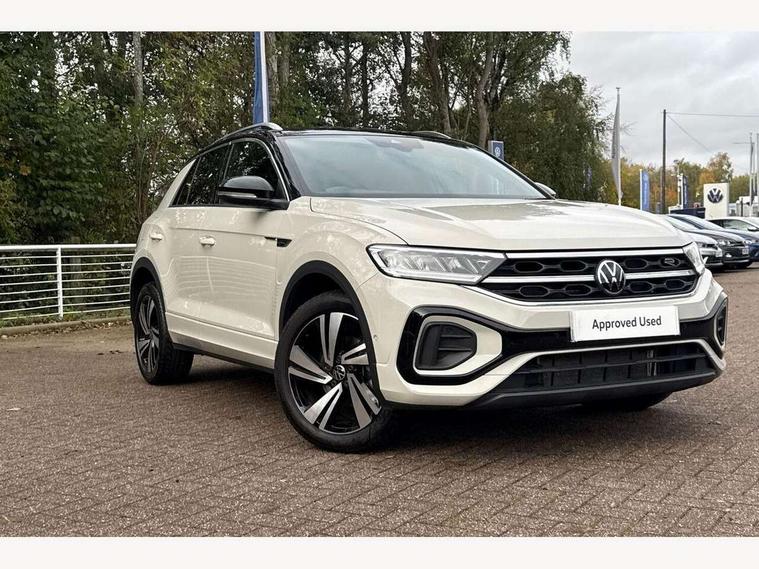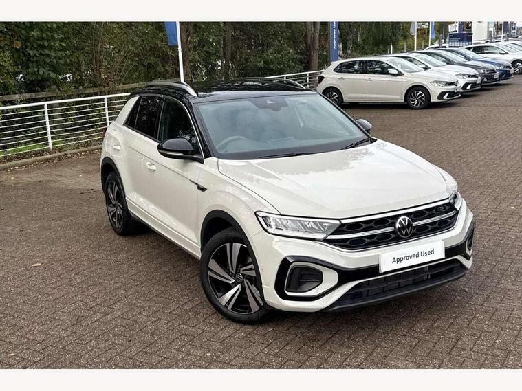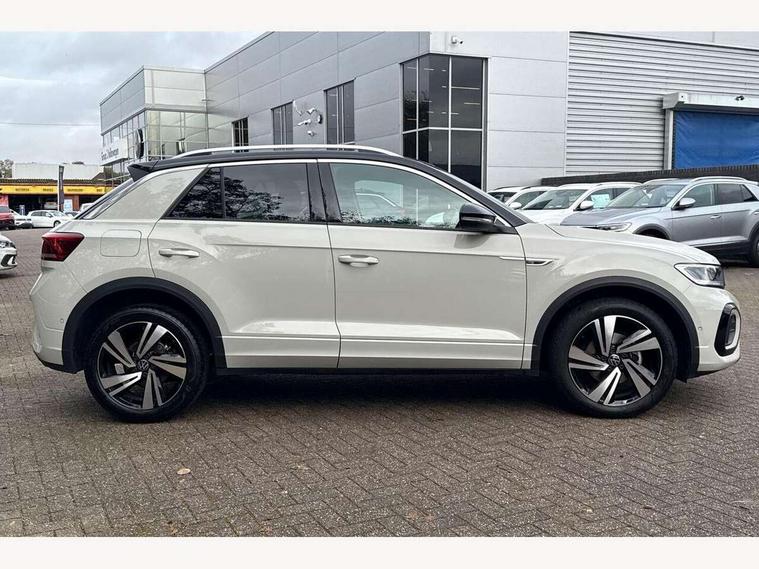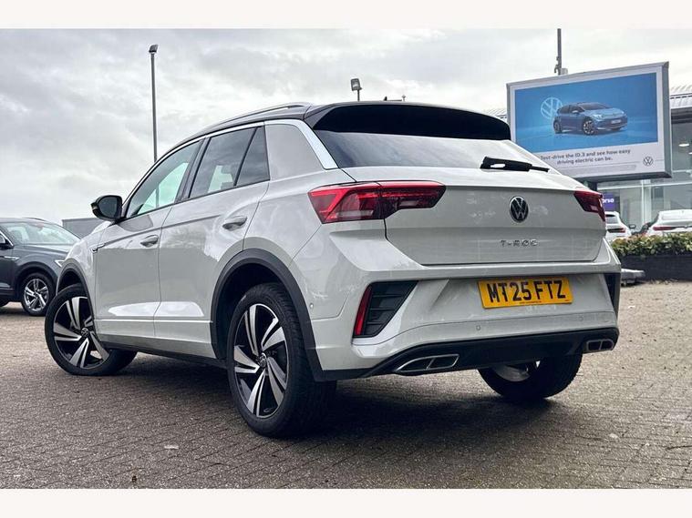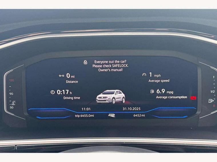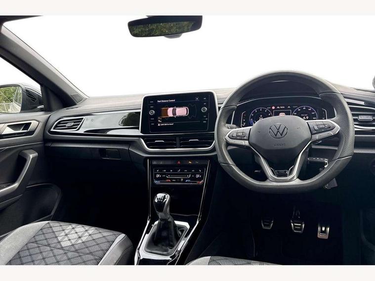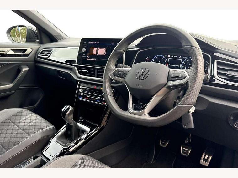 10.25" Digital cockpit pro, Advanced driver attention and drowsiness monitor, Emergency call service, Lane keeping system Lane Assist, Mobile phone interface, Modified key software - reduce switch off time for key status change to Long no motion, Online services, Park assist including front and rear parking sensors, Service interval indicator, Tailgate/trunk lid release from outside, Think blue trainer driver tips and journey analysis, Warning sound and light for front seatbelts unfastened, Wireless app connect, Battery regeneration during braking, Start/stop function with battery regeneration, DAB Digital radio, Diversity antenna for FM reception, Front and rear 6 speakers, Music playback - MP3, WMA and AAC files, Premium USB cable in choice of either Apple or Android smartphone compatibility, SD card slot, Simultaneous pairing of 2 compatible mobile devices, Title and cover art display, We Connect and We Connect Plus functionality, Auto dimming interior rear view mirror, Automatic hazard lights activation under emergency braking, Automatic headlight control with LED separate daytime running lights with coming/leaving home function, Body coloured exterior mirror housings and door handles, Electrically adjustable and heated door mirrors, Extended roof spoiler, Exterior mirrors aspherical on driver side, convex on front passenger side, External USB type C socket and charging sockets, Front windscreen wiper with intermittent wipe and 4 position delay, Heated rear window, LED 3rd brake light, LED rear combination lamps, LED rear number plate lights, Power windows with comfort operation and circuit breaker, Privacy glass for rear side windows and rear window, R-Line design body coloured bumpers, Rain sensor, Rear exhaust tailpipe, Rear fog light on one side and reversing lights on both sides, Rear side wing doors, Rear wash/wipe with intermittent wipe setting, Remote electrically foldable door mirrors, puddle lights and reverse activated passenger's door mirror, 12V power socket in centre console, 3 rear head restraints, 3 seat bench in 2nd row, 4 load lashing points in luggage compartment, Air care climatronic air conditoning system with active combination filter and 2-zone temperature control, Black roof lining, Chrome plated decorative trims, Chrome plated radiator grille inserts, air vent surrounds and light switch surrounds, Door and side trim panel with leatherette insert, Front + rear carpet mats, Front centre armrest, Front cupholders x 2, Front footwell illumination, Front reading light, Front scuff plates with R Line logo, Front seat back storage pockets, Glove compartment door with light, Instrument lighting, white adjustable panel illumination, Interior ambient lighting and surround lighting, Interior light delay, Isofix child seat preparation, Leather gearshift handle, Load-through provision with cup holder when folded down ('Unsplit rear seat bench, split folding backrest, with centre armrest), Luggage compartment lighting, Single front passenger seat, Stainless steel pedals, Storage compartment in left and right luggage area, Storage compartment in rear doors, Storage compartments in driver and front passenger doors, Sunvisors with illuminated vanity mirrors, Variable boot floor, height adjustable and removable, Driver assistance pack without proactive passenger protection - T-Roc, 3 point height adj front seatbelts + pretensioners, 3 point seatbelts in outer rear with ECE label, ABS, Child locks on rear doors, City emergency braking and pedestrian monitoring, Driver and front passenger airbag with front passenger airbag deactivation, Driver and front passenger safety-optimised head restraints, Drivers seatbelt reminder, Electronic parking brake, Electronic Stability Control (ESC) inc EDL (Electronic Differential Lock) and ASR (Traction Control), Front and rear passengers curtain airbag system including front side airbags, Hill start assist, Predictive pedestrian protection, Rear disc brakes, Two tone horn, Tyre pressure loss indicator, Volkswagen roadside assistance, Piano black decorative inserts in dashboard and front door trim panels, Trims for alloy wheels,