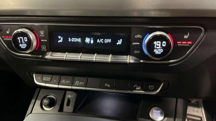 Contrast stitching, Non Smokers pack, Keyless Go access/ignition system, Locking wheel bolts, Remote central locking, Thatcham category 1 alarm + immobiliser, 2 USB ports, Audi sound system, Auxiliary input socket, CD player, DAB Digital radio, MMI radio plus with 7" colour MMI screen and MMI controller, 3 point seatbelts on all seats, ABS, Curtain airbags, Driver and passenger airbags, Driver and passenger side airbags, Electromechanical parking brake, ESC with ASR, ESP, First aid kit, Front passenger airbag deactivation, Hill descent control, Seat belt force limiter, Seatbelt warning lamp, Traction control, Tyre pressure monitor, Warning triangle, Acoustic windscreen, Aluminium roof rails, Aluminium sill plates, Auto dimming rear view mirror, Black high gloss front air inlet in matt aluminium effect, Body colour bumpers, Body colour door mirrors, Body colour rear diffuser insert, Chrome exhaust tailpipe, Electric headlight adjustment, Electrically adjustable and heated door mirrors, Front and rear electric windows, Front fog lights, Headlight range control, Headlight washers, Honeycomb side air inlet in titan black, Light and rain sensor for auto activation of lights and windscreen wipers, Loading sill protector in stainless steel, Privacy glass with front acoustic glazing, Rear diffuser strip in matt aluminium silver, Rear spoiler, Rear wiper, S Line side skirts, Selenite silver underbody guard, Twilight grey matt radiator grille with matt aluminium horizontal chrome struts, 3 rear headrests, 3 zone climate control, 4 way electric lumbar support for driver and front passenger, 40:20:40 split folding rear seat, Black cloth headlining, Front centre armrest with 12v socket, Front sports seats, Front/rear floor mats, Height adjustable driver's seat, Height adjustable front head restraints, Illuminated door sills, Isofix front passenger and rear seat preparation, Jack and tool kit, Load compartment cover, Luggage compartment carpet, Matt selenite silver door inserts, Perforated leather gearknob, Reach + rake adjustable steering column, Removable luggage compartment floor, Removable net partition, Roller blind loadspace cover, Stainless steel pedals, Sunvisors with vanity mirrors, Audi connect, Audi drive select, Audi smartphone interface, Driver information centre with colour display in instrument panel, Electric power steering, Power tailgate, Remote electric boot opening/closing, SD card based MMI navigation, Service interval indicator, Voice control system,