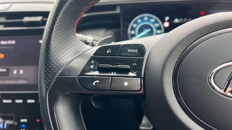 10.25" super vision instrument cluster, 10.25" touchscreen satellite navigation with mapcare and live services, Apple car play/Android Auto, Bluetooth system, Digital clock, Drive mode selector, Driver attention warning, E-call, Emergency stop signalling system, Front and rear parking sensors, Intelligent speed limit assist, Lane follow assist, Lane keep assist, PAS, Rev counter, Reversing camera, Roll over sensor, Tailgate open warning light, Trip computer, Trip odometer, Voice recognition, Water temperature gauge, Windscreen washer fluid sensor and warning indicator, Wireless phone charging pad, 2 front and 2 rear speakers with 2 tweeters, DAB Digital radio, Steering wheel mounted audio/phone controls, USB connections in front and rear, Adjustable intermittent front windscreen wipers with aero wiper blade, Auto dimming rear view mirror, Automatic defog system, Automatic headlights with dusk sensor, Automatic windscreen wipers with rain sensor, Black headlamp bezels, Body colour bumpers, Body colour door mirrors with integrated indicators, Body colour exterior door handles, Body coloured wheel arches, Dark chrome effect radiator grille, Electrically adjustable, heated and power folding door mirrors, Follow me home headlights, Front and rear electric windows with anti-trap mechanism and one touch control, Front fog lights, Gloss black door frame moulding, High beam assist, LED daytime running lights, LED rear lights, MFR - LED headlight with static bending light, N Line body coloured side mouldings, N Line design front grille, N Line Exclusive front and rear bumpers, N Line rear spoiler with fins, Positioning Lights - LED, Privacy glass - Rear windows and tailgate, Rear wash/wipe with intermittent wipe setting, Roof rails, Silver front and rear skid plate, Sports twin tip exhaust and diffuser, Tinted glass with windscreen shade band, Trailer stability assist, 12V power outlets in front console and luggage compartment, 40/20/40 split folding rear seat, Adjustable head restraints (Up and down), Alloy pedals, Ambient lighting, Black headliner, Cupholders in centre and rear console, Cupholders in rear armrest, Door courtesy lights, Driver and passenger sunvisors with illuminated LED vanity mirrors, Driver's seat electric lumbar support, Driver's seat manual height adjust, Dual zone climate control, Front and rear door pockets, Front armrest with storage box, Front door pocket bottle holders, Front passenger seat lumbar adjustment, Heated front seats, Height/reach adjustable steering column, Illuminated/air conditioned glove compartment, ISOFIX child seat anchorage points attached on outer rear seats, Leather wrapped steering wheel, Leather/suede upholstery, Luggage area underfloor compartment, Luggage compartment lighting, Luggage cover, Luggage hooks, Manual height adjustable front passenger seat, Map and reading lights, N Line logo on steering wheel, Retractable load cover, Sunglasses holder, 3x3 point rear seatbelts, Active bonnet, Airbag - Front, front side, curtain and centre front airbags, Anti-lock brake system (ABS), Autonomous emergency braking, Brake assist function, Childproof rear door locks, Downhill brake control, Electric parking brake with auto hold function, Electronic stability control, Front and rear seatbelt reminder, Front passenger airbag deactivation switch, Front seatbelt pretensioners, Hill start assist control (HAC), Multi-Collision braking, Seatbelt height adjustment for front seats, Traction control, Tyre pressure monitoring system with individual tyre pressure display - TPMS, Vehicle stability management, Alarm, Deadlocks, Immobiliser, Locking wheel nuts, Remote control central locking, Smart key with keyless entry and engine start/stop button, Speed sensitive auto door locking, 19" Alloy wheels, Tyre repair kit,
