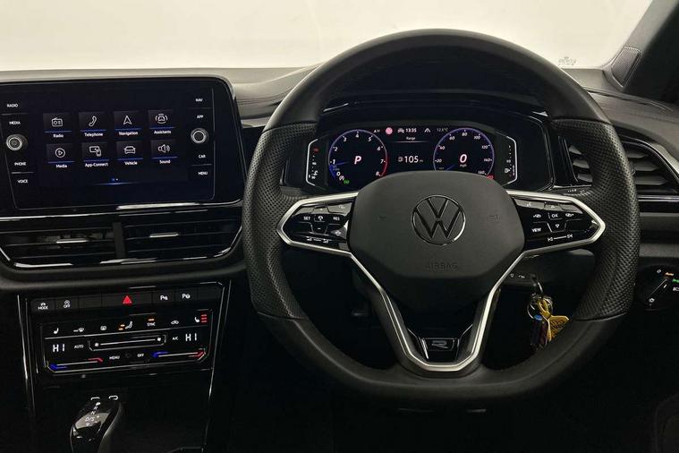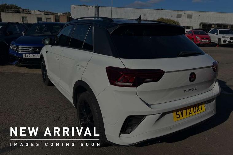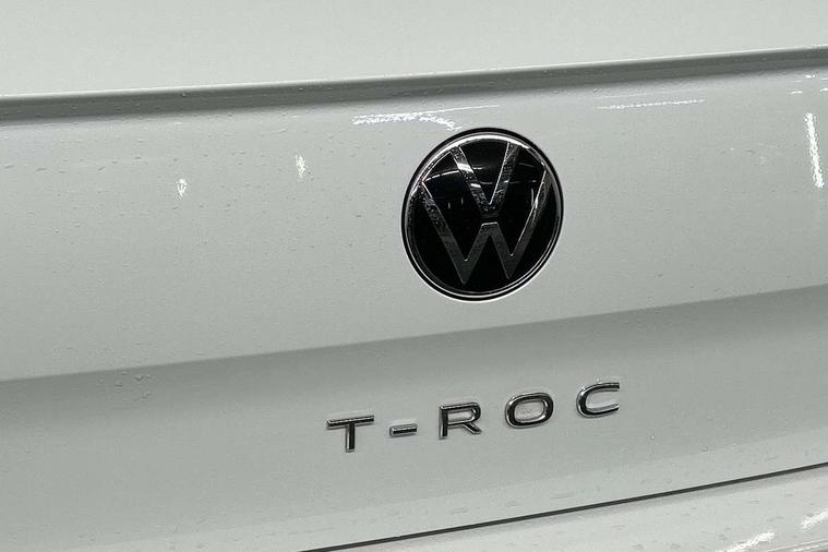 10.25" Digital cockpit pro, Bluetooth mobile phone interface, Driver alert system with fatigue detection, Driver tips and journey analysis, Emergency call service, Lane keeping system Lane Assist, Modified key software - reduce switch off time for key status change to Long no motion, Online services, Park assist including front and rear parking sensors, Service interval indicator, Tailgate/trunk lid release from outside, Think blue trainer driver tips and journey analysis, Warning sound and light for front seatbelts unfastened, Wireless app connect, Battery regeneration during braking, Start/stop function with battery regeneration, Diversity antenna for FM reception, Front and rear 6 speakers, Music playback - MP3, WMA and AAC files, Premium USB cable in choice of either Apple or Android smartphone compatibility, SD card slot, Simultaneous pairing of 2 compatible mobile devices, Title and cover art display, We Connect and We Connect Plus functionality, 3rd brake light, Auto dimming interior rear view mirror, Automatic hazard lights activation under emergency braking, Automatic headlight control with LED separate daytime running lights with coming/leaving home function, Extended roof spoiler, Exterior mirrors aspherical on driver side, convex on front passenger side, External USB type C socket and charging sockets, Front windscreen wiper with intermittent wipe and 4 position delay, Heated rear window, LED Plus headlamps, LED rear combination lamps, LED rear number plate lights, LED tail lamp rear comination lamps, Power windows with comfort operation and circuit breaker, R-Line design body coloured bumpers, Rain sensor, Rear exhaust tailpipe, Rear fog light on one side and reversing lights on both sides, Rear side wing doors, Rear wash/wipe with intermittent wipe setting, Remote electrically foldable door mirrors, puddle lights and reverse activated passenger's door mirror, 12V power socket in centre console, 3 rear head restraints, 3 seat bench in 2nd row, 4 load lashing points in luggage compartment, Air care climatronic air conditoning system with active combination filter and 2-zone temperature control, Black roof lining, Chrome plated radiator grille inserts, air vent surrounds and light switch surrounds, Door and side trim panel with leatherette insert, Drawer under drivers seat, Front + rear carpet mats, Front centre armrest, Front cupholders x 2, Front footwell illumination, Front reading light, Front scuff plates with R logo, Instrument lighting, white adjustable panel illumination, Interior ambient lighting and surround lighting, Interior light delay, Isofix child seat preparation, Leather gearshift handle, Load-through provision with cup holder when folded down ('Unsplit rear seat bench, split folding backrest, with centre armrest), Luggage compartment lighting, Single front passenger seat, Stainless steel pedals, Storage compartment in left and right luggage area, Storage compartment in rear doors, Storage compartments in driver and front passenger doors, Sunvisors with illuminated vanity mirrors, Variable boot floor, height adjustable and removable, Driver assistance pack without proactive passenger protection - T-Roc, 3 point height adj front seatbelts + pretensioners, 3 point seatbelts in outer rear with ECE label, ABS, Child locks on rear doors, Driver and front passenger airbag with front passenger airbag deactivation, Driver and front passenger safety-optimised head restraints, Drivers seatbelt reminder, Electronic parking brake, Electronic Stability Control (ESC) inc EDL (Electronic Differential Lock) and ASR (Traction Control), Front and rear passengers curtain airbag system including front side airbags, Front assist with city emergency braking and pedestrian monitoring, Front seat side impact airbags, Hill start assist, Predictive pedestrian protection, Rear disc brakes, Single tone horn, Tyre pressure loss indicator, Volkswagen roadside assistance, Alarm with interior protection, Anti-theft alarm system with interior monitoring, backup horn, and towing protection, Remote central locking with SAFELOCK, radio remote control with 2 remote control folding keys, Trims for alloy wheels,