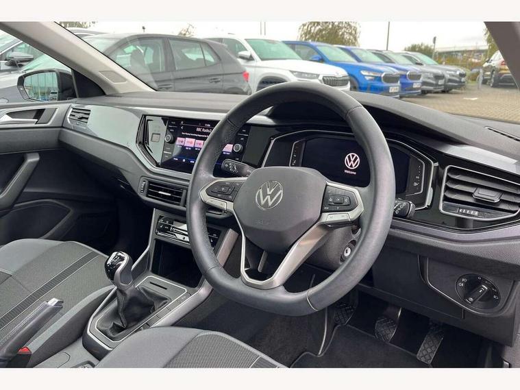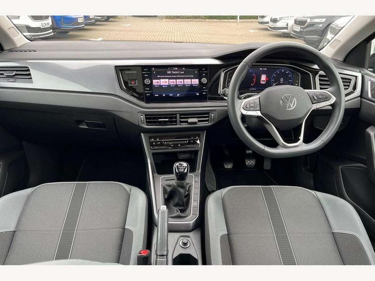 Adaptive cruise control without follow-to-stop and speed limiter, Bluetooth mobile phone interface, Digital Cockpit Pro with 10.25" Display, Driver alert system, Dynamic road sign display, Emergency call service, Power assisted speed sensitive steering, Preparation for We connect and We connect plus, Speedo and rev counter, electronic odometer, trip, service interval display and fuel gauge, Standard rear axle, Travel Assist - Lane keeping system and traffic jam assist, Travel assist including emergency assist, Trip computer, Warning signal and warning light for front and rear seatbelts not fastened, Washer fluid level indicator, Wireless app connect, Front wheel drive, Rear shock absorpion, Start-stop system with battery regeneration (recuperation - energy recovery during braking), DAB Digital radio, Diversity antenna for FM reception, Front and rear 6 speakers, Automatic dimming interior rear view mirror, Automatic headlights, Body colour door handles, Body coloured bumpers and radiator grille with chrome trims, Electric front windows, Heat insulating darkened glass in side and rear windows, Heat insulating glass windscreen, LED separate daytime running lights with coming/leaving home function, Power folding adjustable/heated exterior mirrors and front passenger exterior mirror lowering function, Rain sensor, Rear electric windows, Rear fog light, Rear side wing doors, Rear windscreen washer and wiper with interval delay, Third brake light, 12V power socket in centre console, 2 USB-C ports in the front, 2 USB-C charging sockets on the center console in the rear, 3 rear head restraints, 60/40 split folding rear seat and rear seat bench not split, Air care climatronic air conditoning system with active combination filter and 2-zone temperature control, Ambient lighting, Chrome plated radiator grille inserts, air vent surrounds and light switch surrounds, Door and side trim panel, Driver and front passenger seat height adjustment, Driver/passenger sunvisors with illuminated vanity mirrors, Front + rear carpet mats in recycled material, Front centre armrest, Front footwell illumination, Front seat backrest storage pockets, Front sports comfort seats, Handbrake lever handle in leather, Headliner in recycled material, Isofix child seat preparation easy-fit (for two outer rear seats, and front passenger seat) compatible with I-size, Leather trimmed gear knob, LED interior light with switch off delay and dimmer, 2 reading lights front and rear, Luggage compartment cover, Luggage compartment floor, Luggage compartment lighting, Lumbar adjustment for front seats, Multifunction steering wheel, Single front passenger seat, Standard pedal cluster, IQ LED matrix headlights pack - Polo, Light and vision pack - Polo, 3 point height adj front seatbelts + pretensioners, 3x3 point rear seatbelts, ABS, Driver and front passenger airbag with front passenger airbag deactivation, Drivers and front passengers safety optimised head restraints, ESC (Electronic stability control) + EDL (Electronic Differntial lock) and ASR (Traction control), Extended and predictive pedestrian/ cyclist protection, Front curtain and side airbags with center airbag, Front disc brakes, Hill hold control, Manual child lock in rear doors, Rear drum brakes, Single tone horn, Tyre pressure loss indicator, Alarm with interior protection, Anti-theft alarm system with interior monitoring, backup horn, and towing protection, Anti-theft wheel bolts, Electronic engine immobiliser, Chrome applications on rotary light, mirror adjustment, window regulator switches, outlet with frame in black, Low rolling resistance tyres,
