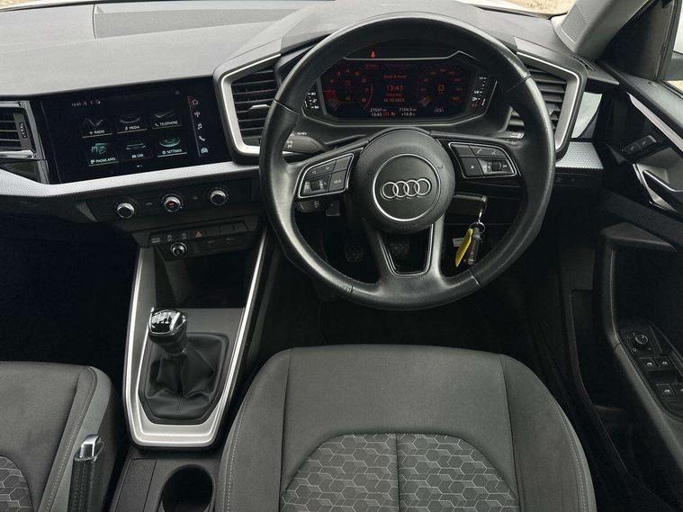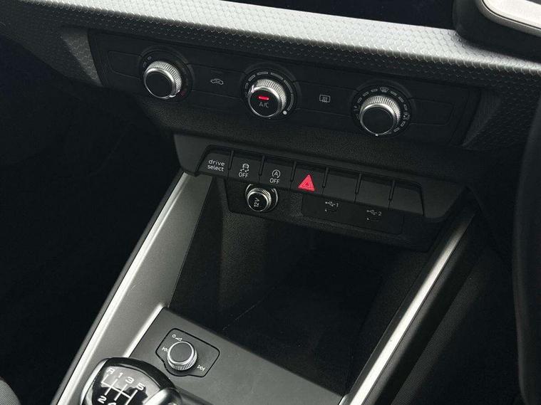 10.25" Digital instrument cluster display classis style instrument dials + speed, odometer, time, outside temperature, telephone menu + fuel level warning, Audi connect safety emergency and service including E-call, Audi drive select - power steering assistance + engine, Audi smartphone interface with connect compatible smartphone via USB directly MMI display + Nav, music, third party apps controlled via MMI controller, Automatic start/stop system, Bluetooth interface, Cruise control, Driver's information system, Electromechanical power steering, Emergency services call system, Lane departure warning system, Service interval indicator, Speed limiter, Voice control system, Washer fluid level indicator, Dynamic suspension, 1 x SDXC card reader, 2 x USB type C connection points, DAB Digital radio, MMI radio plus with 8.8" colour MMI display screen and MMI touch, Auto dimming rear view mirror, Body coloured bumpers, Body coloured door mirrors, Electric front and rear windows, Electrically adjustable, heated, folding door mirrors with integrated LED side indicator, Front side air inlets in grained matt black and C frame in titanium black, Heat insulating glass windscreen and side windows, Heated rear windscreen, High level LED brake light, LED headlights with LED rear lights + dynamic rear indicators + headlight adjustment and high beam, turning light + LED daytime running lights, Radiator grille and rear diffuser in matt titanium black, Radiator protective grille frame in matt aluminium silver, Rain and light sensors, Rear fog lights, Rear side wing doors, Rear wing door, Rear wiper, Side front spoiler lips in grained matt black, 12V socket in centre console with two cup holders, 3 rear seats with headrests, 3 seat bench in 2nd row, 40:60 Split folding rear seat or folded fully, Door sill trims with aluminium inlay, Driver and passenger seat with manual height adjust with forward and backwards adjustment, Front head restraints, Front passenger seat, Front/rear floor mats, Height and reach adjustable steering wheel, ISOFIX child seat mounting for front passenger and outer rear seats including top tether attachment point of outer rear seats, Leather gear knob with aluminium trim, Leatherette handbrake grip, Luggage compartment light with front and rear reading lights, Manually adjustable lumbar support in front seats, Novum cloth upholstery with front sport seats, Titanium grey cloth headlining, Luggage compartment pack - A1, 3x3 point rear seatbelts, Audi pre-sense front with pedestrain and cyclist recognition, Brake assist function, Driver and front passenger airbag with front side and head airbags, Electronic Stability Control including ABS, EBD, ASR and EDL, Front passenger airbag deactivation switch, Hill hold assist, Manual rear child locks, Seatbelt height adjustment for front seats, Seatbelt monitoring, Tyre pressure warning light, Warning triangle and first aid kit, Anti theft alarm, Anti theft wheel bolts and loose wheel warning, Immobiliser, Remote central locking with 2 foldaway keys, Aluminium trim for control switches, air vents and digital instrument cluster, Silver grey accent areas including air vents, door handle recesses and centre console in diamond paint finish, Slate grey inlays polygon structure in fine paint finish,