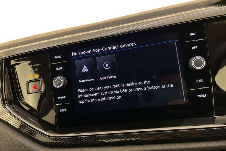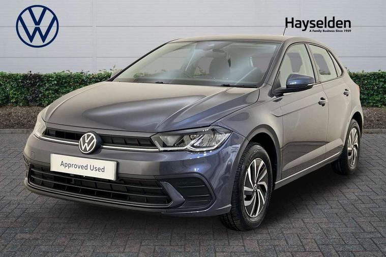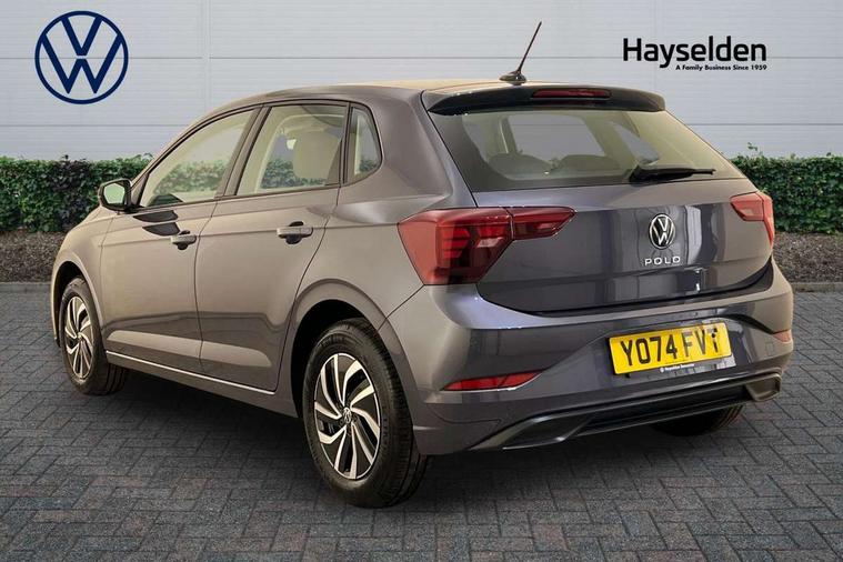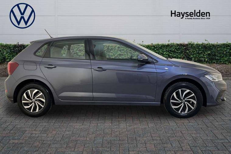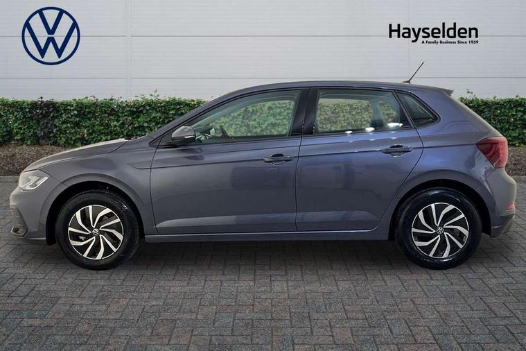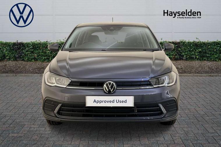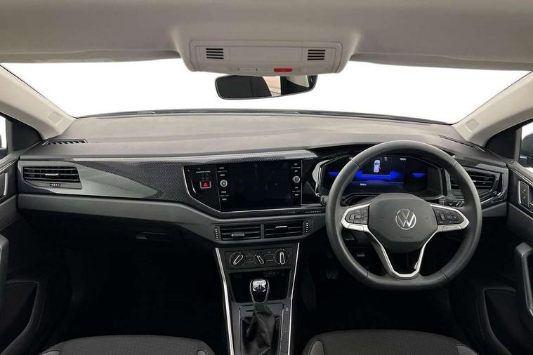 Advanced driver attention and drowsiness monitor, Bluetooth mobile phone interface, Cruise control + speed limiter, Dynamic road sign display, Emergency call service, Lane keeping system Lane Assist, Multifunction camera, Power assisted speed sensitive steering, Preparation for navigation system with media and internet package, Preparation for We connect and We connect plus, Speedo and rev counter, electronic odometer, trip, service interval display and exterior temperature gauge, Standard rear axle, Trip computer, Warning signal and warning light for front and rear seatbelts not fastened, Washer fluid level indicator, Wireless app connect, Front wheel drive, Rear shock absorpion, Start-stop system with battery regeneration (recuperation - energy recovery during braking), DAB Digital radio, Diversity antenna for FM reception, Front and rear 6 speakers, Automatic dimming interior rear view mirror, Automatic headlight control with LED separate daytime running lights with coming/leaving home function, Body colour bumpers with chrome inserts, Body colour door handles, Body colour door mirrors, Electric front windows, Engine badge deletion, Headlight range adjustment, Heat insulating and laminated safety glass windshield, LED Headlights, LED rear combination lamps, Power folding adjustable/heated exterior mirrors and front passenger exterior mirror lowering function, Rain sensor, Rear electric windows, Rear fog light, Rear side wing doors, Rear windscreen washer and wiper with interval delay, Third brake light, 12V power socket in centre console, 2 front and 2 rear reading lights with switch off delay and dimmer, 2 USB-C ports in the front, 2 USB-C charging sockets on the center console in the rear, 3 rear head restraints, 60/40 split folding rear seat and rear seat bench not split, Ceramique roof lining, Chrome plated radiator grille inserts, air vent surrounds and light switch surrounds, Door and side trim panel, Driver and front passenger seat height adjustment, Driver/passenger sunvisors with illuminated vanity mirrors, Front centre armrest, Front seat backrest storage pockets, Front standard seats, Handbrake lever handle in leather, Hartley/Thomas cloth upholstery, Headliner in recycled material, Isofix child seat preparation easy-fit (for two outer rear seats, and front passenger seat) compatible with I-size, Leather trimmed gear knob, Luggage compartment cover, Luggage compartment lighting, Removable luggage compartment floor, Single front passenger seat, Standard climatic zones, Standard pedal cluster, Three spoke leather wrapped multifunction steering wheel, Light and vision pack - Polo, 3 point height adj front seatbelts + pretensioners, 3x3 point rear seatbelts, ABS, Driver and front passenger airbag with front passenger airbag deactivation, Drivers and front passengers safety optimised head restraints, ESC (Electronic stability control) + EDL (Electronic Differntial lock) and ASR (Traction control), Extended and predictive pedestrian/ cyclist protection, Front assist with autonomous emergency braking (for Adaptive Cruise Control ACC up to 130 mph), Front curtain and side airbags with center airbag, Front disc brakes, Hill hold control, Manual child lock in rear doors, Rear drum brakes, Single tone horn, Tyre pressure loss indicator, Alarm with interior protection, Anti-theft alarm system with interior monitoring, backup horn, and towing protection, Anti-theft wheel bolts, Electronic engine immobiliser, Lava stone black gloss/matt decorative inserts in dash and front door panels, Low rolling resistance tyres,