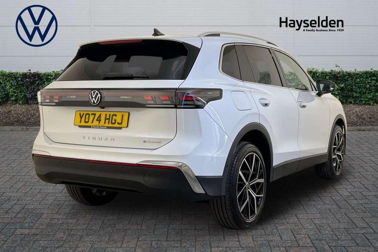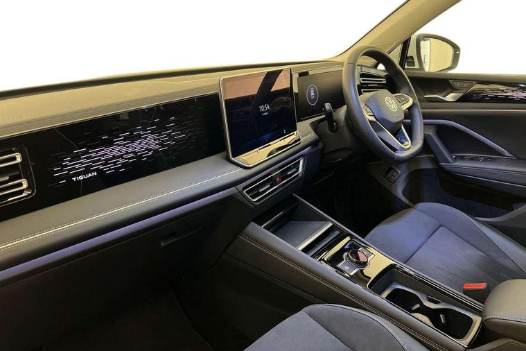 Adaptive cruise control (ACC), Advanced driver attention and drowsiness monitor, Bluetooth mobile phone interface, Car2X technology, Comfort drive travel assist, lane keeping system, lane assist and emergency assist, Digital Cockpit Pro - 10.25" high resolution dash display screen with customisable menus and information, Dynamic road sign display, E-Sim card for online connectivity, eCall emergency call service, Front Assist - Autonomous emergency braking with pedestrian and cyclist monitoring, Lane change system, Side assist, Rear traffic alert and Exit warning system, Multifunction front facing camera, Oncoming vehicle braking when turning including swerve support, Park assist pro with park distance control (Remote park assist), Power assisted steering with speed sensitive, Start/stop system with regenerative braking, Warning signal and warning light for front and rear seatbelts not fastened, Wireless App-Connect, Adaptive chassis control DCC pro includes driving mode selection, Charging cable Mode 3 Type 2 / 3 (16A), Front shock absorption, Front wheel drive, Rear shock absorption, Digital radio reception (DAB), Diversity antenna for FM reception, Air intake with Chrome trim, Ambient lighting with logo projection, Auto dimming interior rear view mirror, Automatic headlight control system, Body colored bumpers in R-Line style, Body coloured door handles, Body-coloured exterior mirror housings, Chrome moldings on the side windows, Coming/leaving home lighting function, Heat insulating glass in side and rear windows, Heated rear window, Heated windscreen washer jets, High level 3rd brake light, Illuminated door handle recesses, Illuminated lightline between headlamps, Laminated safety glass from B-pillar backwards 90% tinted, Laminated safety glass windshield, Rain sensor windscreen wipers, Rear fog light on one side, reversing light on both sides, Rear side wing doors, Rear wiper, Silver roof rails, 12V outlet in center console rear and in luggage compartment, 12V socket in centre console, 3 bench rear seats in 2nd row, Air care climatronic 3 zone air conditioning system with rear air conditioning control panel, Carpet mats, front and rear, Centre console with illuminated storage compartment with sliding cover and two drinks holders, Ceramique headlining, Chrome elements on the mirror switch and power window switches and door pulls, Door and side trim panel with leatherette insert, Door sill protectors, Front centre armrest, Interior ambient lighting with 30 colour options, ISOFIX anchors for child seats on outer rear seats and front passenger seat compatible with i-Size, Mechanical rear seat release, Power adjustable lumbar support in front, Rear bench seat, split folding, longitudinally movable and folding with load-through hatch and centre armrest, Safety optimised front head restraints, Single front passenger seat, Sports comfort seats in front, Sun visors with illuminated vanity mirrors, Three rear head restraints, Variable luggage compartment floor, Comfort package incl. Memory feature for Park assist and Safelock - Tiguan, Driver assistance package - Tiguan, 3 point seat belt for centre rear seats, 3 Point seat belts in front with pretensioners, 3 point seatbelts in outer rear with ECE label, Driver and front passenger airbag with front passenger airbag deactivation, Electronic parking brake with auto hold, Front and rear curtain airbags, Front and rear side airbags, Front centre airbag, Front disc brakes, Hill start assist, Manual child proof rear door locks, Rear disc brakes, Two tone horn, Warning triangle, Anti theft wheel bolts, Decorative inserts Cross in dash and front door panels, Interior door handle in matte chrome, Soul instrument panel, Tool kit for tyre mobility set, Tyre mobility kit including compressor and sealing foam,