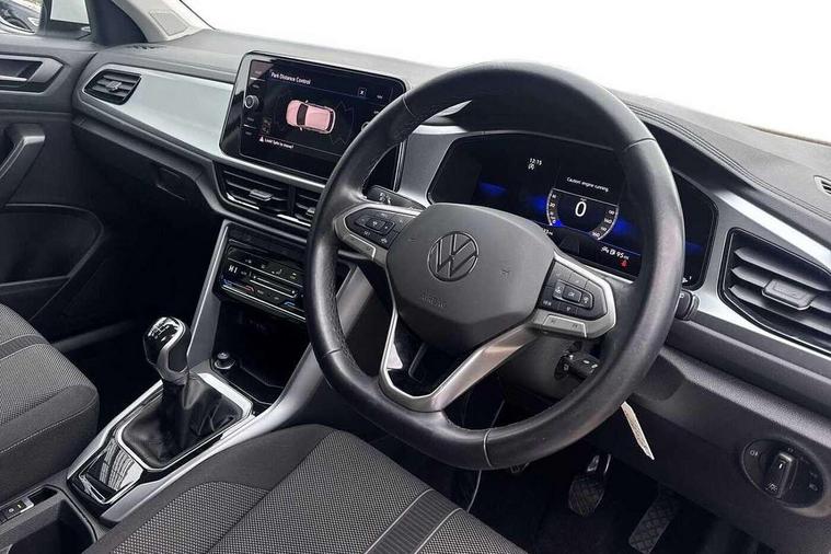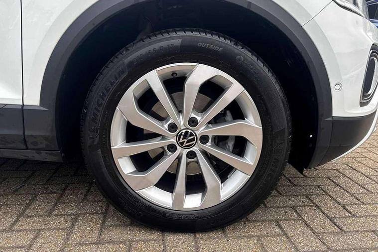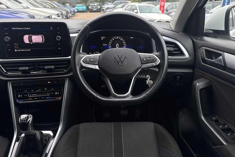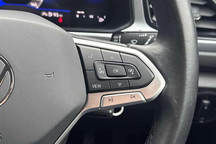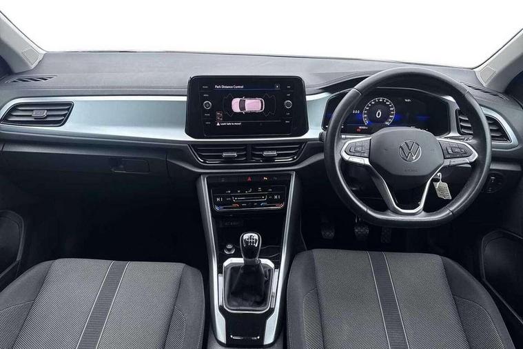 Bluetooth mobile phone interface, Driver alert system with fatigue detection, Driver tips and journey analysis, Emergency call service, Lane keeping system Lane Assist, Modified key software - reduce switch off time for key status change to Long no motion, Online services, Park assist including front and rear parking sensors, Power assisted speed sensitive steering, Service interval indicator, Tailgate/trunk lid release from outside, Think blue trainer driver tips and journey analysis, Warning sound and light for front seatbelts unfastened, Wireless app connect, Battery regeneration during braking, Front shock absorption, Rear shock absorption chassis with increased ride height, Start/stop function with battery regeneration, DAB Digital radio, Diversity antenna for FM reception, Front and rear 6 speakers, Music playback - MP3, WMA and AAC files, Premium USB cable in choice of either Apple or Android smartphone compatibility, SD card slot, Simultaneous pairing of 2 compatible mobile devices, Title and cover art display, We Connect and We Connect Plus functionality, 3rd brake light, Auto dimming interior rear view mirror, Automatic hazard lights activation under emergency braking, Automatic headlight control with LED separate daytime running lights with coming/leaving home function, Black roof rails, Body coloured bumpers and radiator grille with chrome trim and front fog lamps with chrome bezel, Body coloured exterior mirror housings and door handles, Extended roof spoiler, Exterior mirrors aspherical on driver side, convex on front passenger side, External USB type C socket and charging sockets, Front windscreen wiper with intermittent wipe and 4 position delay, Heated rear window, LED Headlights, LED rear combination lamps, LED rear number plate lights, LED tail lamp rear comination lamps, Power windows with comfort operation and circuit breaker, Rain sensor, Rear exhaust tailpipe, Rear fog light on one side and reversing lights on both sides, Rear side wing doors, Rear wash/wipe with intermittent wipe setting, Remote electrically foldable door mirrors, puddle lights and reverse activated passenger's door mirror, 12V power socket in centre console, 3 rear head restraints, 3 seat bench in 2nd row, 4 load lashing points in luggage compartment, Air care climatronic air conditoning system with active combination filter and 2-zone temperature control, Ambient lighting with mirror logo projection, Cloth upholstery, Door and side trim panel in cloth, Drawer under drivers seat, Driver/front passenger seat height adjustment, Front centre armrest, Front comfort sports seats, Front cupholders x 2, Front reading light, Instrument lighting, white adjustable panel illumination, Interior light delay, Isofix child seat preparation, Leather gearshift handle, Load-through provision with cup holder when folded down ('Unsplit rear seat bench, split folding backrest, with centre armrest), Luggage compartment lighting, Lumbar support for driver's and front passengers seat, Non-folding front passenger seat backrest, Single front passenger seat, Storage compartment in left and right luggage area, Storage compartment in rear doors, Storage compartments in driver and front passenger doors, Sunvisors with illuminated vanity mirrors, Variable boot floor, height adjustable and removable, Driver assistance pack without proactive passenger protection - T-Roc, 3 point height adj front seatbelts + pretensioners, 3 point seatbelts in outer rear with ECE label, ABS, Child locks on rear doors, Driver and front passenger airbag with front passenger airbag deactivation, Driver and front passenger safety-optimised head restraints, Drivers seatbelt reminder, Electronic parking brake, Electronic Stability Control (ESC) inc EDL (Electronic Differential Lock) and ASR (Traction Control), Front and rear passengers curtain airbag system including front side airbags, Front assist with city emergency braking and pedestrian monitoring, Front disc brakes, Front seat side impact airbags, Hill start assist, Predictive pedestrian protection, Rear disc brakes, Single tone horn, Tyre pressure loss indicator, Volkswagen roadside assistance, Alarm with interior protection, Anti-theft alarm system with interior monitoring, backup horn, and towing protection, Remote central locking with SAFELOCK, radio remote control with 2 remote control folding keys, Pewter matt decorative inserts for intrument panel and door panels at the front, Trims for alloy wheels,