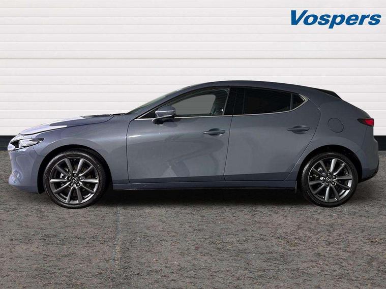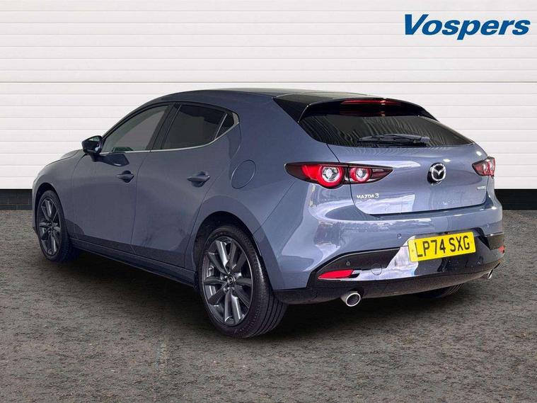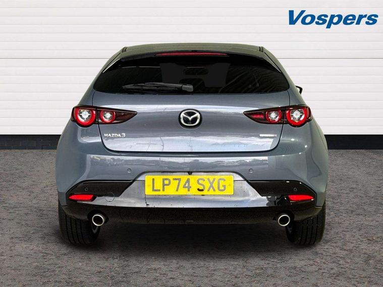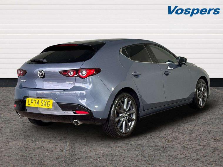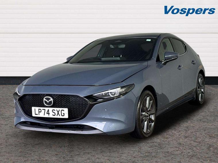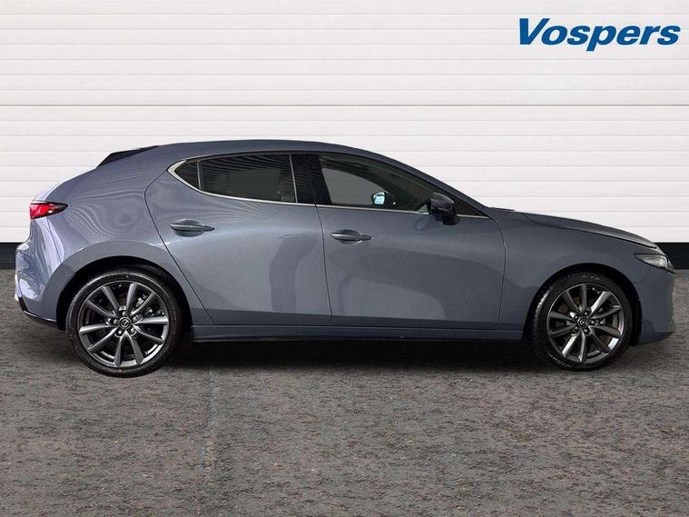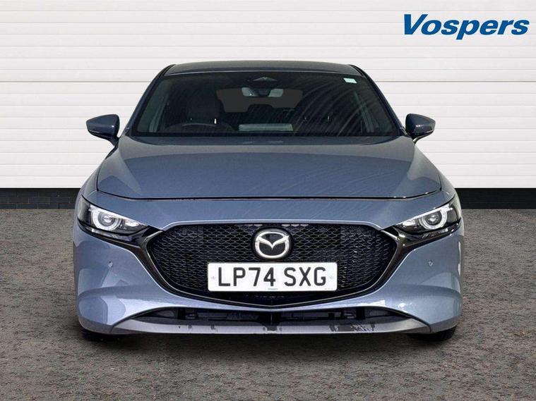 10.25" display with Mazda Connect infotainment, 7" colour TFT display, Adjustable speed limiter, Advanced E-call with GPS, Alexa in-car voice assistant, Audio transfer from bluetooth devices, Blind spot monitoring with rear cross traffic alert, Car finder, Colour active driving display inc Windscreen projected, Traffic Sign Recognition, turn-by- turn navigation and Mazda Radar Cruise Control information, Digital instrument cluster, Driver attention alert system, Emergency stop signalling system, Engine start/stop button, Front and rear parking sensor with audible and visual warning, Head up Display, Integrated bluetooth with steering wheel mounted controls, Intelligent speed assist, Lane keep assist system (LAS) with Lane departure warning system (LDWS), Mazda connected services, Mazda Navigation System with european mapping, Mazda Radar Cruise Control, Mobile App interface, Multimedia Commander, PAS, Qi wireless charging, Reversing camera, Service indicator, Tailgate, Traffic sign recognition (TSR), Trip computer, Wireless Apple CarPlay/Android Auto, Cylinder Deactivation, i-stop, 2 USB-C ports in the front, Mazda Multimedia System with AM / FM / DAB radio with 12 Speaker Bose sound system, bose centerpoint, bassmatch+audiopilot technology, Adaptive LED Headlights, Auto dimming driver's door mirrors, B-pillar garnish in piano black, Body coloured door mirrors, Coming/leaving home lighting function, Dark metallic finish signature wing, Dual chrome tailpipes tip, Dusk sensing headlights, Electric front/rear windows with one touch/auto up/down, Electrically adjustable, heated auto power folding door mirrors, Frameless auto dimming interior rear view mirror, Front body coloured bumper with black lower bezel, Front kodo turn signal, Gloss black finish front grille, Gloss black rear roof spoiler, LED auto headlight levelling, LED indicator lights, LED third brake light, Privacy glass with dark tinting on rear side windows and rear window, Rain sensing front wipers with adjustable sensitivity and speed, Rear colour coded bumper with gloss black lower moulding, Rear fog lights, Rear side wing doors, Signature LED daytime running lights, Signature LED rear combination lights, Speed adjustable rear wash wiper with intermittent wipe, 12v electrical power outlet, 3 seat bench in 2nd row, 60/40 split fold down rear seats, Chrome interior trim accents with steering wheel centre bezel, surround of engine start / stop button and glove box handle, Cloth upholstery, Dark cloth door panel inserts, Dark roof headlining, ceiling and pillars, Driver seat manual slide, recline, height and seat tilt adjust, Driver, front passenger and two rear door pockets, Driver, Front passenger and two rear grab handles with coathooks, Driver/passenger sunvisors + vanity mirrors (drivers side with ticket holder), Dual zone climate control air conditioning, Folding rear centre armrest with two cup holders, Front and rear courtesy lamps, Front armrest, Front centre storage with two cupholders, Front head restraints, Front passenger seatback pocket, Front passengers seat manual slide, recline and height adjustment, Gear shift indicator, Heated front seats with 3 stage setting, Illuminated glovebox, Interior colouration dashboard and doorcards in black with dark stitching, ISOFIX child seat anchorage points attached on outer rear seats, Leather wrapped gear shift knob, Leather wrapped steering wheel, LED interior light, LED light in luggage compartment, Power outlet in luggage compartment, Roof mounted sunglasses holder, Single front passenger seat, Three height adjustable rear head restraints, Tilt/height adjustable steering wheel, 3 point ELR front seatbelts with pretensioners, 3 rear 3 point seatbelts with ELR, Anti-lock braking system (ABS), Drivers knee airbag, DSC - Dynamic Stability Control, Dual stage driver and single stage passenger airbags, EBD - Electronic brakeforce distribution, Electronic parking brake with auto disengage function and auto hold function, Front and rear curtain airbags, Front passenger airbag cut-off switch, Front side airbags, Front smart city brake support, G-Vectoring control plus, Hill launch assist, Intelligent Traction Control system, Manual child lock in rear doors, Mild Hybrid system with regenerative braking, Seatbelt reminder audible warning for driver, passenger and rear seats, Tyre pressure monitoring system (TPMS), Auto door lock when driving, Remote central locking + deadlocks, Smart keyless entry, Thatcham accredited alarm and immobiliser, 18" Grey alloy wheels, Emergency tyre repair kit,