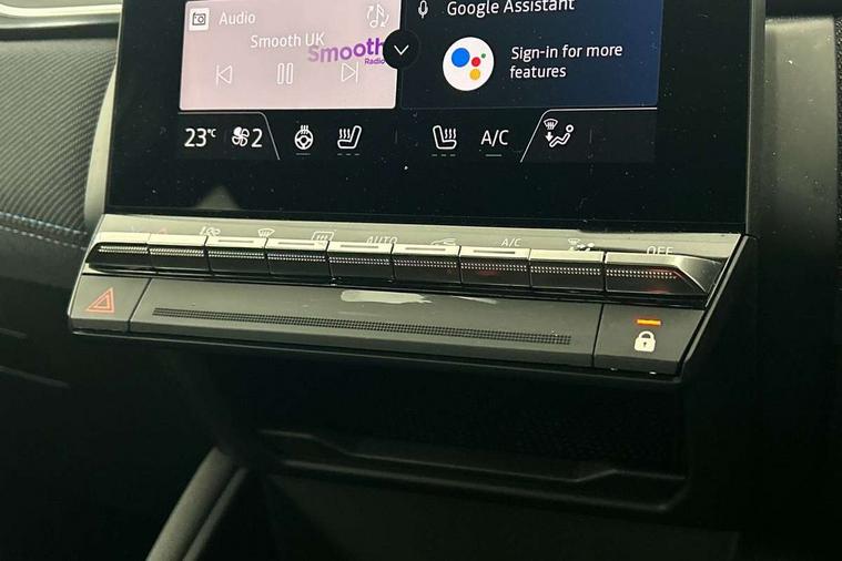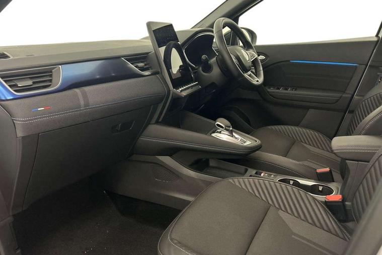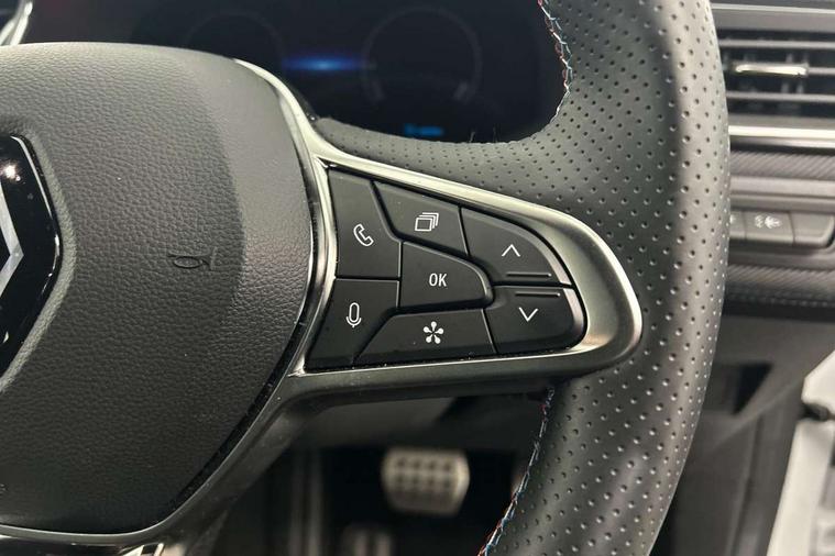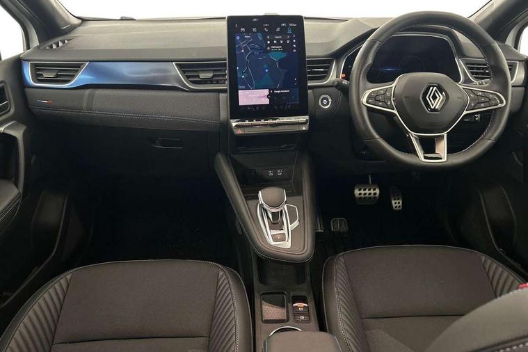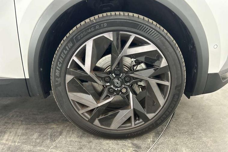 10.25" digital driver display, 10.4" OpenR link touchscreen with with built in Google Automotive Services and navigation, 2 front USB-C ports, 2 rear USB-C ports, Adaptive cruise control with speed limiter, Driver attention alert system, Driver drowsiness alert system, Eco mode, Emergency lane keep assist including solid line, oncoming traffic and road edge detection, Front and rear parking distance sensors, Gear change indicator, Lane departure warning system, Multisense with 3 driving modes + 8 ambient lighting colours, Rear view camera, Renault automatic emergency assist, Side parking sensors, Traffic sign recognition with over speed prevention, Trip computer, Variable assistance power steering, Wifi smartphone integration compatible with Apple CarPlay and Android Auto, Wireless phone charger, DAB radio with Bluetooth, Auto dimming rear view mirror with light and rain sensor - frameless, Automatic front wipers with rain sensors, Automatic headlights, Automatic high/low beam, Body colour door handles, Body coloured bumpers, Body coloured door mirrors, Chrome around front air deflectors, on front wing deco element and window lining, Dark tinted glass in rear windows and tailgate, Day time running light, Diamond black contrasting roof, Drivers one touch window with anti-pinch feature, Electrically folding door mirrors, Front and rear electric windows, Full LED front and rear lights, Gloss black window frame, Heated door mirrors, Heated rear windscreen, LED high level brake lights, LED turn indicators on door mirrors, Longitudinal roof bars, Rear fog lights, Rear side wing doors, Rear wiper, Shark fin antenna, 12V Accessory socket, 2 front roof LED lights and central rear roof light with 3 reading LED lights, 3 bench rear seats in 2nd row, Aluminium sports pedals, Automatic climate control with one touch demist function and air quality regulator, Driver and front passenger seat with electric height adjustment, esprit Alpine enveloping synthetic leather/cloth upholstery, Esprit alpine interior styling, Flying console for auto transmission, Front head restraints, Glovebox, Heated front seats, Heated steering wheel, Heating system with pollen filter, Height/reach adjust steering wheel, ISOFIX child seat fixing points on rear outermost seats, Middle console with armrest and storage, Modular boot floor, Rear air vents, Rear head restraints, Rear seats - 1/3:2/3 foldable sliding bench, Single front passenger seat, Sunvisor with mirror and light, Synthetic leather steering wheel, 3 rear seatbelts, ABS+EBA, AEBS - active emergency braking system, Approaching vehicle sound for pedestrians, Distance warning alert, Driver and front passenger and 3 rear passengers seatbelt reminder, Driver and front passenger, side, head and curtain airbags, Driver height adjustable seat belt, Electric parking brake with auto hold function, Electronic stability control, Front dash warning indicator in case of heavy braking, Front driver and passenger side airbag deactivation, Hill start assist, Passenger airbag deactivation system, Rear door and window child locking function for rear door, Tyre pressure warning light, Anti drill door locks and locking fuel cap, Central door locking, Deadlocking system, Hands free keycard with push button and start/stop function, RAID (Renault Anti-Intruder Device) automatic door locking, Black soft touch dashboard, 19" esprit Alpine Elixir alloy wheels,
