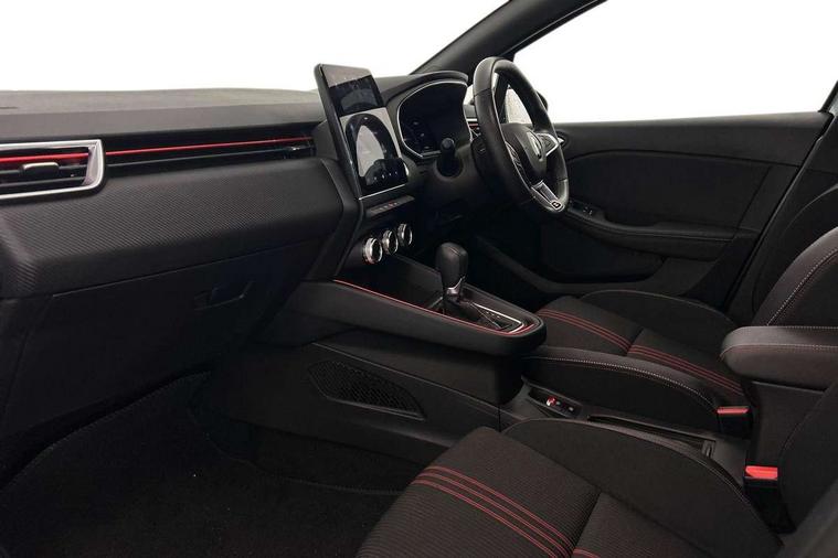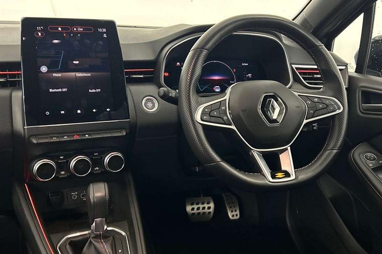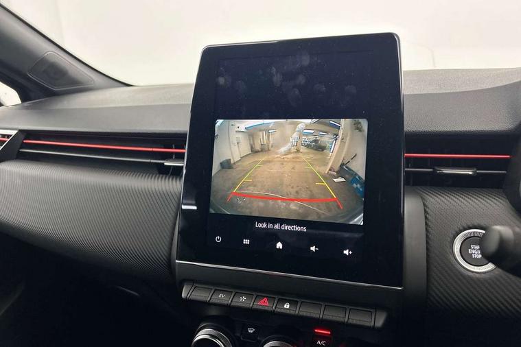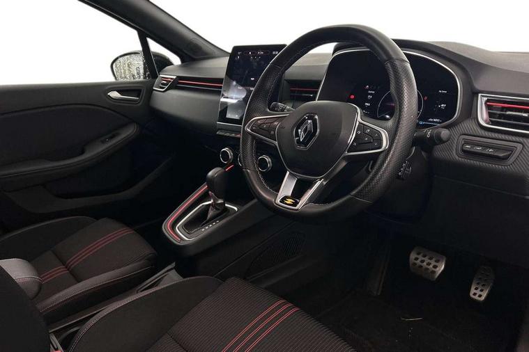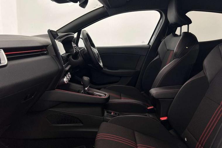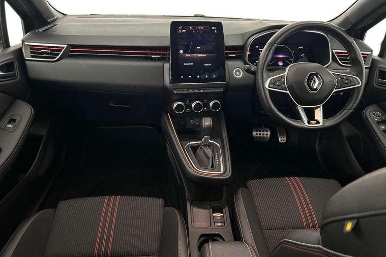 10" TFT Driver information display, Apple car play/Android Auto, Cruise control + speed limiter, E-call, Easy link navigation with 9.3" touchscreen+4x20W amplifier+FM DAB double tuner, sound auditorium, 2xUSB/1xjack/bluetooth, smartphone integration plus, Eco mode driving function, Emergency call system, Front parking sensors, Gear change indicator, Lane departure warning system, Lane keep assist, Over speed prevention, Rear parking sensors, Rear view camera, Traffic sign recognition, Trip computer, Variable assistance electric PAS, Wireless phone charger, E-TECH battery, Auto dimming rear view mirror, Auto high beam assist, Auto light control and rain sensing wiper, Automatic headlights, Black wing mirrors, Body colour door handles, Body coloured bumpers, Body coloured rear spoiler, Chrome front grille, Drivers one touch window with anti-pinch feature, Electric front windows, Electric rear windows, Exterior rear hidden door handles, Extra tinted glass on rear windows + tailgate, Front and rear LED roof light x 2, Full C-shape LED front and rear signature lighting, Full LED front and rear headlamps integrating daytime running lights at the front and rear, Gun Metal insert on lower side doors with Clio embossing, Heated rear windscreen, LED front fog lights, LED reverse light, LED third brake light, Manual folding wing mirror mechanism, Manually adjustable door mirrors, Rear fog lights, Rear side wing doors, Rear wiper, RS Line badging, RS Line exterior styling, RS Line sports front bumper, RS Line sports lower grill, RS marker chrome gun metal grey sport rear bumper with chrome oval exhaust pipe, Shark fin antenna, Variable speed on front windscreen wipers, 12V Accessory socket, 3 rear height adjustable headrests, 3 seat bench in 2nd row, 6.2L front glovebox, 60/40 split and fixed base rear seat bench, Air recirculation control, Auto climate control, Black headlining, Black hooks on boot floor x 4, Centre console with storage and armrest, Dark roof lining and aluminimum pedal set, Front cupholders, Front decor strip in red, Front door storage bin, Height adjustable front headrests, Height/reach adjust steering wheel, Isofix system on outer rear seats, Luggage nets in boot, Mechanical height adjustable front seats, Multi function steering wheel, Multisense including ambient lighting and selectable drive modes, Pollen filter, RS Line cloth upholstery, RS Line Interior trim including airvent stripe and gearshifter in red, Single front passenger seat, Sun visor without light, Synthetic leather steering wheel, System for Restraint and Protection SRP-front seats, 3 point seatbelts on all rear seats, ABS+EBA, Active emergency braking system, Curtain airbags, Distance warning alert, Driver and passenger front and side airbag deactivation, Driver/Front Passenger airbags, Electronic parking brake with auto hold, ESC - Electronic Stability Control + traction control, Front side airbags(head+thorax), Height adjustable driver's seatbelt, Hill start assist, Seatbelt warning, Tyre pressure warning, Deadlocking system, Hands free key card with push button, start and stop function, Locking fuel filler cap, RAID (Renault Anti-Intruder Device) with automatic door locking, Rear side wing door and window child locking function (front driver door control panel), Remote central locking with thatcham approved immobiliser, Black side panel personalisation with contouring, Upper dashboard cover, 17" RS diamond cut alloy wheels,