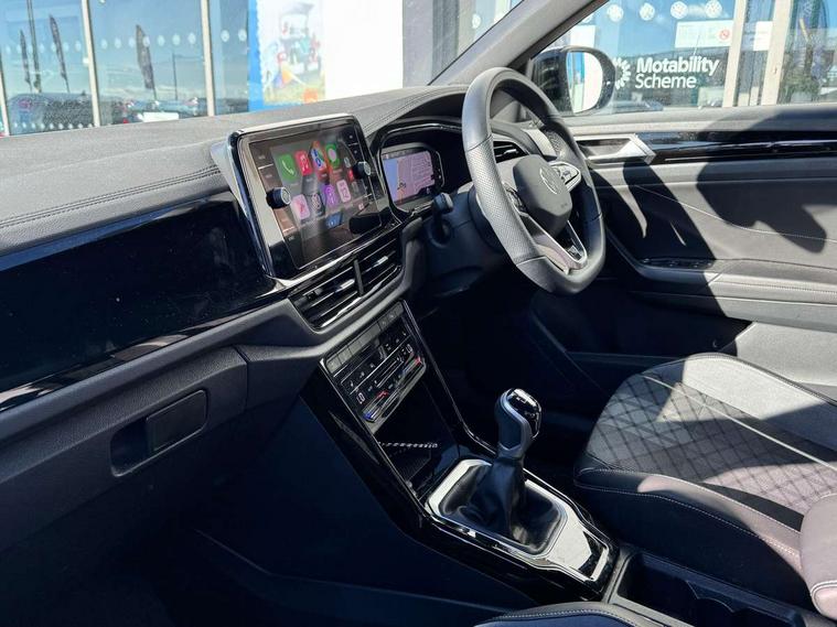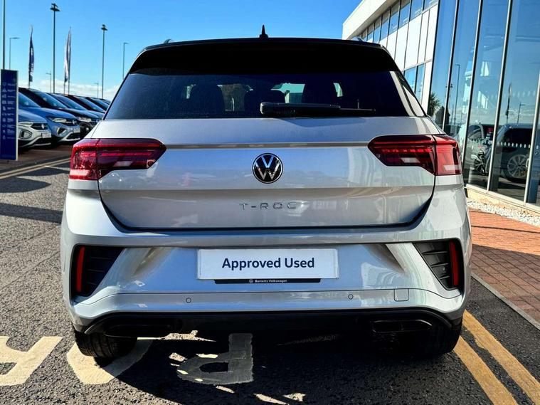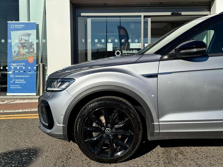 10.25" Digital cockpit pro, Bluetooth mobile phone interface, Driver alert system with fatigue detection, Driver tips and journey analysis, Emergency call service, Lane keeping system Lane Assist, Modified key software - reduce switch off time for key status change to Long no motion, Online services, Park assist including front and rear parking sensors, Service interval indicator, Tailgate/trunk lid release from outside, Think blue trainer driver tips and journey analysis, Warning sound and light for front seatbelts unfastened, Wireless app connect, Battery regeneration during braking, Start/stop function with battery regeneration, Diversity antenna for FM reception, Front and rear 6 speakers, Music playback - MP3, WMA and AAC files, Premium USB cable in choice of either Apple or Android smartphone compatibility, SD card slot, Simultaneous pairing of 2 compatible mobile devices, Title and cover art display, We Connect and We Connect Plus functionality, 3rd brake light, Auto dimming interior rear view mirror, Automatic hazard lights activation under emergency braking, Automatic headlight control with LED separate daytime running lights with coming/leaving home function, Extended roof spoiler, Exterior mirrors aspherical on driver side, convex on front passenger side, External USB type C socket and charging sockets, Front windscreen wiper with intermittent wipe and 4 position delay, Heated rear window, LED Plus headlamps, LED rear combination lamps, LED rear number plate lights, LED tail lamp rear comination lamps, Power windows with comfort operation and circuit breaker, R-Line design body coloured bumpers, Rain sensor, Rear exhaust tailpipe, Rear fog light on one side and reversing lights on both sides, Rear side wing doors, Rear wash/wipe with intermittent wipe setting, Remote electrically foldable door mirrors, puddle lights and reverse activated passenger's door mirror, 12V power socket in centre console, 3 rear head restraints, 3 seat bench in 2nd row, 4 load lashing points in luggage compartment, Air care climatronic air conditoning system with active combination filter and 2-zone temperature control, Black roof lining, Chrome plated radiator grille inserts, air vent surrounds and light switch surrounds, Door and side trim panel with leatherette insert, Drawer under drivers seat, Front + rear carpet mats, Front centre armrest, Front cupholders x 2, Front footwell illumination, Front reading light, Front scuff plates with R logo, Instrument lighting, white adjustable panel illumination, Interior ambient lighting and surround lighting, Interior light delay, Isofix child seat preparation, Leather gearshift handle, Load-through provision with cup holder when folded down ('Unsplit rear seat bench, split folding backrest, with centre armrest), Luggage compartment lighting, Single front passenger seat, Stainless steel pedals, Storage compartment in left and right luggage area, Storage compartment in rear doors, Storage compartments in driver and front passenger doors, Sunvisors with illuminated vanity mirrors, Variable boot floor, height adjustable and removable, Driver assistance pack without proactive passenger protection - T-Roc, 3 point height adj front seatbelts + pretensioners, 3 point seatbelts in outer rear with ECE label, ABS, Child locks on rear doors, Driver and front passenger airbag with front passenger airbag deactivation, Driver and front passenger safety-optimised head restraints, Drivers seatbelt reminder, Electronic parking brake, Electronic Stability Control (ESC) inc EDL (Electronic Differential Lock) and ASR (Traction Control), Front and rear passengers curtain airbag system including front side airbags, Front assist with city emergency braking and pedestrian monitoring, Front seat side impact airbags, Hill start assist, Predictive pedestrian protection, Rear disc brakes, Single tone horn, Tyre pressure loss indicator, Volkswagen roadside assistance, Alarm with interior protection, Anti-theft alarm system with interior monitoring, backup horn, and towing protection, Remote central locking with SAFELOCK, radio remote control with 2 remote control folding keys, Trims for alloy wheels,