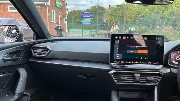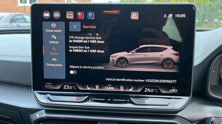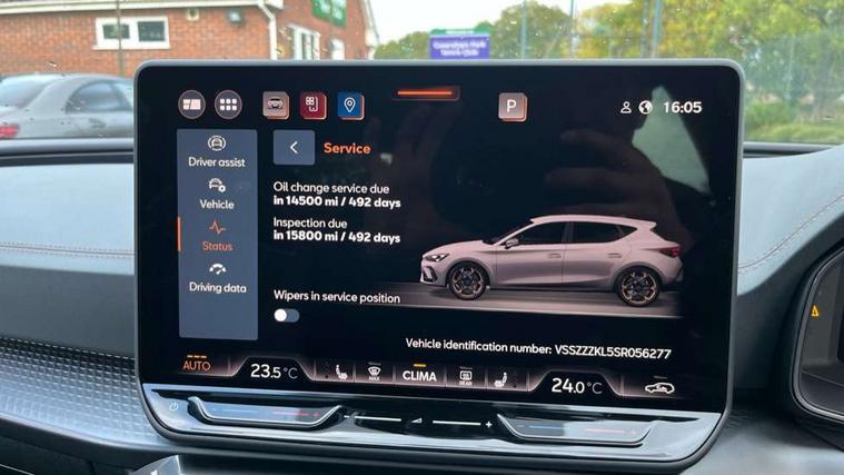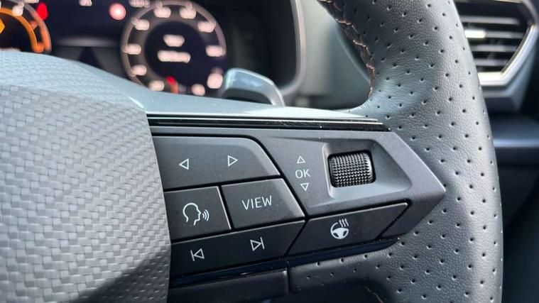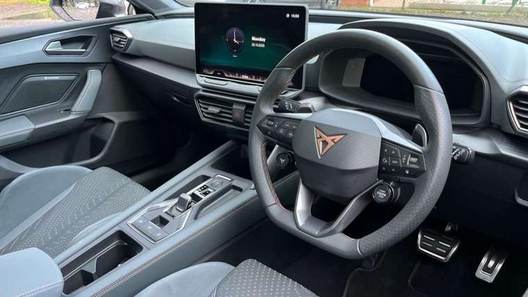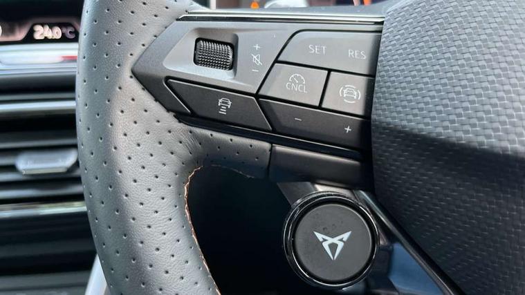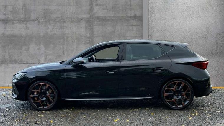 Adaptive cruise control with follow-to-stop and speed limiter, CUPRA drive profile selection with (Comfort/Sport/Individual), throttle response and gearshift mode, Digital cockpit, Dynamic road sign display, E-call, Four x USB Type C ports (2 in front and 2 in rear), Front and rear parking sensors, Front assist with forward collision warning braking reaction to vehicles, pedestrians and cyclists, Full link smartphone integration with Mirror Link, wireless Apple CarPlay and wired Google Android Auto, Intelligent park assist, Lane change assist with emergency assist, Lockable tailgate, Rear view camera, RPM, trip computer, outside temp gauge, instrument light brightness, low fuel warning light, lights on reminder, gearshift indicator, Service interval indicator, Side and exit assist, Start/stop system with regenerative braking, Wireless phone charger, Auxiliary input socket, Immersive by Sennheiser TM - 10 speakers, 1 central speaker, 1 subwoofer, Auto dimming rear view mirror, Body colour door handles, Body coloured bumpers, Cupra sports bumpers, Dark tinted rear windows, Electric front/rear windows, Electrically adjustable, heated and folding door mirrors, High beam assist, LED front fog lamps with cornering function, LED rear fog lamp, Matrix LED Headlights with variable light distribution, Matrix Beam and Dynamic headlight range control, Rain sensing wipers, Rear side wing doors, Rear wash/wipe, Separate daytime running light with automatic headlight control and coming home feature, Third brake light, Welcome light with logo projector in door mirrors, 12v power supply in centre console, 3 seat bench in 2nd row, 5 headrests, 60/40 split rear bench seat with armrest, Ambient lighting (glovebox, footwell, ambient lighting multicoloured), Black headlining, Cupra sports pedals, CUPRA Supersports, heated steering wheel with satellite buttons, Electrically adjustable driver seat and lumbar support with memory function + manually adjustable passenger seat, Folding boot cover, Front and rear reading lights X 4, Front centre armrest, Heated front seats, Height/reach adjust steering wheel, Illuminated interior front door sills, Interior wraparound lighting, ISOFIX points in outer rear seats with top tether anchorage points, Single front passenger seat, Sunvisors with illuminated mirror, Textile cloth upholstery, Three zone climate control, Dynamic and comfort pack - Leon Cupra, Media system plus with 12.9" display + navigation pack - Leon Cupra, 3 point seatbelts on all rear seats, ABS, Akebono performance brake calipers, Brake control system - ESC and brake booster, Child proof door locks, Driver and front passenger airbags with front passenger airbag de-activation, front side and curtain airbags, Electronic parking brake, Hill hold control, Pre-crash front and rear seat belt tensioner, window closure and hazard lights, Rear disc brakes, Seat belt reminder for front and rear seats, Tiredness recognition system, Tyre pressure monitoring system, Anti theft alarm system with interior monitoring in cab, backup horn and towing protection, KESSY Advanced - Keyless start, keyless entry, Locking wheel bolts, Chrome and copper interior detailing, 19" Hailstorm forged machined R black and copper alloy wheel with 91Y tyres, Breakdown kit, Tool kit,