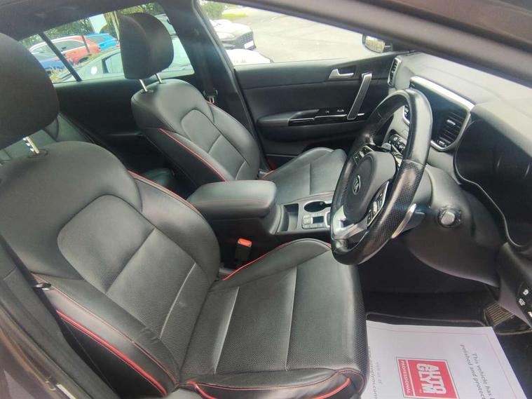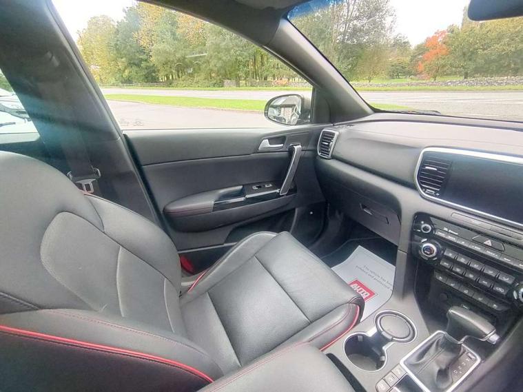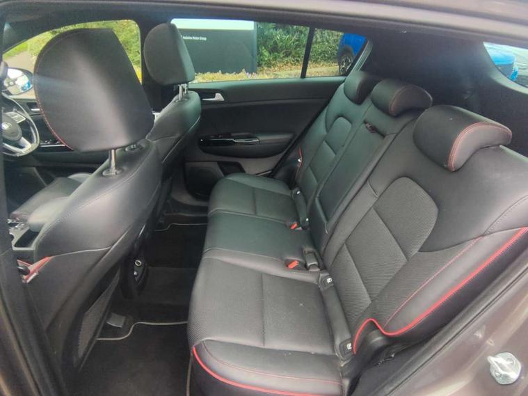 360 degree around view monitor, 4.2" supervision colour cluster display, 8" touchscreen satellite navigation with European mapping and traffic messaging channel, Android auto with voice control, Apple car play with voice control, Blind spot collision warning, Drive mode selector, Driver attention warning, Emergency stop signalling system, Forward collision avoidance assist, Front parking sensor, Kia connected services featuring TomTom live, Lane keep assist, Rear parking sensor, Reversing camera, Smart cruise control with stop and go functionality, Smart power tailgate, Speed limit information, Speed sensitive power steering, Telematics system with UVO connect services, Trip computer, Windscreen washer level indicator, Wireless Smartphone charger, Intelligent Stop and Go, Bluetooth audio streaming, DAB Radio with MP3, JBL Premium sound system with 8 speakers, external amp, subwoofer and front centre speaker, Rear USB port, Steering wheel mounted audio controls, USB/iPod/auxiliary input connections, All round electric windows with drivers and front passenger auto up/down function, Auto dimming rear view mirror, Automatic lighting control, Automatic window defogger, Black wheel arch body mouldings and side sills with dark chrome insert, Body colour door handles with chrome inserts, Body colour door mirrors, Chrome window surround, Dark chrome front bumper insert, Dark chrome grille surround, Dual exhaust pipes, EcoDynamics + Badge, Electric panoramic glass sunroof (Electric one touch with safety function), Electrically adjustable/heated/folding door mirrors with LED indicators, Front wiper de-icer, High beam assist, High gloss black blade mesh radiator grille, LED Bi-Function headlights, LED daytime running lights, LED ice cube front fog lights, LED rear lights, Privacy glass - Rear windows and tailgate, Rain sensing front wipers, Rear spoiler, Rear wiper, Roof rails, Shark fin antenna, Silver painted front and rear skid plates, Tinted glass, Trailer stability assist, Welcome and follow-me home light functionality, Wide view drivers door mirror, 10 way driver/8 way passenger electrically power adjustable seats, 12V power in front and rear centre console, 3 x passenger assist grips, 60/40 split folding rear seat, Air filter, All-round height adjustable headrests, Aluminium door scuff plates, Aluminium pedals, Black headlining, Centre console storage box, Chrome boot sill guard, D-Shaped sports leather steering wheel and perforated inserts with GT-Line logo, Driver and front passenger side sunvisors with illuminated vanity mirrors, Drivers seat power lumbar support, Dual zone automatic air conditioning, Front and rear door storage, Front cabin LED map light with sunglasses case, Front door courtesy reflectors, Front seat and rear pockets, Front/rear centre armrests, Gear shift indicator, Glovebox illumination, Heated front and outer rear seats, Heated steering wheel, Interior door lock/unlock function, ISOFIX Child seat top tethers and anchor fixings, Leather trimmed door armrests, Leather trimmed gearshift, Leather upholstery with red piping and stitching, Luggage area LED light, Luggage area load cover, Luggage net with hooks, Paddle shift controls, Rear centre armrest with cupholder, Rear coat hooks, Satin chrome interior door handles, Side cabin LED lights, Tilt/telescopic adjustable steering wheel, Ventilated front seats, Ventilation ducts to rear compartment, Active front headrests, All round 3-point seatbelts, Anti-lock braking system with electronic brakeforce distribution, Dual front side airbags, Electronic parking brake, Electronic stability control with downhill brake control, Front passenger airbag cut-off switch, Front seatbelt pretensioners + load limiters, Height adjustable front seatbelts, Hill start assist control (HAC), Impact sensing auto door unlocking, Rear door child safety locks, Traction control, Twin curtain airbags with roll over sensor, Twin front airbags, Tyre pressure monitoring system, Advanced anti-theft system including immobiliser and alarm, Door deadlocks, Engine Start/Stop Button with Smart Entry System, Locking wheel nuts, Speed sensitive auto door locking, Visible vehicle identification number, High gloss black centre fascia, 19" alloy Wheels B-type, Tyre mobility kit,
