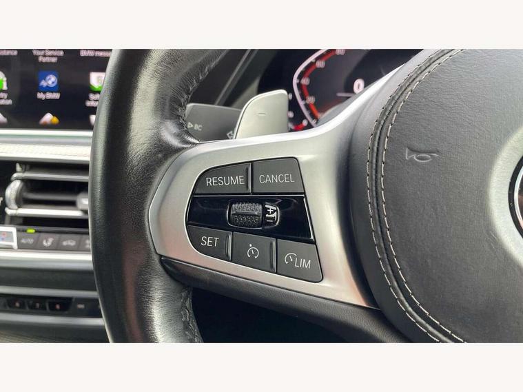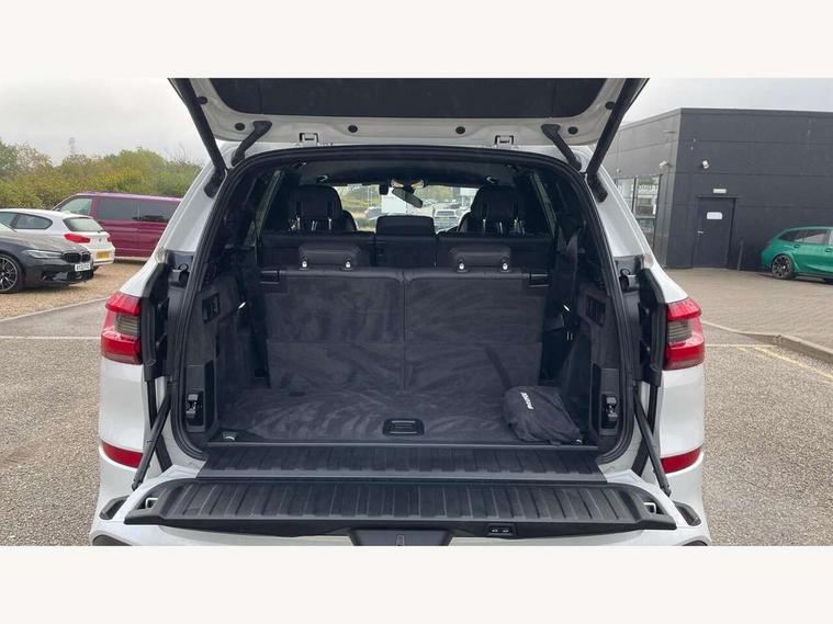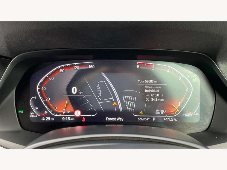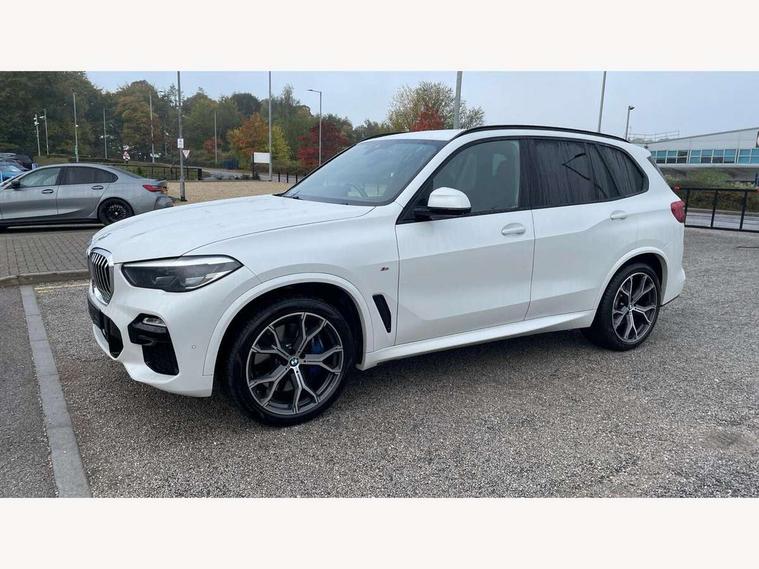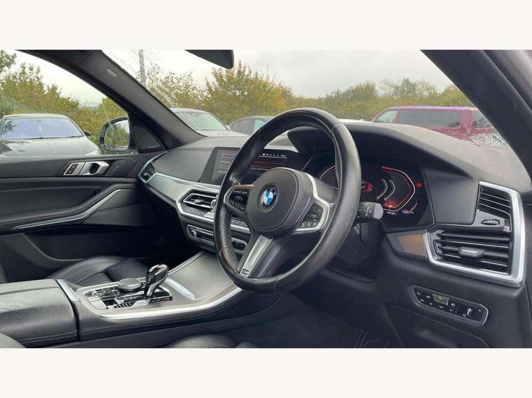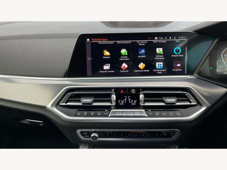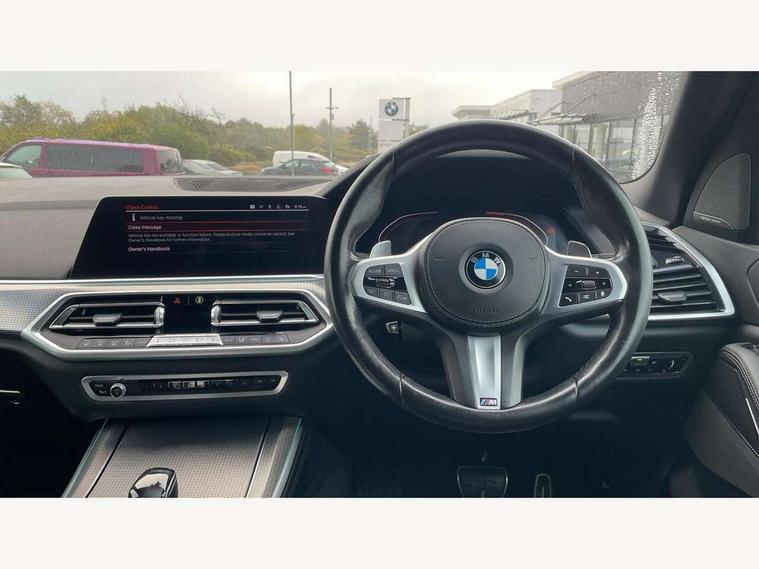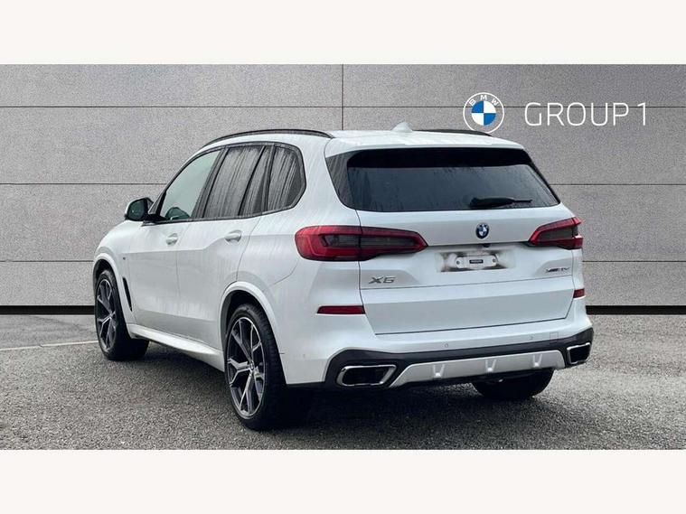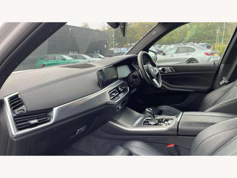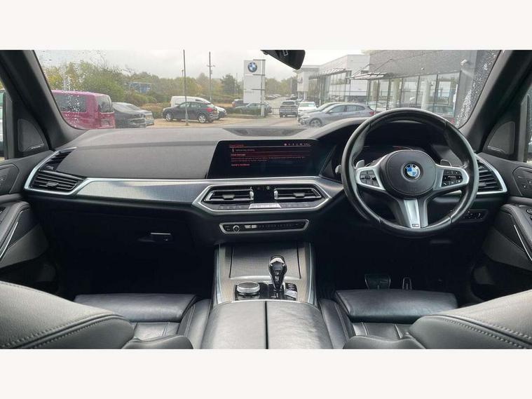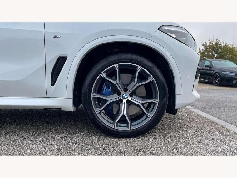 20GB hard disc drive (HDD) memory, Active guard plus, Attentiveness assist, Automatic tailgate with top hinged section open and manual bottom hinged section, BMW digital live cockpit professional - 12.3" digital instrument panel and 12.3" CID, with touch/voice command, BMW legal emergency call, BMW Online services, BMW Teleservices, Brake force display, Brake pad wear indicator warning light, Cruise control with brake assist, Enhanced bluetooth hands free facility with Telephony wireless charging, Front/rear park distance control, iDrive touch controller with shortcut buttons, Lights on warning, Oil sensor for level and grade, On board computer inc. average speed, fuel consumption, liquid crystal Info display, journey computer, outside temperature display, personal profile, Service interval indicator, Speed limiting function, Wi-Fi hotspot, Adaptive 2-axle air suspension, Diesel particulate filter, Double wishbone front axle, Drive performance control with ECO PRO comfort + sport mode, Safety battery terminal clamp, Sport automatic transmission, DAB Digital radio, Favourite buttons, Gesture control for infotainment system, USB connection, USB type A 1.5A in cupholder, USB Type C 3A in centre armrest, Active Air Stream kidney grille with high-gloss chrome, Adaptive air flap control bar in high-gloss black, Automatically dimming rear view mirror, Body colour bumpers, Body colour door handles, Body colour mirror housing, Dynamic brake lights with LED technology, Exhaust tailpipes - single, left and right with Chrome finisher, Follow me home headlights, Front and rear electric windows with open and close fingertip control, anti trap facility and comfort closing, Heat insulated glass, Heated windscreen washer jets, High gloss black outer and central air intakes on front bumper with pearlescent chrome finish, High gloss black Side elements, Intermittent rear wash/wipe, LED daytime running lights, LED fog lights, LED rear lights, M aerodynamic body styling, M designation on left and right front side panels, Pearlescent chrome front grille bars, Rain sensor with automatic headlight activation and windscreen wiper control, Satin aluminium side window graphic, Third brake light in rear spoiler, Welcome light carpet, X5 on left tailgate, xDrive designation on right tailgate, 12V - Power sockets with 2x centre console and 1x luggage compartment, 40:20:40 split folding rear seats, Ambient interior lighting with 6 pre-designed selectable lights including dynamic function, Anthracite headlining, Centre and rear interior light, Child seat ISOFIX attachment with rear outer seats includes top tether, Compartment in front of cupholder, Electric adjustable front seats + driver memory, Electrical steering column with adjustable height and length with activation and control on the steering column, Foldable rear centre armrest with 2 cupholders and storage compartment, Front and rear cupholders x 2, Front and rear door pockets, Front and rear door sill finishers with illuminated BMW designation, Front and rear door sill inlays with illuminated BMW M designation, Front and rear side armrest integrated into door trim, Front footwell lights, Front reading lights, Gearshift paddles on steering wheel, Light inside glove compartment, Lockable glove compartment, Luggage compartment floor panel with integral storage tray, Luggage compartment lighting, M leather steering wheel, M specific key, M specific pedals, M specific steering wheel, M specific velour floor mats, Make-up mirror lights, Multifunction controls for leather steering wheel, Multifunctional hooks, Seat back with flap pocket, Securing rings in luggage compartment, Storage bins on all doors, Storage tray and compartment with cover in centre console, Sunvisors with illuminated vanity mirrors, Toolkit located in luggage compartment, Connected Package Professional - X5, Expanded exterior mirror pack - X5/X5 M, Non-smokers pack - X5, ADB - Automatic Differential Brake, Airbags - driver/front passenger, rear and side, first and second row seats head airbags, front passenger seat airbag deactivation + knee airbag, Anti-lock braking system (ABS), Automatic Stability Control (ASC), Brake drying, Brake energy regeneration, Brake fade compensation, Braking pre-tensioning, Cornering brake control (CBC), Crash sensor activating central locking release, hazard warning lights, fuel cut off, interior lighting + activation of safety battery terminal clamp, Deformation zones - front and rear with door reinforcements and bumpers up to 2.5 mph, DSC - Dynamic Stability Control, Dynamic brake control, Dynamic Traction Control - DTC, Electromechanical parking brake with automatic drive away release and auto hold function, Electronic brake force distribution, Front and rear seatbelts with seatbelt stopper, seatbelt tensioner for front and outer rear seats and belt force limiter, Front head restraints with anti-whiplash, Height adjustable front seatbelts, Hill start assistant, Integrated brake system, M Sport braking system in blue high gloss + blue painted brake calipers with M designation, Mechanical child proof lock on rear doors, Passive protection for pedestrians, Seat occupancy detection for driver and passenger side, Side impact protection, Three 3 point inertia reel seatbelts, Two tone horn, Tyre pressure monitoring system, Ventilated front and rear disc brakes, Warning triangle and first aid kit, Closing system with central locking, Driver and front passenger door centre lock switch, Locking wheel bolts, Remote central locking, Thatcham 1 alarm system with remote control and engine immobiliser, Start/stop toggle diamond shaped trim finisher in pearl chrome,