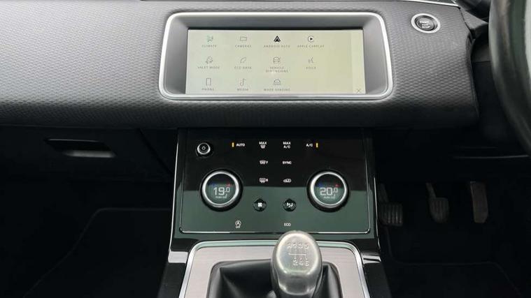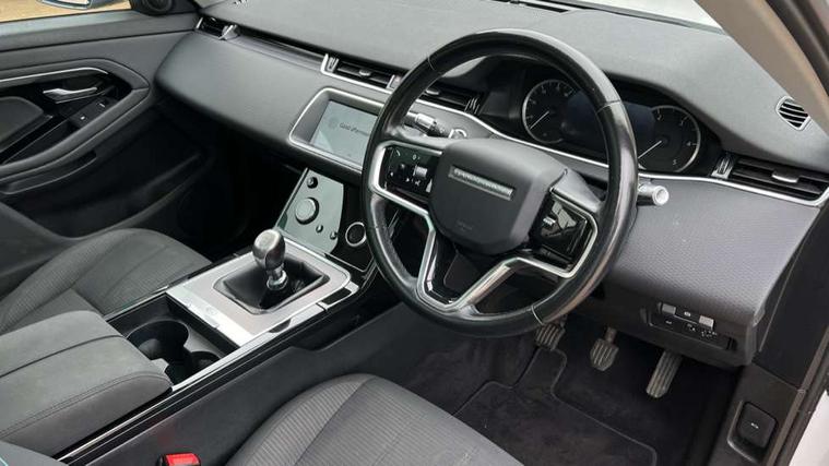 10" touch screen, Android Auto, Apple car play, Bluetooth connectivity, Brake pad wear indicator warning light, Cruise control + speed limiter, Driver condition monitor, Electronic power assisted steering (EPAS), Front and rear parking aid, InControl remote, Land Rover InControl apps, Lane keep assist, Push button starter, Voice control system, Passive suspension, Digital Audio Broadcast radio-DAB, Steering wheel mounted controls, Electric windows with one touch open/close and anti trap, Evoque badge, Flush deployable exterior door handles, Heated rear window with timer, Heated washer jets, Heated windscreen, Rain sensing windscreen wipers, Rear fog lights, Tailgate spoiler, 40:20:40 split folding rear seats with centre headrest and armrest, Ambient interior lighting, Isofix system on outer rear seats, Overhead lighting console, Overhead stowage for sunglasses, Passive front head restraints, Rear air vents, Rear centre headrest, Sunvisors with illuminated vanity mirrors, Twin sliding front centre armrest, 3 rear 3 point seatbelts, Anti-lock braking system (ABS), Customer configurable autolock, DSC - Dynamic Stability Control, Electronic brake force distribution, Electronic parking brake, Electronic traction control, Emergency braking, Front and rear seatbelt reminder, Hill launch assist, Power operated child locks, Roll stability control, Six airbags - Driver and passenger airbags/driver knee airbag/front side airbag and curtain airbags, Tyre pressure monitoring system, Alarm, Immobiliser, Intrusion sensor, Locking wheel nuts,
