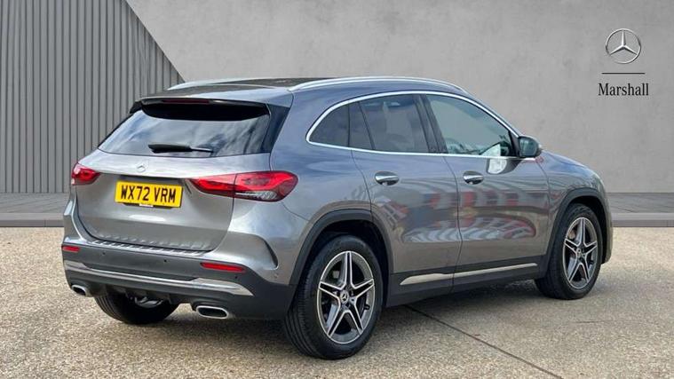 10.25 inch touchscreen central media display, 10.25" Digital instrument cluster display screen, Active lane keeping assist, Attention assist, Cruise control + speed limiter, Direct steering, DYNAMIC SELECT with a choice of driving modes (ECO, Comfort, Sport and Individual), ECO start/stop function, Fluid level warning indicator for fuel, oil, coolant and washer fluid, Hard-disk navigation, Hey Mercedes Voice activation, Lamp failure indicator, Mercedes me connect including emergency call system, accident recovery, breakdown and maintenance management, Mercedes me remote services, Multi function trip computer, Outside temperature gauge, Owners manual and service booklet in English, Pre-installation of private car share, Radio aerial integrated into front and rear windshields, Service indicator (ASSYST), Smartphone integration with Apple CarPlay and Android auto, Speed limit assist, Status display for rear seat belts in instrument cluster, Lowered comfort suspension, Rear axle multi-link, 2 USB ports (type C) in rear stowage compartment and one in front of center console, Bluetooth connectivity including audio streaming, DAB Digital radio, MBUX multimedia system, Media interface, Mercedes-Benz (225w) sound system with 10 speakers, Adaptive brake lights, Aerial for GPS, Aluminium roof rails, AMG front and rear apron, AMG specific/dual flow exhaust pipes in chrome (non-functional), Automatic headlamp activation, Beltline strips and weather strip in chrome, Black grained claddings with chrome parts, Body colour bumpers, Body colour door mirrors, Body coloured door handles with chrome insert for keyless entry, Car wash function, Dark privacy glass from B-pillar backwards, Electric front windows, Electric rear windows, Electrically adjustable and heated door mirrors with integrated LED indicators, Heated glass rear windscreen + timer control, Heated windscreen wash system, Interior mirror with black reading lamps and frameless, LED high performance headlamps with integrated LED daytime running lights, LED tail lights in two piece design, LED third brake light, Matt titanium grey front and rear apron trim, Pre-installation for trailer coupling, Rain sensor windscreen wipers, Rear fog lights, Rear side wing doors, Rear wiper, Roof spoiler, Single lamella raditor grille with chrome dotted diamond grille and inlay, 12V power socket in centre console, 3 seat bench in 2nd row, 3 spoke multifunction sports steering wheel in nappa leather with flattened bottom and perforated grip area, 40:20:40 split folding rear seat backrests, Adjustable head restraints, Air conditioning - Two zone thermotronic luxury automatic climate control with display, Ambient lighting in front headrests, AMG floor mats with AMG lettering in front, Artico man-made leather/Microfibre Dinamica upholstery with red contrast stitching, Auto Mercedes-Benz child seat recognition sensor, Black roof lining, Brushed door pulls in silver chrome, Courtesy light in boot, Front centre armrest with stowage, Galvanished gear shift paddles on steering wheel, Heated front seats, illuminated door sills with changeable cover, Illuminated glovebox, Interior lighting - 64 colour Ambient lighting, Leather trimmed gearknob, Luggage net on driver/front passenger seat backrest, Manually height and reach adjustable steering column, Multi-gesture touchpad control on center console, Single front passenger seat, Sports pedals in brushed stainless steel with black rubber studs, Sports seats, Stowage compartment in centre console, Stowage compartment with retractable cover, Sunvisors with illuminated vanity mirrors, Twin front cup holders, Two outer rear seat isofix and top tether child seat fixing points, AMG body styling pack - GLA, Comfort seat pack - GLA Class, Interior lighting with light and sight pack - GLA, Load compartment pack - GLA, Mirror pack - GLA Class, Parking pack - GLA, 3 rear 3 point seatbelts, ABS with Brake Assist, Active bonnet pedestrain safety measure which detects an impact and raises bonnet by 65mm, Active brake assist includes forward collision warning system with autonomous braking, Adaptive brake assist with hold function and hill start assist, Bonnet with power domes, Brake pad wear warning indicator, Childproof locks manually operated for rear doors and electrically operated for rear power windows, Crash responsive emergency lighting, Driver and passenger head and side airbags, Drivers knee airbag, Dual stage driver/passenger airbags, Electronic parking brake, ESP curve dynamic assist, ESP with ASR, Front and rear seatbelt reminder, Front brake callipers with Mercedes Benz logo lettering on front, Front brake discs internally ventilated and perforated, Front passenger seat occupancy sensor, Tyre pressure monitoring system, Warning triangle and first aid kit, Window airbags, Alarm system with immobiliser and interior protection -Thatcham category 1, Keyless Go starting function, Remote central locking and crash sensor with emergency opening function, Urban guard vehicle protection, Vehicle key with decorative surround in chrome, Carbon structure trim, Chrome air vent surrounds, 19" AMG 5 twin spoke light alloy wheels aerodynamically optimised painted in tantalite grey with a high sheen finish, Summer tyres, Tirefit tyre sealant kit,