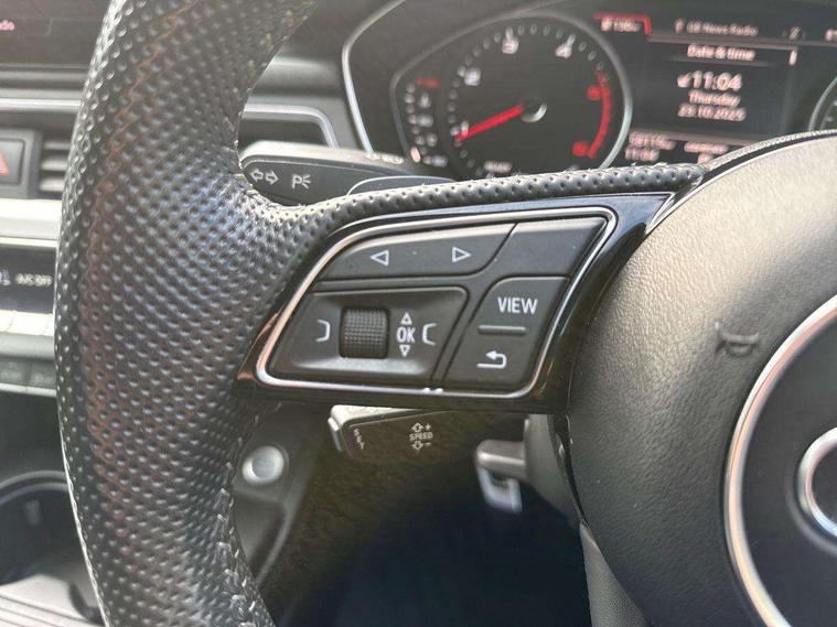 7" Colour driver information system, Audi connect, Audi drive select, Audi parking system plus with front and rear sensors, Audi smartphone interface, Automatic start-stop system with coasting functionality and efficiency programme, Bluetooth interface, Electro-mechanical power steering, MMI Navigation, Power tailgate, Service interval indicator, Voice control system, Diesel particulate filter, CD player, DAB Digital radio, Two SDXC card slots, Air inlet in matt aluminium with horizontal inlay, Aluminium roof frame and window trim, Auto dimming rear view mirror, Black grained rear grille, Body colour bumpers, Body coloured door mirrors, Chrome plated exhaust pipe, Electric adjustable heated door mirrors, Electric front windows, Front fog lights, High beam assistant, High gloss black B pillar trims and triangular rear door trim, Honeycomb side air inlet in titan black, Rain and light sensors, Rear diffuser in Twilight grey matt with honeycomb grille, S line badges on front wings, S Line body styling, S Line front and rear bumpers, S Line side skirts in black, S line sill plates, Twilight grey matt radiator grille in matt aluminium inlay, Windscreen with acoustic glazing, 2 x USB charging port with aux input socket, 40/20/40 split folding 3 seater rear bench seat, Adjustable steering column, Black headlining, Black perforated leather gearknob, Centre console with cupholders, Contrast stitching on seats, steering wheel and gear lever gaiter, Deluxe 3 zone electronic climate control, Front centre armrest, Front head restraints, Front/rear floor mats, Gearshift paddles, Illuminated door sill trim with S logo, ISOFIX child seat mounting and top tether, Jack and tool kit, Luggage compartment mat, Rear headrests, S embossed logo on front sport seats, Stainless steel pedals and foot rest, Non Smokers pack, 3x3 point rear seatbelts, 6 airbags - Driver, front passenger, curtain and side airbags, Electromechanical parking brake, Electronic Stabilisation Control (ESC) including ABS, ASR and EDL, Front passenger airbag deactivation, Height adjustable front seatbelts, Hill hold function, Multi-Collision braking, Pop-up bonnet for pedestrian protection, Pre sense city, Seatbelt monitoring, Tyre pressure warning, Variable restraint system, Warning triangle and first aid kit, Anti theft alarm system, Anti theft wheel bolts, Immobiliser, Keyless Go, Remote central locking, Tyre repair kit,