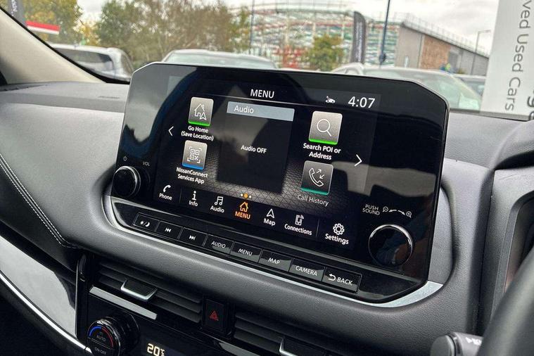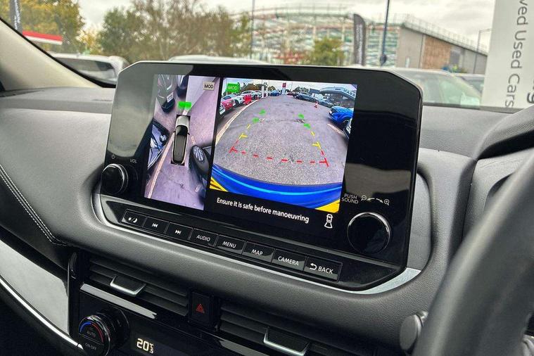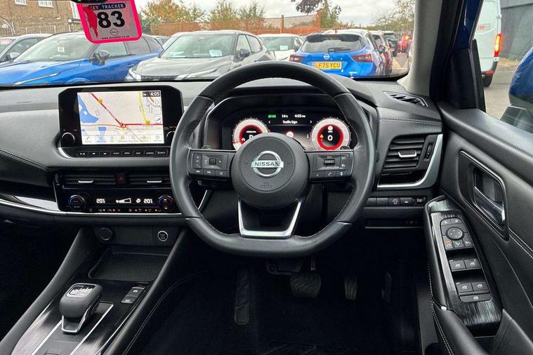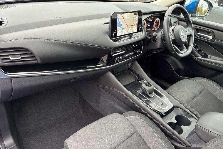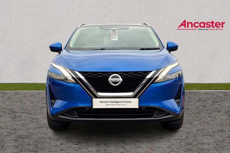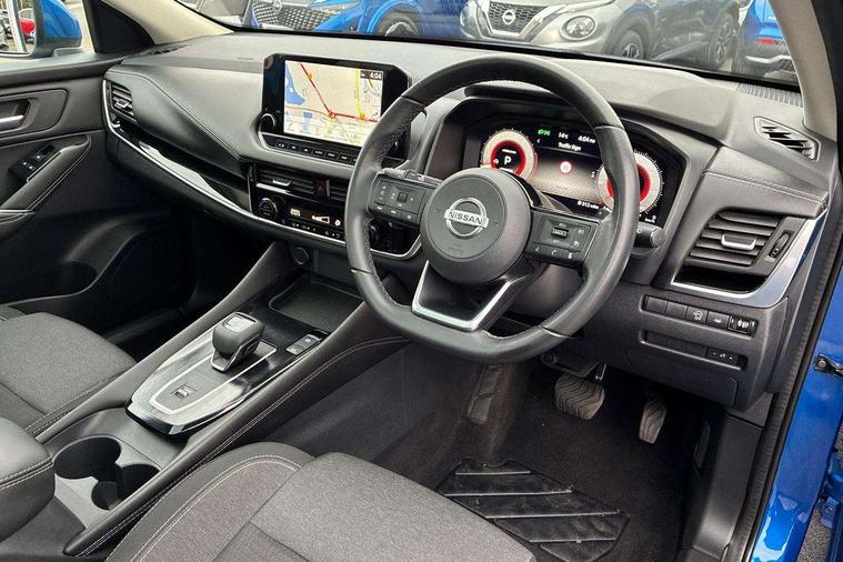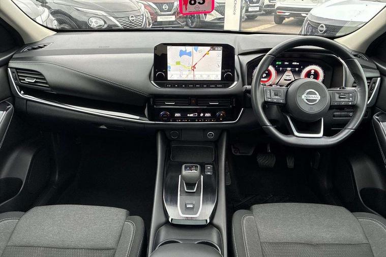 7" High definition full colour TFT screen combimeter, Blind spot warning, Drive modes (sport, normal, eco), Electric speed sensitive power steering, Emergency and breakdown call, Front and rear parking sensors, Idle stop/start system, Intelligent Cruise control (ICC), Intelligent driver alert system, Intelligent forward collision warning, Intelligent lane intervention, Lane departure prevention, Lane departure warning system, Maximum speed limiter, Moving object detection, Push button starter, Rear cross traffic alert, Traffic sign recognition with legal speed adjustment, Trip computer, 6 speakers, AM/FM audio system with DAB, Bluetooth audio streaming, Front USB connections (Type-A and Type-C), Rear USB charging only ports (Type-A and Type-C), Auto dimming rear view mirror, Auto rear wiper when reversing, Body colour mirror caps, Body coloured door handles, Bodyside mouldings, Chrome side window finisher, Electric auto folding door mirrors, Electrically adjustable and heated door mirrors with LED turn indicator, Follow me home headlights, High beam assist, Intelligent auto headlights, LED daytime running lights, LED Headlights, LED rear lights, One touch front and rear electric windows with remote opening and closing, Partially body coloured bumpers, Privacy glass, Rear reversing light (bulb lighting), Rear roof spoiler, Rear styling plate, Shark fin antenna, Splash free rain sensing wipers, Super UV and infrared cut glass, Three blink turn signal, 12v power socket in dashboard and luggage, 2 way electrical driver lumbar adjustment, 2x Rear coat hooks, 3 rear headrests, 4 grab handles, 6 Luggage hooks - 4 on floor, 2 on side, 60/40 split folding rear seat, Ambient lighting around centre console, Centre console storage tray, Chrome interior door handles, Cloth monoform upholstery, Driver and front passenger sunvisors with illuminated vanity mirrors, Driver seat back pocket, Dual zone automatic climate control with pollen filter, Front centre console and armrest, Front cupholder, Front door with bottle holders, Glovebox with light, Hard trunk cover, Height adjustable driver's seat, Height adjustable front headrests, Leather steering wheel, Luggage board system, Luggage space lighting, Manually adjustable passenger (slide recline + lifter), Multifunction steering wheel, Passenger seat back pocket, Rear armrest with 2 cupholders, Rear door bottle holders, Soft PVC kneepad, Steering wheel gearshift paddles, Steering wheel switches, Sunglasses holder, Tilt/telescopic adjustable steering wheel, Two rear isofix child seat anchorage points with top tether, Welcome light and console tray ambient lighting, Connectivity Pack - Qashqai, 3x3 point rear seatbelt pretensioners + load limiters, ABS, ESP, EBD and brake assist, Active brake limited slip, Auto hold function, Child locks on rear doors, Curtain and front side, far side airbags, Driver and passenger airbags, Driver, passenger and 2nd row rear seat belt reminder, Electronic parking brake, Front seatbelt pretensioners + load limiters, Height adjustable front seatbelts, Hill start assist, Intelligent blind spot intervention, Intelligent front emergency braking with pedestrian, cyclist recognition and junction assist, Intelligent rear automatic braking, Tyre pressure monitoring system, Vehicle dynamic control, Capless fuel filler, Engine immobiliser, Nissan i-key, Remote central door locking with deadlocking, Thatcham Cat.1 alarm, 18" Diamond cut alloy wheels,