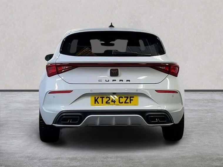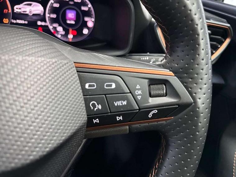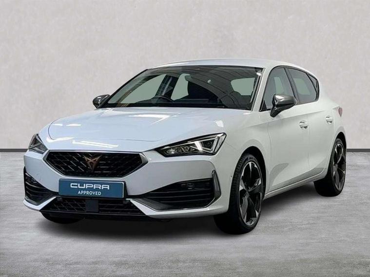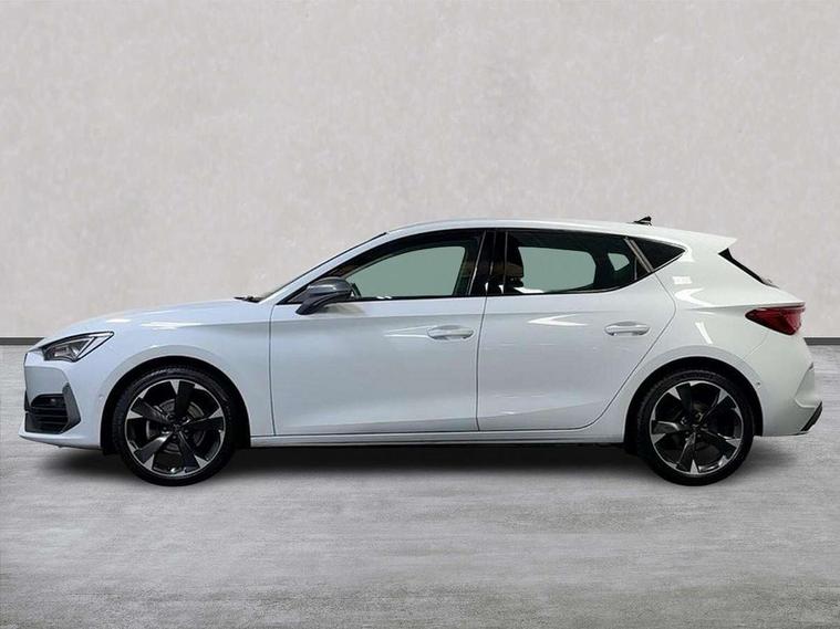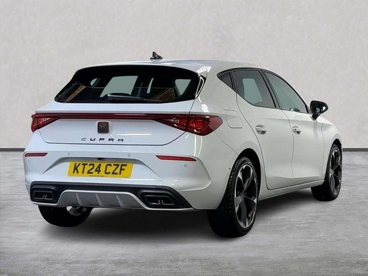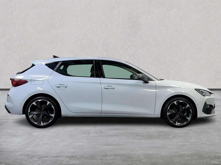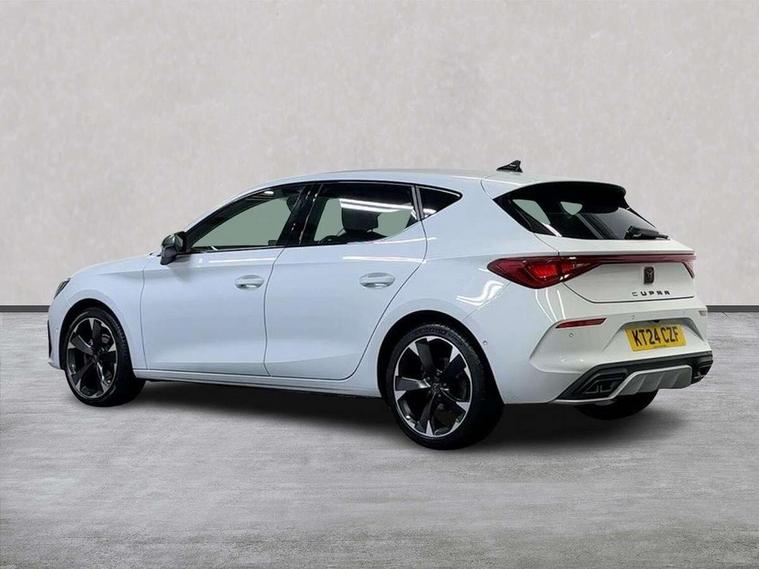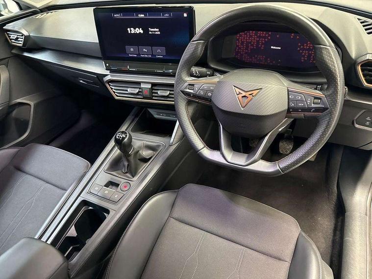 CUPRA drive profile selection with (Comfort/Sport/Individual), throttle response and gearshift mode, Digital cockpit, E-call, Electro mechanical speed sensitive power steering, Four x USB Type C ports (2 in front and 2 in rear), Front assist with forward collision warning braking reaction to vehicles, pedestrians and cyclists, Full link smartphone integration with Mirror Link, wireless Apple CarPlay and wired Google Android Auto, Lane assist, Lockable tailgate, Park assist (inc front/rear parking sensors), Rear view camera, RPM, trip computer, outside temp gauge, instrument light brightness, low fuel warning light, lights on reminder, gearshift indicator, Service interval indicator, Start/stop system with regenerative braking, Wireless phone charger, Sports suspension, Auxiliary input socket, Auto dimming rear view mirror, Body colour door handles, Body coloured bumpers, Cupra sports bumpers, Dark tinted rear windows, Electric front/rear windows, Electrically adjustable, heated and folding door mirrors, LED front fog lamps with cornering function, LED headlights with dynamic turn signals, tail lights, rear fog lights with rear coast to coast lighting, Rain sensing wipers, Rear diffuser with twin exhaust pipe on each side, Rear side wing doors, Rear wash/wipe, Separate daytime running light with automatic headlight control and coming home feature, Third brake light, 12v power supply in centre console, 3 seat bench in 2nd row, 5 headrests, 60/40 split rear bench seat with armrest, Ambient lighting with glovebox, footwell and single monocolour, Cupra Leather flat bottomed, perforated steering wheel, Driver/passenger manual seat height adjustment, Folding boot cover, Front and rear reading lights X 4, Front centre armrest, Front seats manual lumbar adjustment, Grey headlining, Height/reach adjust steering wheel, Illuminated interior front door sills, ISOFIX points in outer rear seats with top tether anchorage points, Jack and tool kit, PVC/Cloth upholstery with copper stitching, Single front passenger seat, Sports seats, Sunvisors with illuminated mirror, Three zone climate control, Media system plus with navigation pack - Leon Cupra, Safety and driving pack (M) - Cupra leon, 3 point seatbelts on all rear seats, ABS, Brake control system - ESC and brake booster, Child proof door locks, Cupra black brake calipers, Driver and front passenger airbags with front passenger airbag de-activation, front side and curtain airbags, Electronic parking brake, Extended safety system - seat belt tensioner, window closure and hazard lights, Hill hold control, Rear disc brakes, Seat belt reminder for front and rear seats, Tiredness recognition system, Tyre pressure monitoring system, Anti theft alarm system with interior monitoring in cab, backup horn and towing protection, KESSY Advanced - Keyless start, keyless entry, Locking wheel bolts, Chrome and copper interior detailing, 18" Machined sport black and silver alloy wheels with 92Y tyres,
