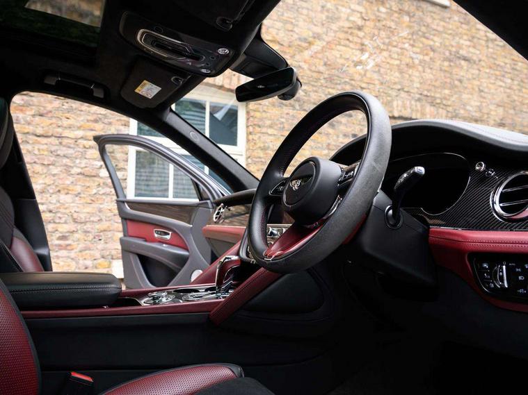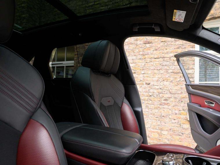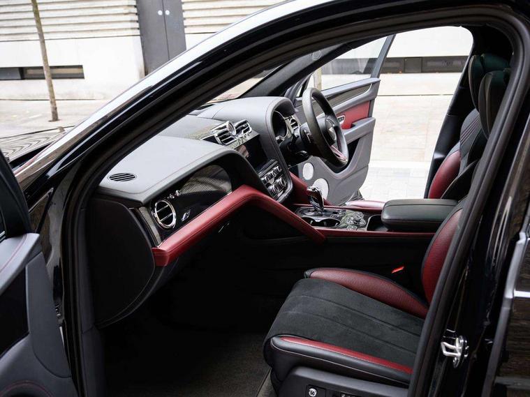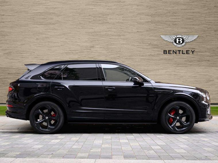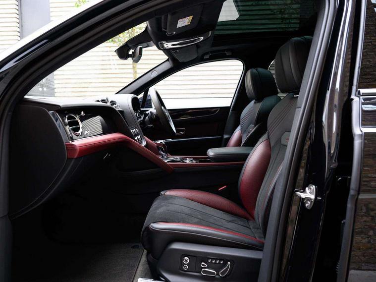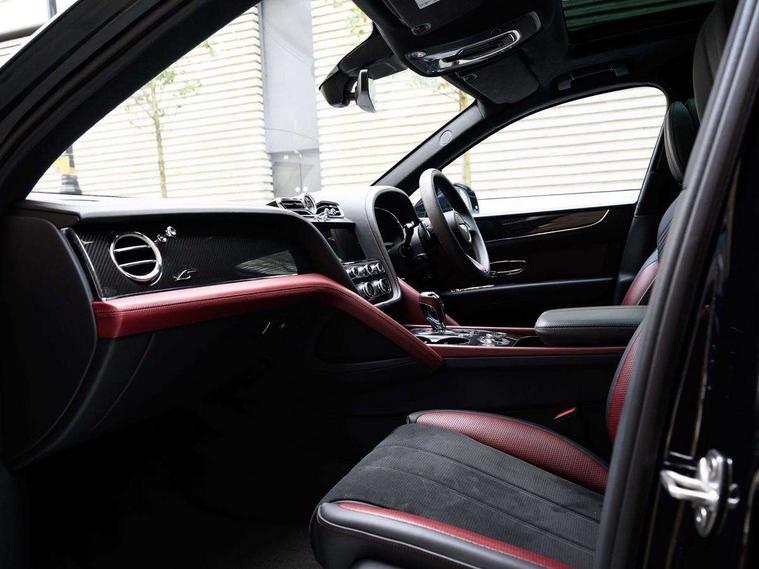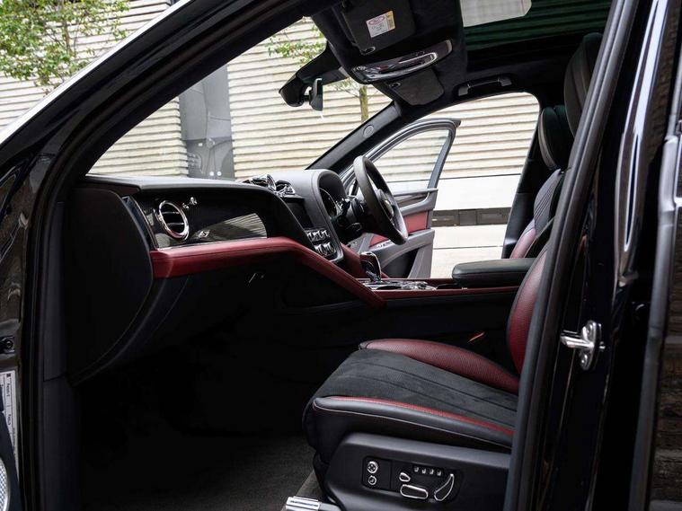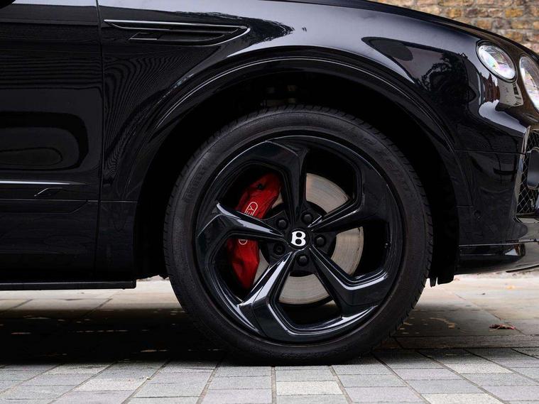 10.9" touch screen high resolution and configurable infotainment display and digital drivers information display, Advanced navigation function with text, search, 3D, satellite maps, speed limit, dynamic traffic route guide, telephone, Text-speech + voice, Bentley branded clock, Bentley GPS tracking system full fitment, Bentley safeguard, Blind spot assist, Bluetooth and WIFI enabled, Emergency services call system, Four drive dynamics modes (bentley, comfort, enhanced sport, custom), Front/rear park distance control, Hands free power tailgate, MMI Screen, My Bentley connected car services, Power latching to all doors for easy entry, Redesigned instrument panel lower trim rolls, incorporating a storage compartment on the passenger side, Seamlessly integrated technology with wireless apple car play and android auto, Speed sensitive variable ratio electric power steering, Sports driver information panel, Sports kombi graphics, Touch screen remote, Voice control system, Wireless phone charging compartment, Air suspension with continuous damping control, Bentley Dynamic ride, Permanent all wheel drive with centre torsen differential, Bluetooth audio streaming, 3rd brake light, Adaptive low beam, Auto dimming rear view mirror, Automatic headlights, Bentley badge in tailgate opening switch, Black door mirrors, Black painted shark fin aerial, Black side sills, Black speed style front and rear bumper, Body coloured front lower bumper apron panel, Body coloured lower bodywork - Standard paint range, Bumper design with large side intakes and sculptured surfaces, Clamshell rear tailgate design with Bentley lettering under the wings, Dark tinted front & rear lamps, Elec/heat/adj/fold door mirror+memory, Electric tilt/slide panoramic sunroof, Exterior S badge, Fender design reduces over bodied perception, Fixed rear spoiler, Front and rear fog lamps, Full LED supplementary lamps and tail lamps, Full matrix LED headlamps with high beam assist, Full width clamshell design and deeply contoured rear tailgate panel, Heated rear windscreen, Large dominant B shaped side wing vent front position, LED daytime running lights, Long fender vent above the power line on body side, Lower door side mouldings, Number plate aperture position under rear bumper, Oval split tailpipe, Phone antenna amplifier, Rain sensing wipers, Rear side wing doors, Rear wiper, S fascia badge, Self levelling wheel badge, Sports exhaust, Trailer sway mitigation, Tunnel detection for auto light control, V8 exterior badge, Wet arm wipers and heated water jets, 12V power in rear centre console, 12V socket in glovebox, 12V socket in luggage compartment, 3 seat bench in 2nd row, 4-Zone HVAC, Air Ioniser, Black (Beluga) boot carpet, Dinamica gear lever, Dinamica seats and dash, Electric tilt and reach adjustment steering column with memory and easy entry function, Electronic accessory preparation, Embroidered Bentley emblems, Foams and cover design on all seats, Folding luggage compartment cover, Front and rear cupholders, Indented steering wheel, Isofix attachments on outer rear seats, Key box, Load through facility, Lockable cooled glovebox, Luggage rails, Rear head restraints, Rear seat climate control, Rear seat massage function, Single front passenger seat, Stowage with instrument panel, doors (front and rear), armrests and console, Twin front armrests, Two metal bulls eye vents with organ stops and redesigned centre vents, Two type C USB ports front and rear, Unique S fluted seat colour combination with dinamica inserts, Veneered/carbon fibre centre fascia panel, Wing pockets for small items, Blackline Specification Pack - Bentayga, 3 rear seatbelts, ABS/EBD, Child safety lock, EDL, Electronic park brake with move-off assist, Electronic stability control, Electronic tyre pressure monitoring, ESP + MSR + ASR, Exit warning, Front and rear head airbags, Front and rear thorax airbag system, Front and rear ventilated brake disc, Front passenger airbag deactivation, Front seatbelt pretensioners with force limiters, Hill descent function, Hydraulic Brake Assist (HBA), Rear outer seatbelt pretensioners with force limiters, Rollover mitigation, Side airbags, Traction control, Immobiliser, Keyless entry, Keyless ignition, Preparation for vehicle tracking, Remote central locking, Volumetric anti theft alarm, 22" Summer tyres,