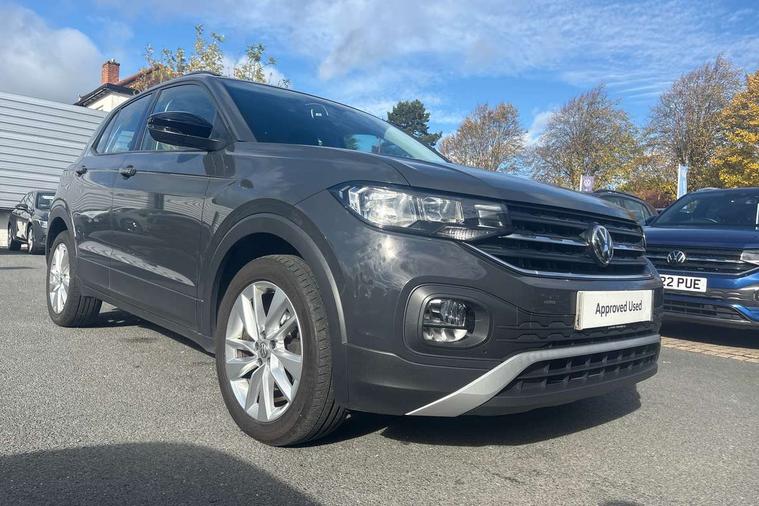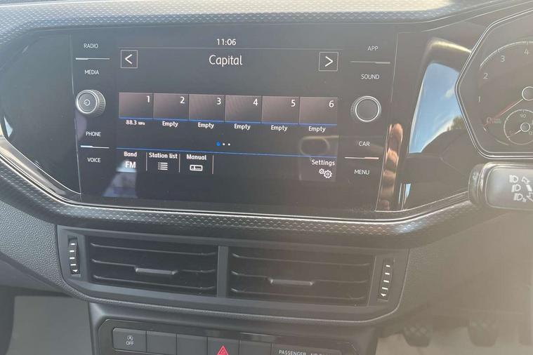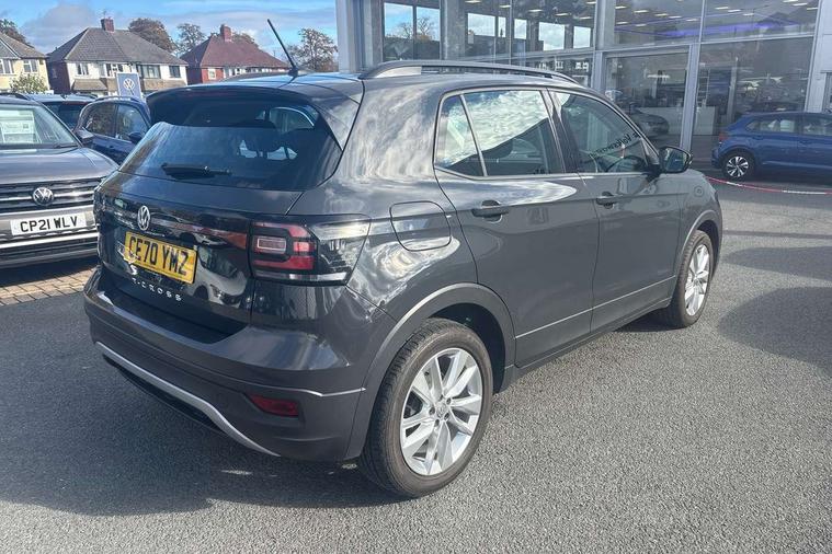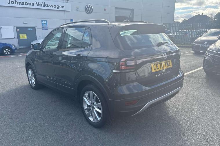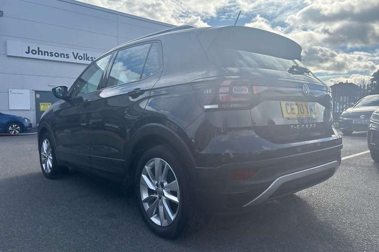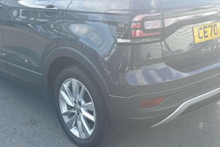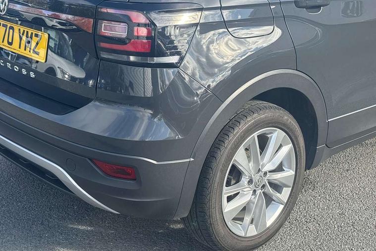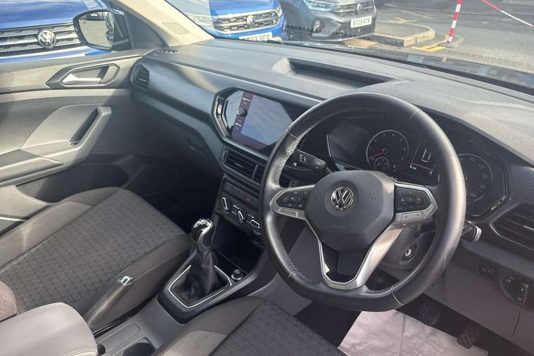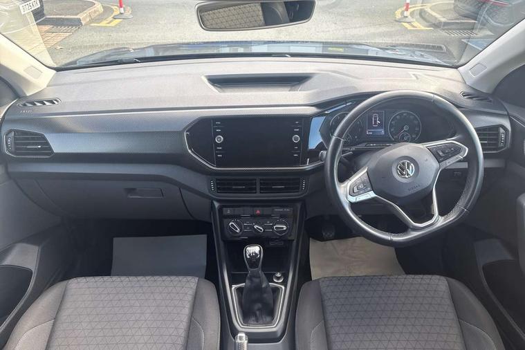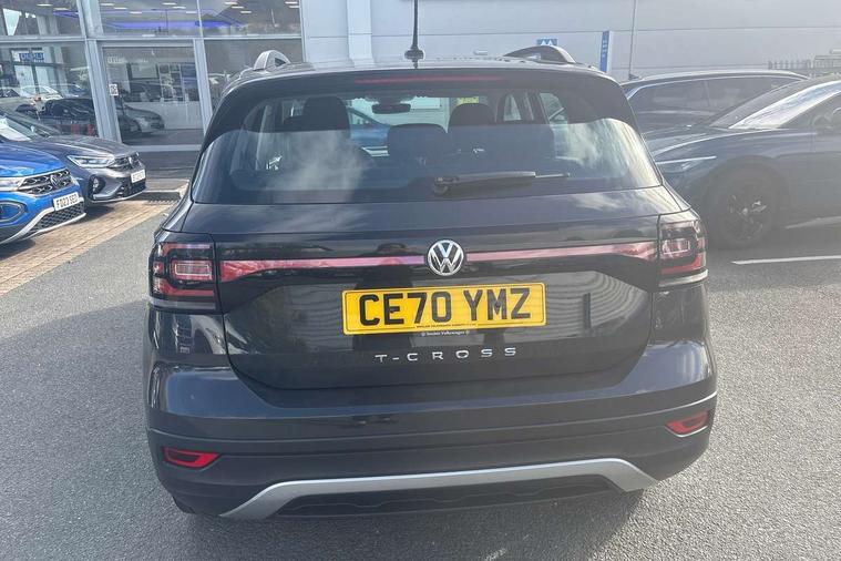 'Lights On' Reminder warning buzzer, Adaptive cruise control including front assist, forward collision warning, autonomous emergency braking, speed limiter, Driver alert system, eCall emergency call system, Lane assist, Multifunction computer with visual gear change recommendation for fuel consumption, Power assisted speed sensitive steering, Speedo, rev counter, electronic odometer, trip, service interval display, exterior temperature and fuel gauge, Stop/start system, Warning sound and light for doors and tailgate open, Warning sound and light for front seatbelts unfastened, We Connect Go Dongle, Wireless Car net app connect with Apple CarPlay, combined functionality of Apple CarPlay/Android Auto and MirrorLink, Battery regeneration during braking, Misfuel prevention device, 2x USB connection with USB charging sockets and in rear centre console, Diversity antenna for FM reception, Premium USB cable for Apple or Android smartphone compatibility, Automatic dimming interior rear view mirror, Automatic hazard lights activation under emergency braking, Black roof rails, Body colour door handles, Body coloured bumpers, Dusk sensor + automatic driving lights, Front and rear electric windows, Front fog lights with static cornering function, Galvanised body, Heated rear window, High level 3rd brake light, Lower door sills and door pillars in black, Manual coming/automatic leaving home lighting function, Radiator grille with high gloss surface and chrome strip, Rain sensor, Rear lights incorporating LED technology, Rear window aerial, Rear windscreen washer and wiper with interval delay, Reflectors in all doors, Tailgate with integrated roof spoiler, Windscreen wipers/ intermittent wipe + 4 position delay, 12V Accessory socket in centre console, 3 rear head restraints and 3 rear three point seat belts with ECE label, 60/40 split folding rear seat backrest, Drawer under drivers seat, Driver and front passenger sunvisor with vanity mirror, Driver's sunvisor with ticket holder, Dust and pollen filter, Front and rear reading lights X 2, Front centre armrest with storage compartment, Front seat back storage pockets, Glovebox, Heating and fresh air system with 4 stage blower, Height/reach adjust steering wheel, Instrument lighting white adjustable panel illumination, Interior light with delay, Isofix child seat preparation for 2 rear child seats, Luggage compartment cover, Luggage compartment lighting, Manual front seats with height adjustment, Moveable and foldable Rear bench seat, Storage compartment in drivers and front passengers door, Variable boot floor, Composition Media infotainment system pack - T cross, Anti-lock Braking System (ABS) with Hydraulic Brake Assist (HBA), Automatic post collision braking system, Driver and front passenger safety-optimised head restraints, Drivers and Front Passengers airbags with front passengers airbag deactivation switch, ESC with EDL, ASR, EDTC and trailer stabilisation function, Extended and proactive pedestrian protection, Front and rear curtain airbags, Front disc brakes and rear drum brakes, Front seat side impact airbags, Height adjustable 3 point automatic front seatbelts with pretensioners, Hill start assist, Pre crash preventive occupant protection, Rigid safety cell with front and rear crumple zones, Tyre pressure loss indicator, Volkswagen roadside assistance, Alarm with interior protection and deactivation via infotainment system, Child security locks in rear doors, Remote tailgate unlocking using key fob,