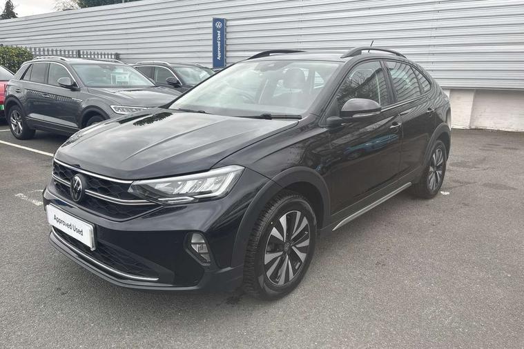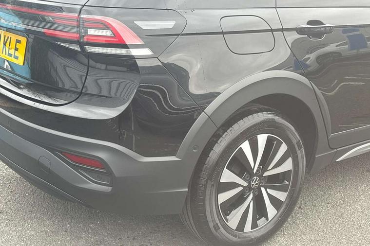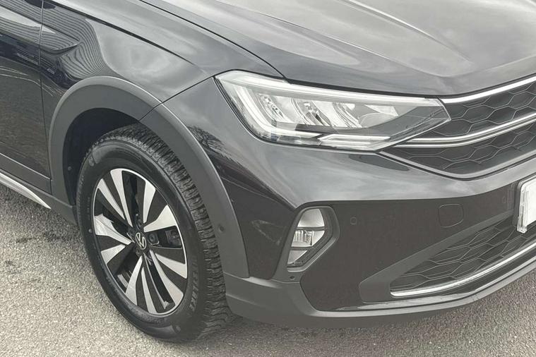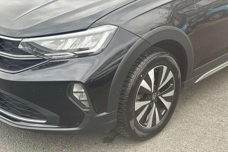 App-Connect including App-Connect Wireless, Driver alert system, e-Call (emergency call), Power Steering, Travel assist including emergency assist, Washer fluid level indicator, Wireless Charging including Bluetooth, Start-stop system with battery regeneration (recuperation - energy recovery during braking), Digital radio reception (DAB+), Diversity antenna for FM reception, WeConnect plus, Aspherical driver's exterior mirror, Auto headlights, Body coloured bumpers, Body coloured exterior mirror housings and door handles, Electric windows, External USB type C socket and charging sockets, Front fog lamps with cornering function, Headlight range control, Heat insulating glass windscreen, LED headlamps, LED rear combination lamp, LED third brake light, Left convex exterior mirror, Power folding adjustable/heated exterior mirrors and front passenger exterior mirror lowering function, Rear fog light on one side, reversing light on both sides, Rear side wing doors, Rear wash/wipe with intermittent wipe setting, 'Slash/ Austin' Cloth upholstery, 12V socket in centre console, 2 front reading lights, 3 rear head restraints, 3 seat bench in 2nd row, Ambient lighting with logo projection, Black carpets, Child seat anchor for child seat system i-Size, 2x top tether and child seat anchor in front on front passenger side, Door and side trim panels in titan black, Driver and front passenger seat height adjustment, Front centre armrest, Handbrake lever handle in leather, Height and reach adjustable steering wheel, Leather trimmed gear knob, Leather wrapped multifunction steering wheel, Luggage compartment floor, Luggage compartment light, Lumbar support for driver's and front passengers seat, Seat covers in titanium black, Single front passenger seat, Split folding backrest with centre armrest and unsplit rear seat bench, Storage compartment under front seats, Sun visors with illuminated vanity mirrors, Chrome Package - Taigo, Drivers assistance pack - Taigo, Light and Sight pack including High beam assist - Taigo, 2 x 3-point seatbelts/outer rear seats with ECE label, 3-point seat belts in front with pretensioner and height adjustment, 3-point seatbelt for centre rear seat, Driver and front passenger airbags with front passenger airbag de-activation, front side and curtain airbags, Driver and front passenger safety-optimised head restraints, Electronic stability control, Extended and predictive pedestrian/ cyclist protection, Front and rear disc brakes, Front curtain and side airbags with center airbag, Hill start assist, Manual rear child locks, Single tone horn, Tyre pressure loss indicator, Anti-theft alarm system with interior monitoring, backup horn, and towing protection, Anti-theft wheel bolts, Lava stone black gloss/matt decorative inserts in dash and front door panels, Low rolling resistance tyres,