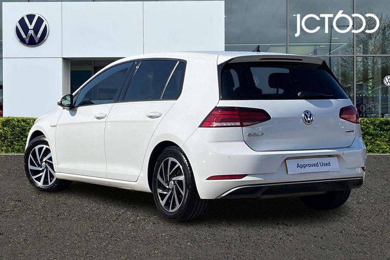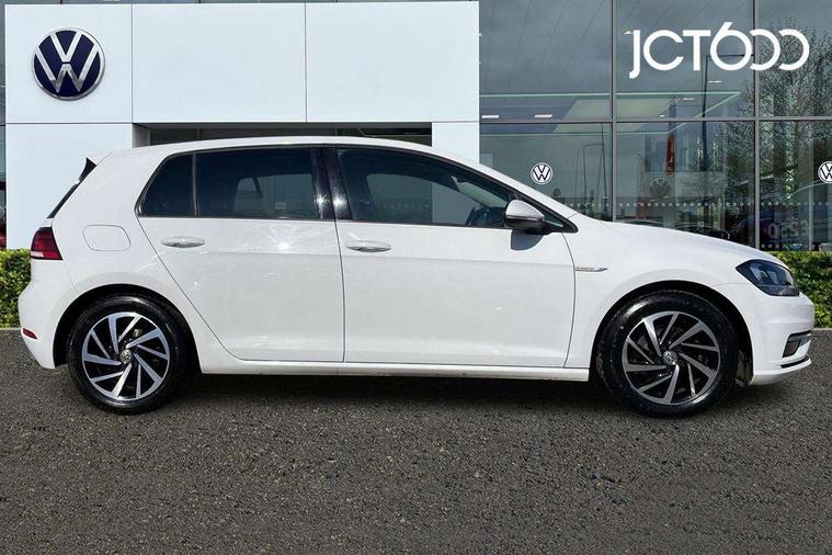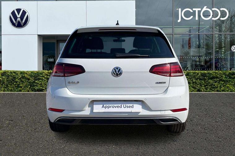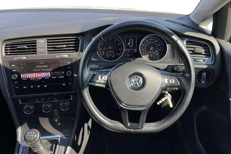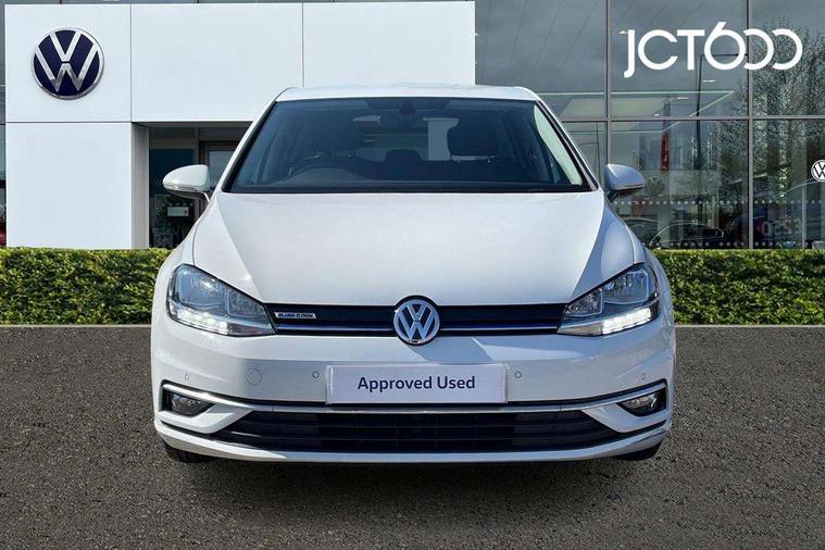Brushed dark silver decorative inserts in dash and door panels, Chrome plated air vent surround, Chrome plated electric mirror adjustment light switch surround, Polar night black centre console, Convenience Pack - Golf, Light and Sight pack - Golf, Mirror pack - Golf, Steel space saver spare wheel, Alarm with interior protection and deactivation via infotainment system, Electronic engine immobiliser, Remote central locking with 2 remote folding keys, Composition media system, DAB Digital radio receiver, Driver Personalisation profile selection, MP3/WMA compatability, Multi device interface (MDI) with USB connection, Personalisation 1.1 profile for media, Premium USB cable in choice of either Apple or Android smartphone compatibility, SD card slot, SMS Functionality, USB and SD card connectivity, 3 rear three point seatbelts, Airbags - Driver's and front passenger's, curtain airbag, Driver's knee, front side impact and passenger's airbag deactivation switch, Anti-lock Braking System (ABS) with Hydraulic Brake Assist (HBA), Automatic post collision braking system, Child locks on rear doors, Driver/Passenger optimised head restraints, Electronic parking brake with auto hold, Electronic stability control (ESC) including Electronic differential lock (EDL) and ASR (Traction control) with deactivation via infotainment system, Front ventilated disc brakes and rear disc brakes, Pre crash preventive occupant protection, Three point height adjustable front seatbelts with tensioners, Tyre pressure loss indicator, Black front air intake and radiator grille with chrome insert, Black rear diffuser, Body colour bumpers, Body colour door handles, Body colour door mirrors with integrated indicators, Dusk sensor + automatic driving lights, Electric front windows, Electric rear windows, Electrically adjustable and heated door mirrors, Fully galvanised body, Heated rear windscreen, Hidden exhaust pipe, High level 3rd brake light incorporating LED Technology, LED daytime running lights, LED front fog lights with static cornering light function, Rear fog lamp, Rear tinted glass 65% light absorbing from B pillar backwards, Rear window aerial, Rear window wash/wipe with intermittent wipe, Reflectors in all doors, Tailgate with integrated rear roof spoiler, Windscreen wipers/ intermittent wipe + 4 position delay, 12V socket in luggage compartment, 3 rear headrests, 4 load lashing points in luggage compartment, 60/40 split folding rear seat backrest, Auto fold down lever in rear seat backrest, Bag hook in luggage compartment x 2, Cooled glovebox, Cupholder cover, Dust/pollen filter, Front and rear reading lights incorporating LED technology, Front centre armrest with storage compartment and two rear air vents, Front seat back storage pockets, Grab handles front x 2, rear x 2 with integrated coat hooks, Height and reach adjustable steering wheel, Illuminated vanity mirrors, Instrument lighting white adjustable panel illumination, Interior light delay, Isofix preparation for 2 rear child seats, Load through provision with rear centre armrest and cupholders x2, Luggage compartment lighting, Overhead storage box, Passenger underseat drawer, Pearl grey headlining, Storage box in luggage compartment, Storage compartment in roof console with cover, Storage compartments in centre console, Storage compartments in front doors, Storage compartments in rear doors, Stowable luggage compartment cover, Sun visors, Variable boot floor, height adjustable and removable, 'Lights On' Reminder warning buzzer, ACC - Adaptive cruise control with front assist, forward collision warning, distance monitoring, city emergency brake and speed limiter, Bluetooth telephone and audio connection for compatible devices, Brake pad wear indicator warning light, Driver alert system, Driver profile selection, Driving Mode Selection with four preset modes - Eco, normal, sport or individual modes, Instrument cluster in white, Multifunction computer with visual gear change recommendation for fuel consumption, Power assisted speed sensitive electro-mechanical steering, Push tank flap, Speed limit display, Speedo, rev counter, electronic odometer, trip, service interval display, exterior temperature and fuel gauge, Stop/start system, Warning buzzer and light for front seatbelts unfastened, Battery regeneration during braking, XDS electronic differential lock,