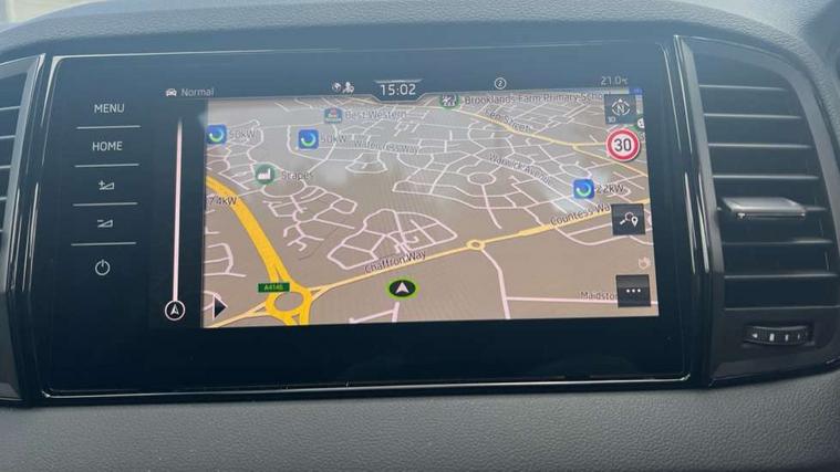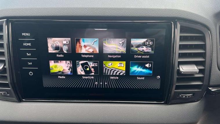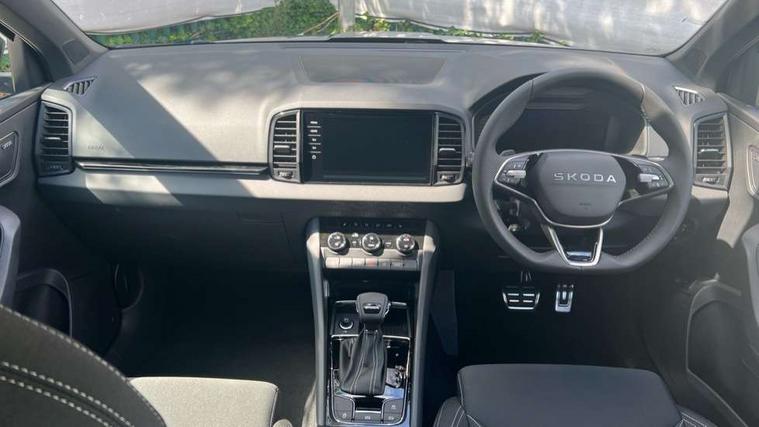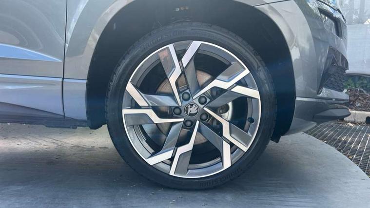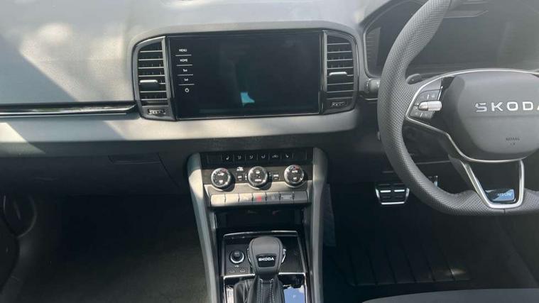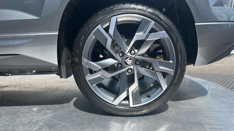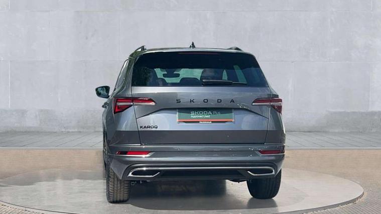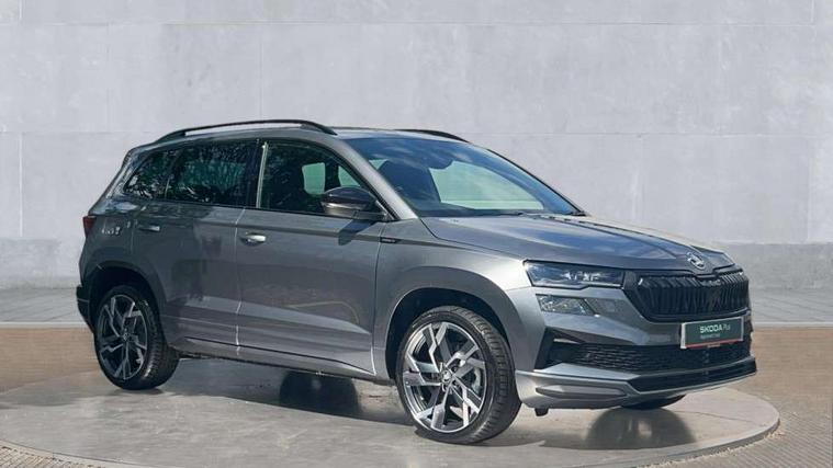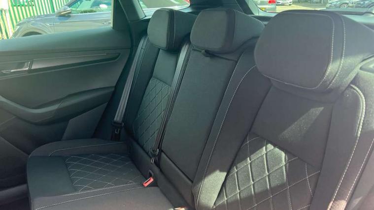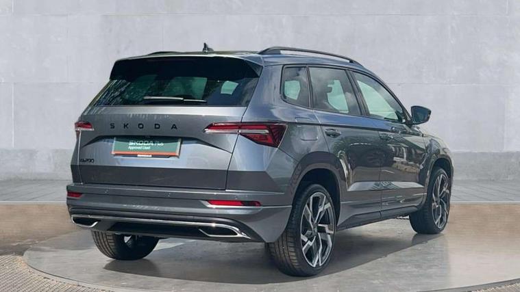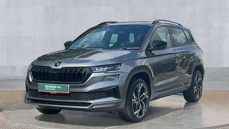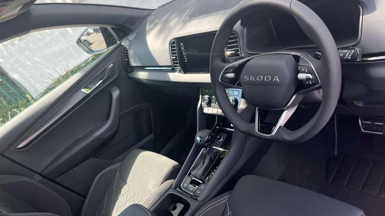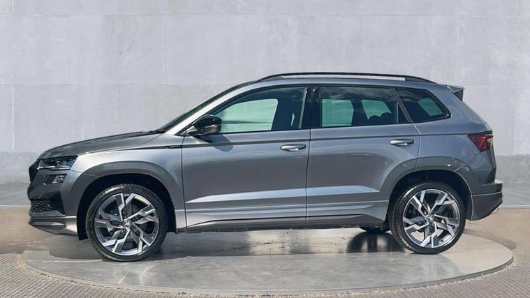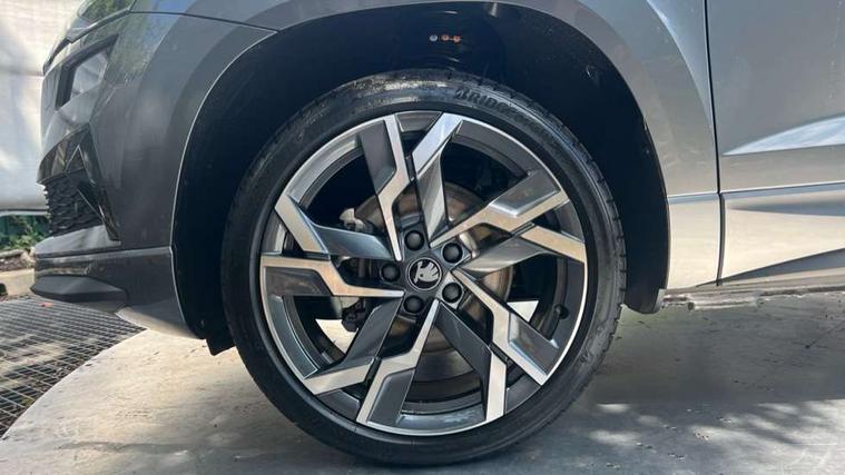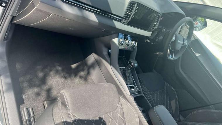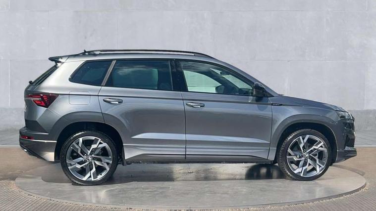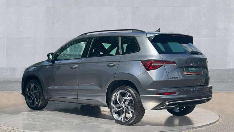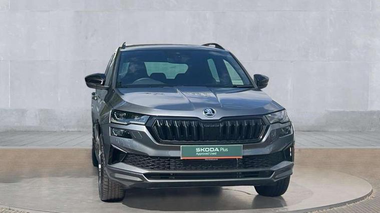 Advanced driver attention and drowsiness monitor, Emergency services call system, Outside temperature gauge, Sensor for driver assistance systems, Service interval indicator, SmartLink wireless for Apple and wired for Android, Start/stop system with regenerative braking, Traffic sign recognition, USB C Port x 2 in front centre console, Virtual Cockpit - 10.25" digital display, Virtual pedal with electrically operated boot door, Wireless smartphone charging, DAB radio with Bluetooth, USB connection, Acoustic glass, Aero front windscreen wipers with intermittent function, Auto dimming rear view mirror with light and rain sensors, Black door mirrors, Black electric window control buttons, Black radiator grille, Black roof rails, Body colour door handles, Electric front and rear windows with child proof lock, Extended rear roof spoiler, Front door steps with SportLine logo, Heated rear windscreen, LED daytime running lights, LED rear lights with high functionality welcome effect and dynamic indicators, Light assistant (coming/leaving home/tunnel light), Panoramic sliding sunroof, Plastic scuff plates in door apertures, Privacy glass, Protective door side sills in body colour, Rear diffuser, Rear side wing doors, Rear window wiper with washer system and intermittent control, Safety reflectors on front doors, Skoda lettering on tailgate in black, Sportline badge on front fender, Sports front and rear bumpers, Third brake light, Unique dark chrome design logo on alloy wheels, 1.5 litre bottle holders in driver and front passenger door panels, 12V socket in boot, 12v socket in front centre armrest with storage compartment and rear air vents, 2 x Tablet holder, 3 rear height adjustable headrests, 3 seat bench in 2nd row, 3 spoke sports leather heated multifunction steering wheel with DSG paddles, 4 foldable roof handles with rear coat hooks, Black floor carpet, Cargo elements in boot, Chrome inner door handles, Foldable hooks in the boot, Front head restraints, Height adjustable front three point seats belts with tensioners, Height/reach adjust steering wheel, Ice scraper, Illuminated glovebox, Illuminated luggage compartment, Isofix child seat preparation for front passenger seat, Isofix child seat preparation outer rear, Manual lumbar support for front seats, Pen holder, Pollen filter, Rear backrest release from boot, Rear boot cover, Rear package tray, Rear reading lights, Rear seats fixed folding and divided 60:40, Rubbish bin door, Safety vest holder, Single front passenger seat, Skoda lettering on steering wheel, Sportline decorative inserts, Storage box in upper central dashboard closed, Sunvisors with illuminated vanity mirrors, Textile floor mats, Ticket holder, Titan black interior ceiling, Umbrella under passenger seat, Under passenger seat storage compartment, Columbus pack - Karoq, LED Interior lighting pack with Skoda welcome logo - Karoq, Light Pack - Karoq, Non Smokers pack, Performance pack - Karoq, Winter plus pack with heated front and rear seats - Karoq, Automatic door unlocking in case of crash, Automatic fuel cut off in case of crash, Driver airbag, Electronic parking brake with auto hold function, Emergency rear braking signal, ESC (incl. ABS+MSR+ASR+EDS+HBA+DSR+RBS+MKB), Front side airbags, Head airbags, Hill hold control, Knee airbags, Passenger airbag with switch-off function, Pedestrian monitor, Seatbelt reminder signalisation and pretensioner for all seats, Three point seatbelts rear, Two tone horn, Tyre pressure monitor, Alarm with interior monitoring, back up horn and tilt sensor with safe function, Electronic engine immobiliser, Keyless entry and start/stop, Remote central locking with 2 remote folding keys, Black air vent surround, Black centre console, carbon door decor, Satin black dashboard, Satin black door trim, 19" Sagittarius anthracite alloy wheels, Anti-theft wheel bolts protection, Breakdown and tool kit,