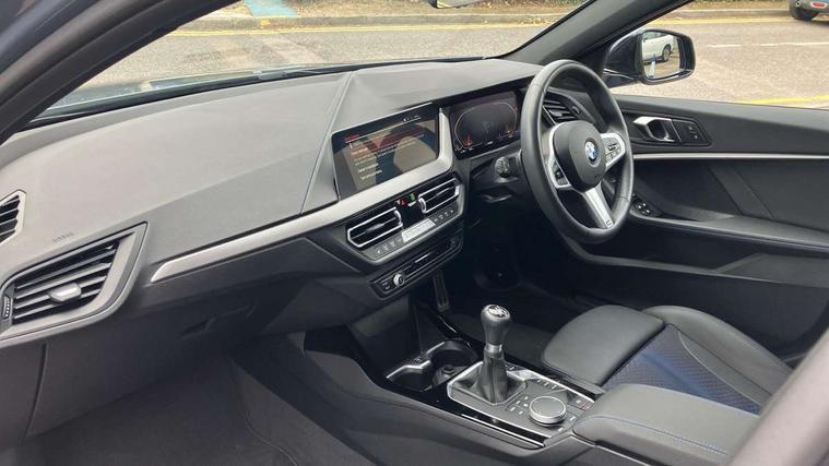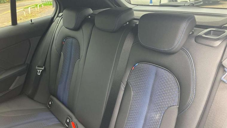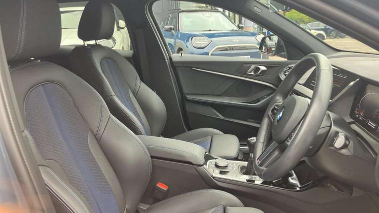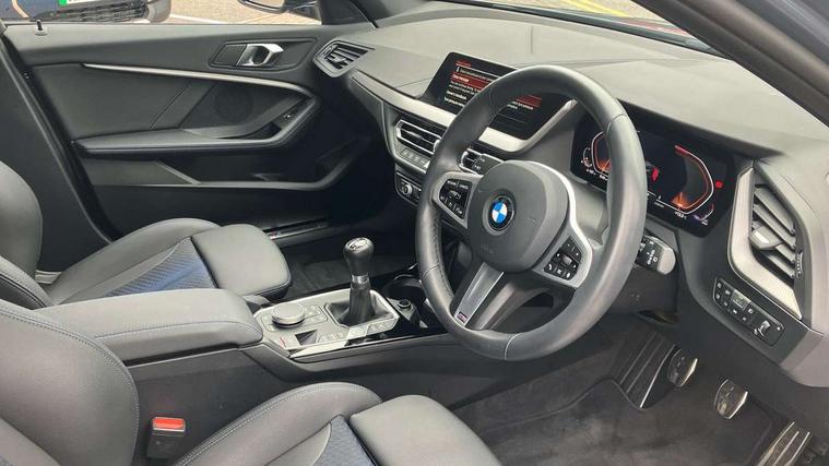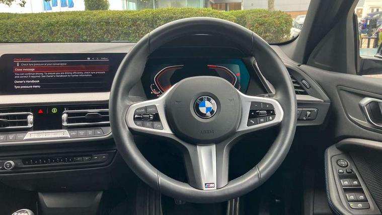 Active guard plus, Attentiveness assist, BMW ConnectedDrive online services, BMW Teleservices, Check Control warning system for monitoring of lights and door/luggage compartment open warning, Cruise control with speed limiter, Eco pro mode, Front axle single joint with specific axle kinematics to minimise drive influences on steering + provide increased rigidity agile driving behaviour, Integrated owners handbook, Lane departure warning system, Oil sensor for level and grade, On board computer, Optimum shift indicator, Personal Profile, Pull away assistant, Rigidly mounted rear subframe - Multi link construction with separate spring / damper configuration and excellent driving characteristics, Speed limit Info including no-overtaking indicator, Aluminium lightweight construction, Anti roll bar front and rear, Balancer shaft, Double VANOS twin scroll turbocharging system, Drive Performance Control, Electronic differential lock, High precision injection, M sport suspension, Petrol Particulate Filter, Twin tube gas filled shock absorbers with degressive characteristic curve, VALVETRONIC engine management, DAB Digital radio, Auto dimming rear view mirror, Automatic headlight beam throw control, Automatic windscreen wipers and automatic headlight, Body colour door handles, Body colour mirror caps, Body colour roof trims, Chrome 'M' logo side designation, Chrome exhaust twin tailpipes round 90mm in left, Chrome kidney grille frame with Satin Aluminium struts, Direction indicator side lights in exterior mirrors, Electrically adjustable exterior mirror with mirror adjustment switch on drivers armrest and aspheric on driver side, convex on passenger side, Fading support, Folding side mirrors with auto dimming/folding wing mirrors with auto dimming, Follow me home headlights, Front and rear bumper system with replaceable deformation elements, Front and rear electric windows with open and close fingertip control, anti trap facility and comfort closing, Front door sill finishers in black plastic with M designation in metallic look, Green tinted heat protection glazing, High gloss shadowline window frame, Recess cover mirror frames and B/C pillar embelisher trim, High level third brake light, Integrated front windscreen with washer jets, LED daytime running lights, LED eyebrow turn indicators, LED front fog lights, Lightweight engineering, Matt black air guide grilles, Matt black wheel arch trim, Model designation on electric bootlid, Nearside reverse light in rear light cluster, Preparation for high beam assistant, Rear fog lights, Rear side wing doors, Rear window wiper, Shark fin antenna, Trailer stabilisation logic, Visible VIN plate, Welcome lighting, 12V power socket in front centre console with blanking plug, 3 rear seat head restraints, 3 seat bench in 2nd row, 3 spoke sports leather steering wheel in black leather with black stitching and decorative finisher in pearl chrome, specific M badge + leather knob, Anthracite headlining, Black boot net with lashing eyes, Cargo function on 2nd seat row, Child seat ISOFIX attachment for two outer rear seats and front passenger seat with anchorage points, Conditioned based service, Driver and front passenger backrest net on rear, Driver and front passenger seat heating, Driver side folding compartment in instrument panel, Folding rear clothes hook, Four grab handles integrated in roof lining, Front and rear door pockets with bottle holders, Front and rear side armrest integrated into door trim, Front armrest, Front sports seats, Gearshift lever with M designation, Glove compartment, Height adjustable front head restraints, Luggage compartment for bag hooks on left and right, foldable luggage compartment liner and four lashing eyelets, Manual adjust steering wheel, Multi-function controls for steering wheel, Single front passenger seat, Storage compartment in centre console, Storage compartment in luggage compartment, Stowage of the parcel shelf in luggage compartment trim, Sun visors with vanity mirrors and insert tab, Two front centre console cupholders, Two zone automatic air conditioning, Type C two USB ports in rear centre console, Velour floor mats, Additional interior lighting pack - 1 Series, BMW live cockpit professional pack- 1 Series, Connected pack professional - 1 Series, Interior lights pack - 1 Series, M Sport exterior styling aerodynamics pack - 1 Series, 2 tone horn, 3 point seatbelts on all seats, front pyrotechnic belt tensioners, stopper and belt force limiters, rear coded belt buckles, Airbags - Front driver/passenger, front and rear curtain head protection, front side, manual deactivation of front passenger airbag, Anti lock braking system (ABS) with brake assist, BMW emergency call, Brake drying, Braking readiness, Child proof locking system in rear door, City braking function, Comfort modes, Cornering brake control, Crash sensor activating of airbags, Unlocking doors, hazard warning lights, interior light, safety battery terminal, Driver and front passenger seat belt security check, Dynamic stability control + (DSC+), Dynamic Traction Control - DTC, Electrically operated hand brake, Front and rear disc brakes, Seatbelt warning, Side impact protection, Tyre pressure monitoring system, Warning triangle and first aid kit, Central locking switch for all doors, fuel filler cap and luggage compartment, Deadlocking function system to all doors, Drive away locking system on all doors and luggage compartment with de-activated in iDrive settings, Locking wheel bolts, Remote control with integrated key with High-gloss Black inlay and M designation and 1 button for open/ close lock, window, open luggage compartment, Start/stop button illuminated in centre console with keyless engine start and auto start stop deactivation button, Thatcham Cat.1 alarm and immobiliser, Wheel slip limitation close to the actuator (ARB), Contrast stitching on instrument panel, 18" Burnished M double spoke bi-colour alloy wheels finished in orbit grey - style 819M