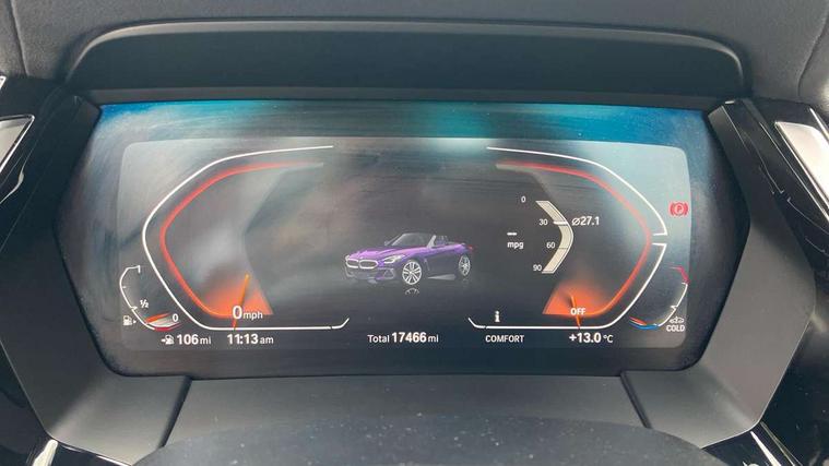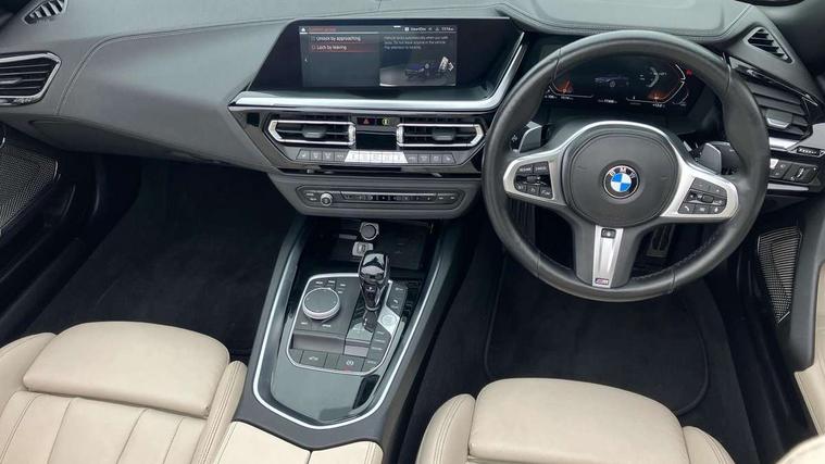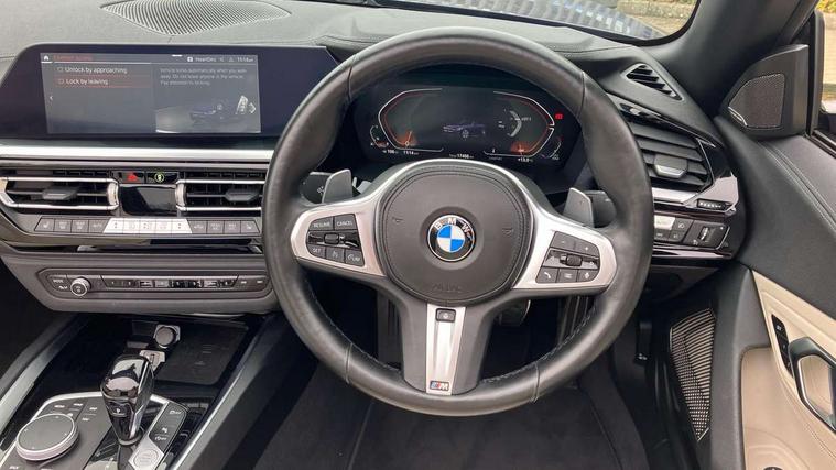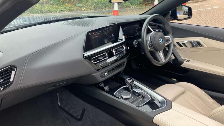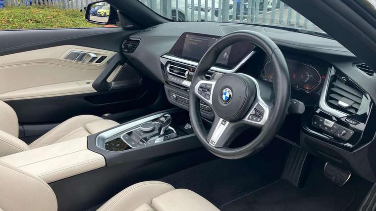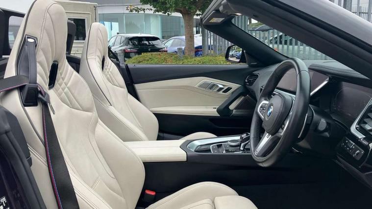 Active guard plus incl speed limit assist, lane departure warning with steering impulse and front collision warning with brake intervention, BMW ConnectedDrive online services, BMW Live Cockpit Professional with nav function/12.3" high resolution instrument +10.25" control display/Intelligent Voice Assist/2 USB/WiFi interface, BMW Teleservices, Condition based service, Electric power steering, Fuel gauge, iDrive touch controller with turn and press function, Instrument cluster, Language version English, Oil sensor for level and grade, warning by check control system, Oil temperature gauge, Optimum shift indicator, Pull away assistant, Run flat indicator, Speed limiter, Speedometer with mph readout, Tachometer, Variable sport steering, Double joint spring, Double VANOS, Drive performance control with ECO PRO comfort + sport mode, Eight speed steptronic sport transmission, with gearshift paddles, Electronic differential lock, Fuel tank breather system, High precision injection, M sport suspension, 2x USB Type C ports in front centre console for charging and data transfer, 2x USB Type C ports in rear centre console for charging, DAB tuner, USB connection, Automatic headlight beam throw control with load dependent regulating reaction, dynamic compensation of braking dive and acceleration squat, Door sill finishers with M designation, Door sill strips, Dynamic braking lights comprising activated hazard warning flashers, Electric folding door mirrors, Electric heated rear window, Exhaust tailpipe - split left and right, Exterior mirror housing finished in body colour, Fingertip control / anti-trap function on electric window, Follow me home headlight function, Front and rear bumper system with replaceable deformation elements, Green tinted heat protection glazing, Heated windscreen washer jets, High gloss black exterior trim, Interior rear view electrochromatic mirror with automatic anti dazzle function, Kidney grille in mesh design, LED 3rd brake light, LED daytime driving lights, LED Indicators, LED rear lights, Lightweight engineering, M aerodynamic body kit, M Sport exterior styling, Matt black window recess finisher, Model logo, Rain sensor, Rear boot, Reversing light, Tailgate release handle, Two stage brake force display, Visible VIN plate, Welcome lighting, Wind deflector, Windscreen wipers with adjustable interval, 12V power point in luggage area, 12V power socket in front storage compartment, 2 cup holders in front centre console, Activation of interior lighting, Additional storage compartment - 4 lashing eyes, strap and storage net, Ambient lighting, Battery in luggage compartment, BMW ID, Child seat ISOFIX attachments for passenger seat, Driver and front passenger heated seats, Front and rear armrests integrated in door trim + centre console includes storage compartment and rear centre armrest includes 2 cupholders, Front and rear velour floor mats, Front headrests, Height adjustable mechanically and infinitely variable steering column, Illuminated glovebox, Luggage compartment light, M sport leather steering wheel, M Sport seats for driver and passenger, Microfilter and active carbon filter, Multifunction steering wheel, Single front passenger seat, Sunvisors with vanity mirrors and ticket pocket, Through load system, Two zone automatic air conditioning, Vernasca leather upholstery, Connected package professional - Z4, 3 point front seat belts, Airbags - Front driver and passenger, front and side impact protection, Anti lock braking system (ABS) with brake assist, Automatic Stability Control (ASC), BMW emergency call, Brake energy regeneration, Braking readiness, Cornering brake control (CBC), Crash sensor activating central locking release, hazard warning lights, fuel cut off, interior lighting, safety battery terminal clamp and airbags, Curtain airbags, Deactivation of fuel pump in the event of a crash, Dry braking, Dynamic brake control, Dynamic stability control + (DSC+), Dynamic Traction Control - DTC, Electromechanical parking brake with automatic drive away release and auto hold function, Front and rear brake discs with interior ventilation, Head airbags, Plastic fuel tank, Pyrotechnic seat belt tensioners, Roll over protection, Seat belt force limiter, Seat belt stopper, Seat occupancy protection, Side airbags for driver and passenger, Two tone horn, Tyre pressure monitoring with three level warning strategy, Warning triangle, Centre lock switch, Closing system with central locking, Electronic vehicle immobiliser, Start/stop button with Comfort Go keyless engine start and auto Start/stop deactivation button, Thatcham cat 1 remote alarm, Sensatec dashboard, 18" Double spoke alloy wheels in bicolour ferric grey - style 798M, Reduced rolling resistance tyres, Tool kit, Tyre repair kit,