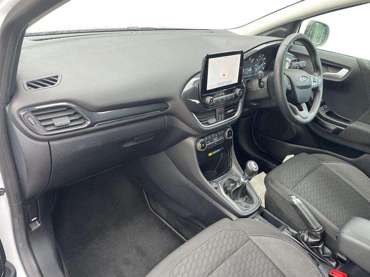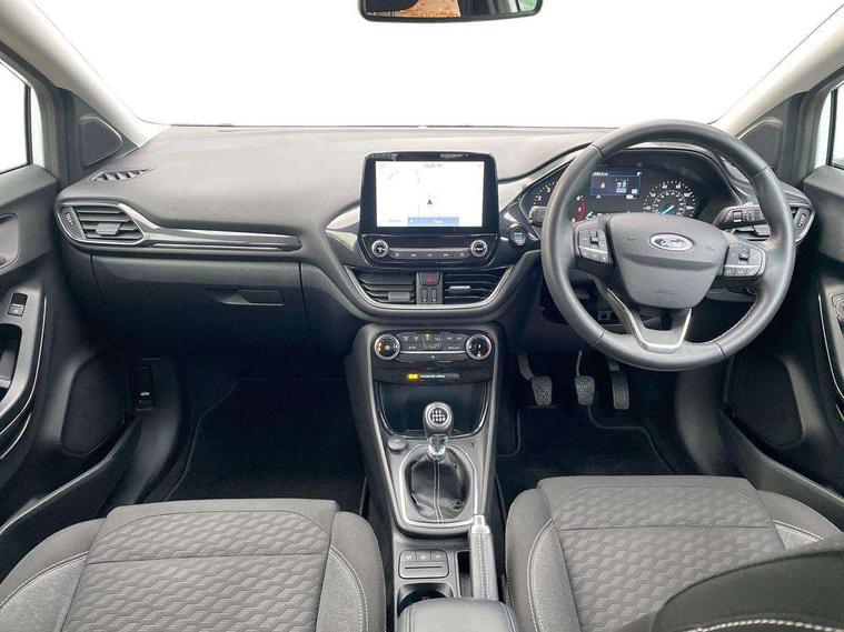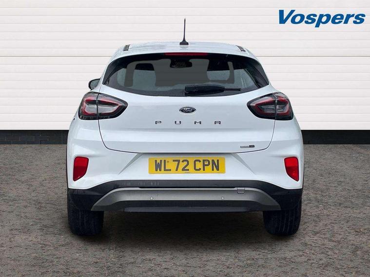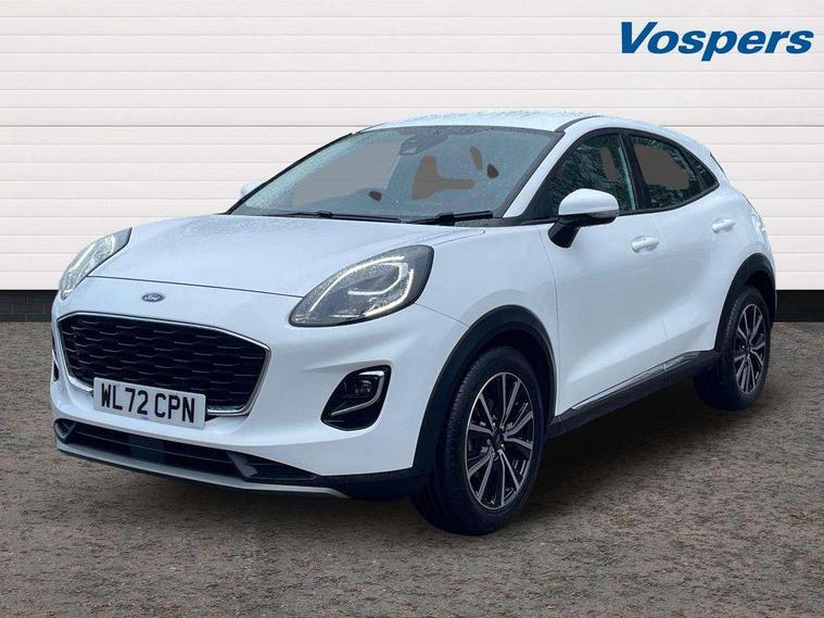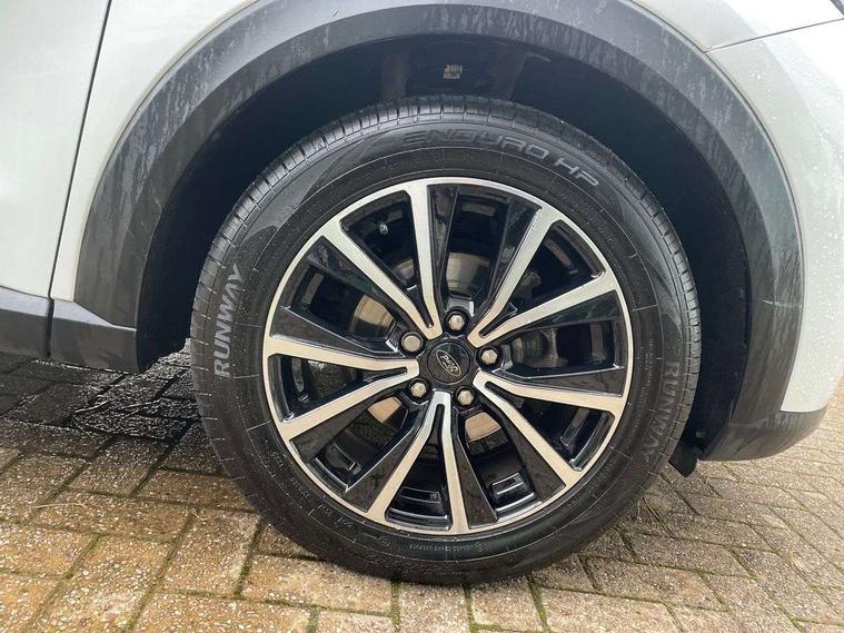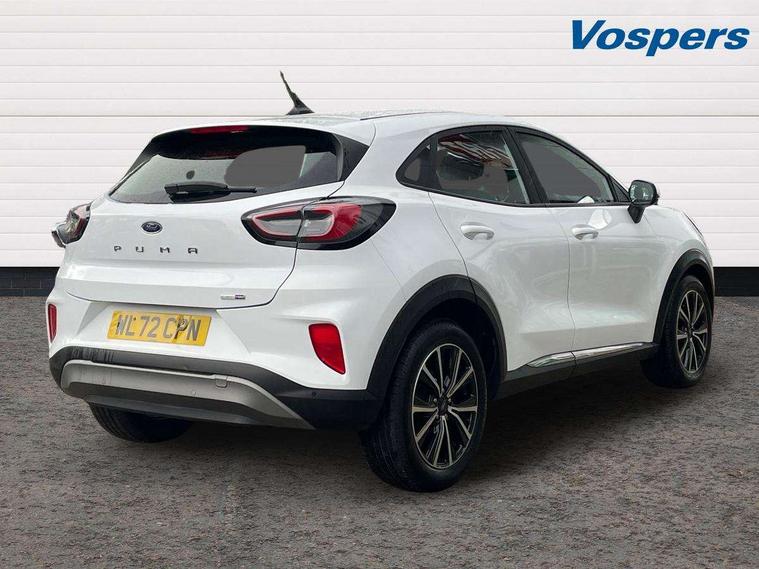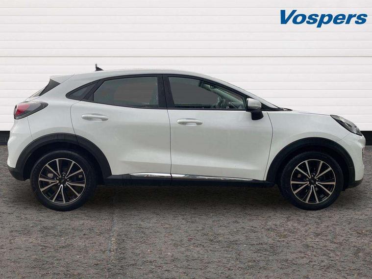 Driver impairment monitor, Emergency call service, Ford easy fuel, Lane keeping aid with lane departure warning, Power assist steering, Power start button, Rear parking sensor, Selectable drive modes(Normal, sport, Eco, trail, slippery), Speed sign recognition, Standard suspension, Automatic headlights with auto high beam, Automatic rain sensing wipers, Body colour rear spoiler, LED rear lamps, Power foldable heated door mirrors with puddle lamps, Projector headlamps with LED day time running lights and front fog lamps, Quickclear heated windscreen, Rear side wing doors, Rear wiper, Third brake light, 3 seat bench in 2nd row, Centre console with armrest and stowage, Electronic automatic temperature control (EATC), Ford megabox extended bootspace, Front and rear head restraints, Front floor mats, Manual 2 way passenger seat adjustment, Manual 4 way driver seat adjust with lumbar adjustment, Sensico leather steering wheel/gear knob/handbrake, Single front passenger seat, Titanium cloth upholstery, Ford SYNC 3 navigation pack - Puma, 3 rear seatbelts, Child safety lock, Electronic stability control (ESC) and hill start assist, Pedestrian/cyclist detection & post-collision braking, Pre collision assist system, Tyre pressure monitoring system (TPMS), Thatcham alarm, 17" 10 spoke absolute black machined finish alloy wheel,