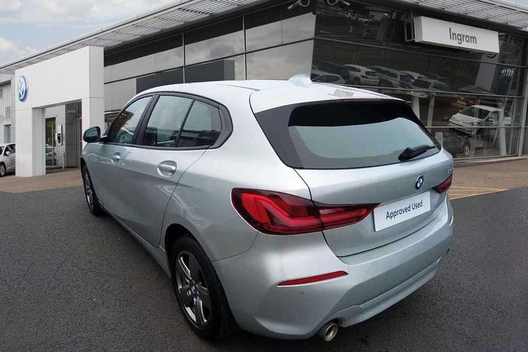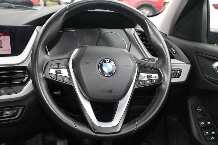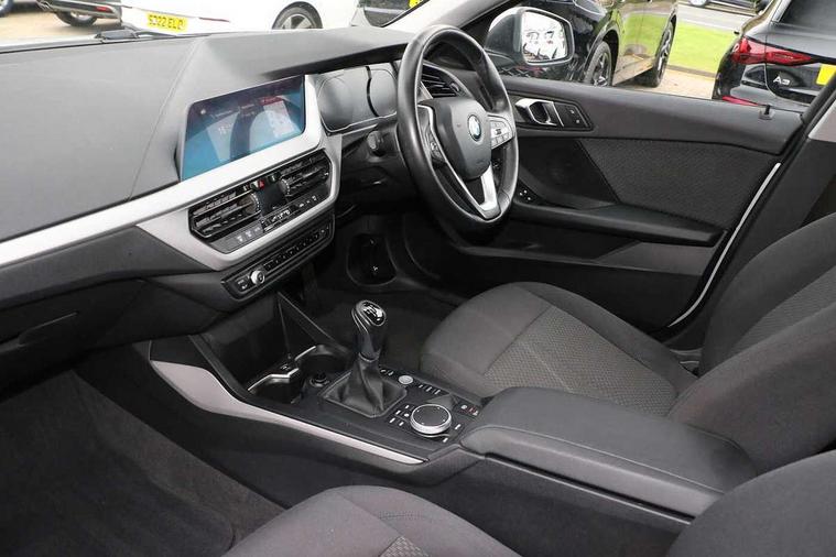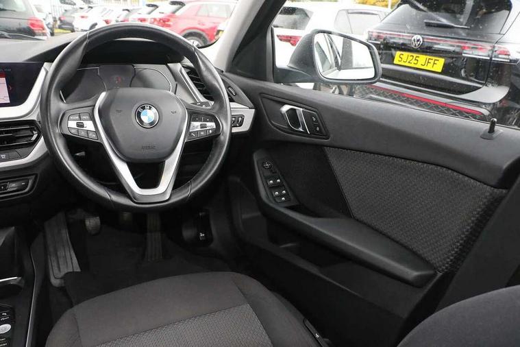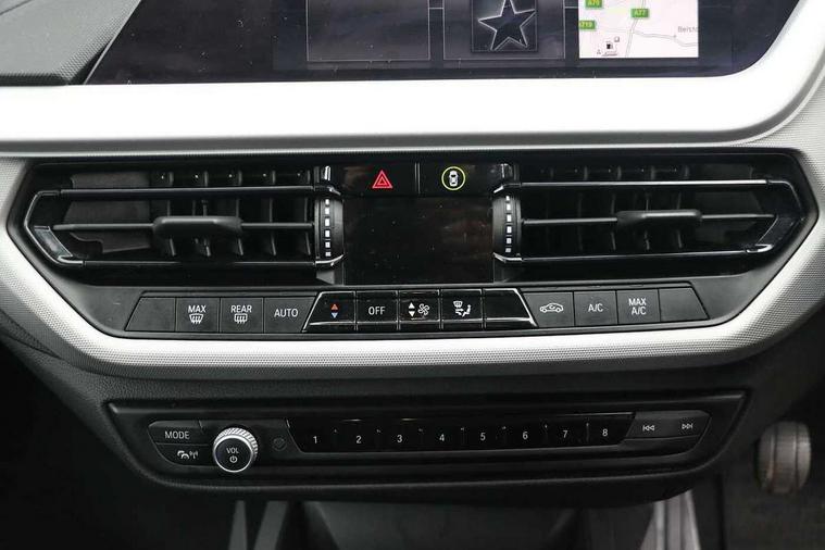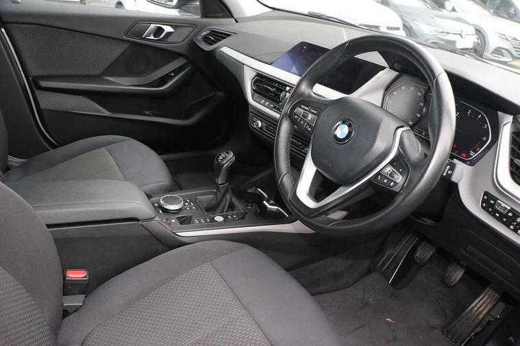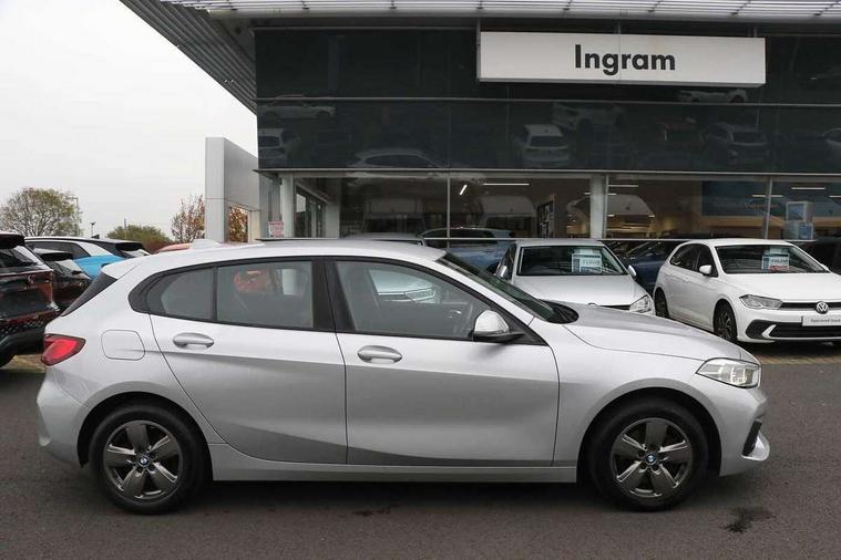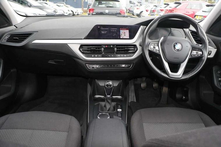 Active guard plus, Attentiveness assist, BMW Online services, BMW Teleservices, Check Control warning system for monitoring of lights and door/luggage compartment open warning, Connected eDrive Services, Cruise control with brake assist, Eco pro mode, Electric power steering, Integrated owners handbook, Lane departure warning system, On board computer, Optimum shift indicator, Personal Profile, Pull away assistant, Speed limiter, Anti roll bar front and rear, Balancer shaft, Double VANOS, Drive Performance Control, Electronic differential lock, Petrol Particulate Filter, VALVETRONIC engine management, Bluetooth audio streaming, DAB Digital radio, Auto dimming rear view mirror, Body colour door handles, Body colour front and rear bumpers, Body colour mirror caps, Chrome exhaust tailpipe in single, round (Exhaust tailpipe, stainless steel - single, round), Chrome kidney grille with extra wide black, high gloss black vertical slats, Direction indicator side lights in exterior mirrors, Fading support, Follow me home headlights, Front and rear bumper system with replaceable deformation elements, Front and rear electric windows with open and close fingertip control, anti trap facility and comfort closing, Front door sill finishers in black plastic with BMW designation, Green tinted heat protection glazing, Headlight beam throw control, Heated, electrically adjustable exterior mirror aspheric on driver side, convex on passenger side, High level third brake light, LED daytime running lights, LED front fog lights, Lightweight engineering, Matt black air guide grilles, Matt black roof moulding, B pillar finisher and wheel arch trim, Matt black window frame, Model designation on right side of tailgate, Nearside reverse light in rear light cluster, Rain sensor including auto headlights activation, Rear fog lights, Rear window wiper, Shark fin antenna, Visible VIN plate, Welcome lighting, Windscreen wipers with integrated washing jets, 12V power socket in centre console, 2 cupholders in front centre console, 3 rear seat head restraints, 3 spoke sports leather steering wheel in pearl Chrome, Automatic single zone air conditioning, Child seat ISOFIX attachment for two outer rear seats and front passenger seat with anchorage points, Conditioned based service, Driver side folding compartment in instrument panel, Folding rear clothes hook, Folding rear seats, Four grab handles integrated in roof lining, Front and rear door pockets, Front and rear side armrest integrated into door trim, Front armrest foldable with integrated storage compartment, Glove compartment, Height adjustable front head restraints, Manual adjust steering wheel, Multi-function controls for steering wheel, Rear seat backrest with manual 60:40 split folding with 3 top tether clips integrated on rear of seat panels, Storage compartment in centre console, Sun visors with vanity mirrors and insert tab, Velour floor mats, Extended storage pack - 1 Series, Interior lights pack - 1 Series, 2 tone horn, 3 point seatbelts on all seats, front pyrotechnic belt tensioners, stopper and belt force limiters, rear coded belt buckles, Airbags - Front driver and passenger, front and rear head, front side, curtain head protection, Anti lock braking system (ABS) with brake assist, BMW emergency call, Brake drying, Braking readiness, City braking function, Crash sensor activating central locking release, hazard warning lights, fuel cut off, interior lighting + activation of safety battery terminal clamp, Driver and front passenger seat belt security check, Dynamic stability control + (DSC+), Dynamic Traction Control - DTC, Electrically operated hand brake, Front passenger manual airbag deactivation, Rear child proof door locks, Seatbelt warning, Side impact protection, Tyre pressure monitoring system, Warning triangle and first aid kit, Automatic drive away locking facility, Central locking switch for all doors, fuel filler cap and luggage compartment, Deadlocking function system to all doors, Locking wheel bolts, Remote central locking with two Integrate key, one button for opening and closing all lock, open and close window, button for open luggage compartment, Start/stop button with comfort go keyless engine start and auto start stop deactivation button, Thatcham Cat.1 alarm and immobiliser, Quartz Silver matt interior trim, Reduced rolling resistance tyres,