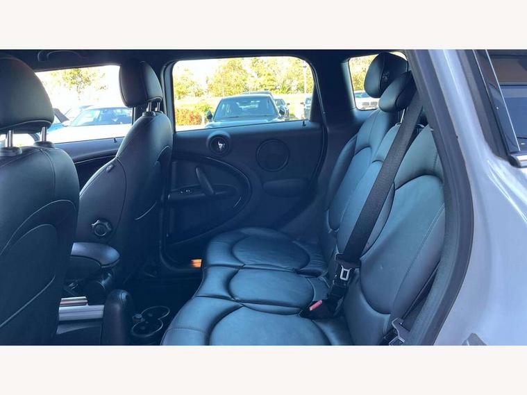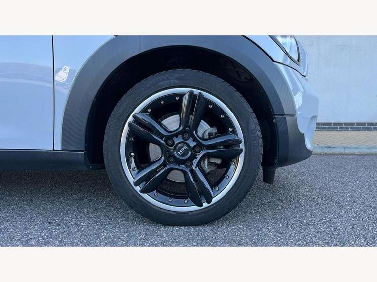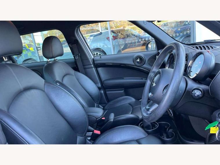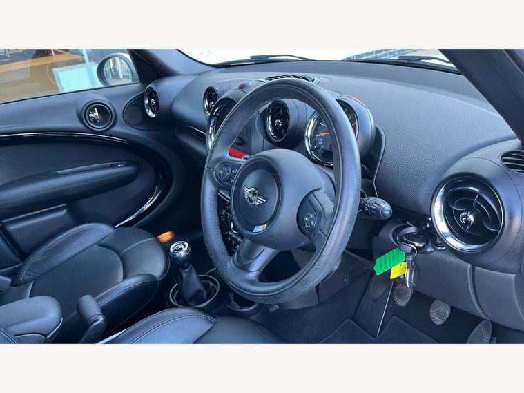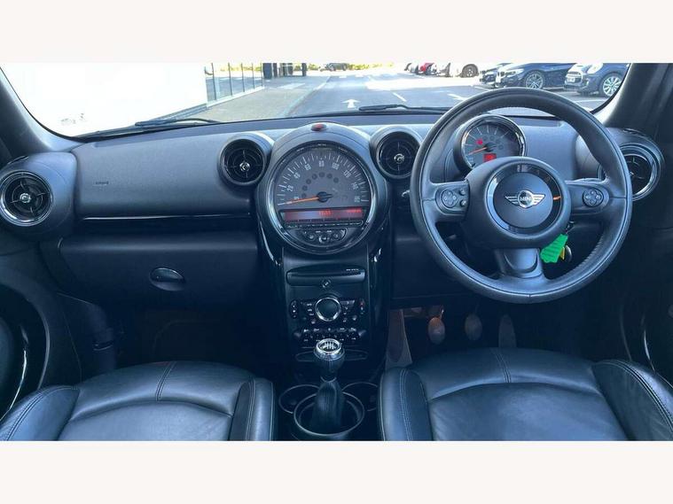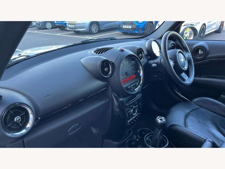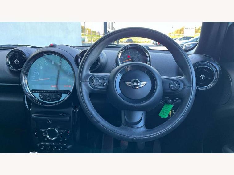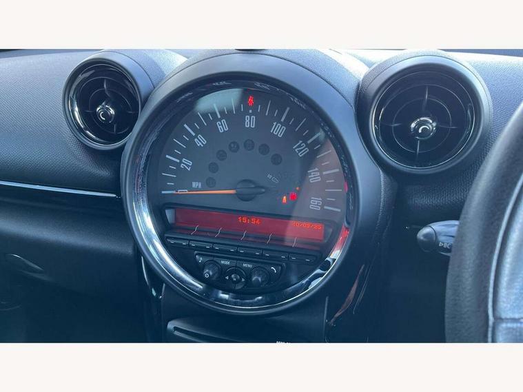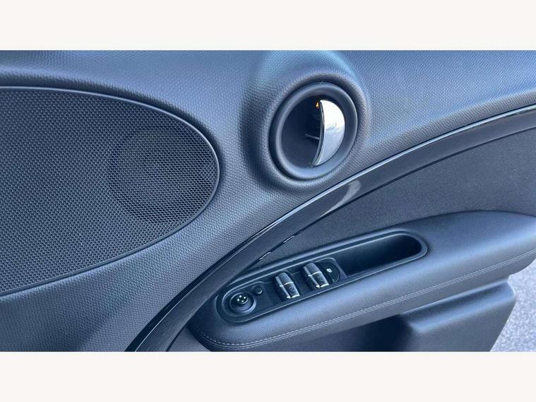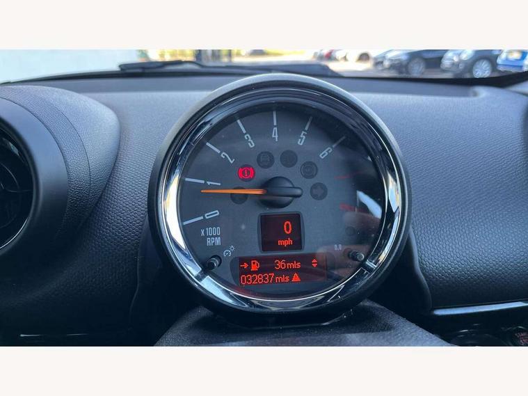 Brake fluid level warning light, Brake pad wear indicator warning light, Electric power steering, Engine start/stop button, Exterior temperature gauge, Oil level indicator, Rear park distance control, Run flat indicator, Service interval indicator, Auxiliary input socket, DAB Digital radio, Radio BOOST + single slot CD, Anti dazzle mirror, Bike rack preparation, Body colour bumpers, Chrome door handles, Chrome exhaust tailpipe, Chrome plated trim on bottom edge of window, Chrome-plated radiator grille surround, Electric front and rear windows + anti trap + one touch, Electrically adjustable door mirrors, Follow me home headlights, Heated door mirrors/heated windscreen washers, Heated rear window with automatic switch off, High gloss piano black bezels around rear lights and headlights, LED daytime running lights, LED front fog lights, Metal look door sill finishers, Radiator grille in silver, Rear wiper, Silver roof rails, White indicator lights, 2 cupholders in front centre console, 3 rear seats, 4 lashing points to secure luggage, 60/40 split sliding rear seats, Adjustable headrests, Boot light, Centre console storage, Chrome air vent knobs, Chrome interior door handles, Driver's seat height adjuster, Driver/passenger sunvisors, Front reading lights, Front seat backrest storage nets, Gear knob with chrome ring, Gear/selector and handbrake in artificial leather, Height/reach adjustable steering column, Interior light, Interior world - Carbon black, Isofix child seat preparation, MINI centre rail, Passenger seat height adjuster, Rear grab handles, Side sunvisor for driver, Storage compartments in doors, Vanity mirrors, 3x3 point rear seatbelts, ABS, Automatic Stability Control (ASC), Cornering brake control (CBC), Crash Sensor - activates hazard/interior lighting + unlocks doors, Driver and passenger airbags, Driver and passenger side airbags, DSC - Dynamic Stability Control, Electronic brake force distribution, Front head airbags, Front seatbelt pretensioners with force limiters, Hill start assist, Passenger airbag deactivation system, Tyre pressure warning, Automatic door locking, Electronic immobiliser, Locking wheel bolts, Remote central locking + boot release, Second remote key, Thatcham Cat.1 alarm,