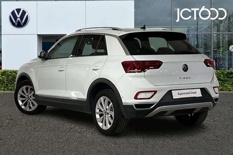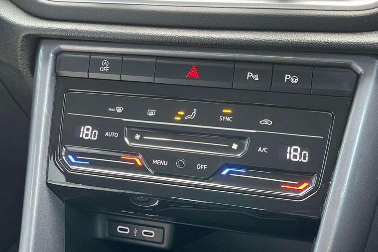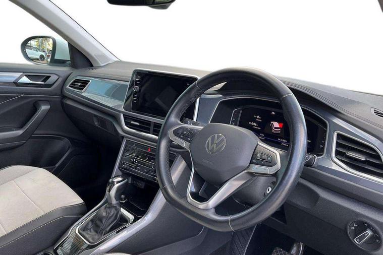 10.25" Digital cockpit pro, Bluetooth mobile phone interface, Driver alert system with fatigue detection, Driver tips and journey analysis, Emergency call service, Lane keeping system Lane Assist, Modified key software - reduce switch off time for key status change to Long no motion, Online services, Park assist including front and rear parking sensors, Service interval indicator, Tailgate/trunk lid release from outside, Think blue trainer driver tips and journey analysis, Warning sound and light for front seatbelts unfastened, Wireless app connect, Battery regeneration during braking, Start/stop function with battery regeneration, Diversity antenna for FM reception, Front and rear 6 speakers, Music playback - MP3, WMA and AAC files, Premium USB cable in choice of either Apple or Android smartphone compatibility, SD card slot, Simultaneous pairing of 2 compatible mobile devices, Title and cover art display, We Connect and We Connect Plus functionality, 3rd brake light, Auto dimming interior rear view mirror, Automatic hazard lights activation under emergency braking, Automatic headlight control with LED separate daytime running lights with coming/leaving home function, Body colour sports bumpers with silver metallic underbody fascia, Dynamic headlight range control with self adjusting whilst driving, Extended roof spoiler, Exterior mirrors aspherical on driver side, convex on front passenger side, External USB type C socket and charging sockets, Front windscreen wiper with intermittent wipe and 4 position delay, Heated rear window, LED Plus headlamps, LED rear combination lamps, LED rear number plate lights, LED tail lamp rear comination lamps, Light mode for poor weather, rain, fog or snow, Power windows with comfort operation and circuit breaker, Rain sensor, Rear exhaust tailpipe, Rear fog light on one side and reversing lights on both sides, Rear side wing doors, Rear wash/wipe with intermittent wipe setting, Remote electrically foldable door mirrors, puddle lights and reverse activated passenger's door mirror, 12V power socket in centre console, 3 rear head restraints, 3 seat bench in 2nd row, 4 load lashing points in luggage compartment, Air care climatronic air conditoning system with active combination filter and 2-zone temperature control, Chrome plated radiator grille inserts, air vent surrounds and light switch surrounds, Door and side trim panel with leatherette insert, Drawer under drivers seat, Front + rear carpet mats, Front centre armrest, Front comfort sports seats, Front cupholders x 2, Front footwell illumination, Instrument lighting, white adjustable panel illumination, Interior ambient lighting and surround lighting, Interior light delay, Isofix child seat preparation, Leather gearshift handle, LED interior light with switch off delay/dimmer and 2 front/rear LED reading lights, Load-through provision with cup holder when folded down ('Unsplit rear seat bench, split folding backrest, with centre armrest), Luggage compartment lighting, Non-folding front passenger seat backrest, Single front passenger seat, Storage compartment in left and right luggage area, Storage compartment in rear doors, Storage compartments in driver and front passenger doors, Sunvisors with illuminated vanity mirrors, Variable boot floor, height adjustable and removable, Driver assistance pack without proactive passenger protection - T-Roc, 3 point height adj front seatbelts + pretensioners, 3 point seatbelts in outer rear with ECE label, ABS, Child locks on rear doors, Driver and front passenger airbag with front passenger airbag deactivation, Driver and front passenger safety-optimised head restraints, Drivers seatbelt reminder, Electronic parking brake, Electronic Stability Control (ESC) inc EDL (Electronic Differential Lock) and ASR (Traction Control), Front and rear passengers curtain airbag system including front side airbags, Front assist with city emergency braking and pedestrian monitoring, Front seat side impact airbags, Predictive pedestrian protection, Rear disc brakes, Single tone horn, Tyre pressure loss indicator, Volkswagen roadside assistance, Alarm with interior protection, Anti-theft alarm system with interior monitoring, backup horn, and towing protection, Remote central locking with SAFELOCK, radio remote control with 2 remote control folding keys, Trims for alloy wheels,