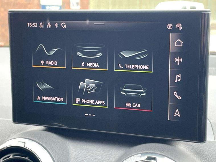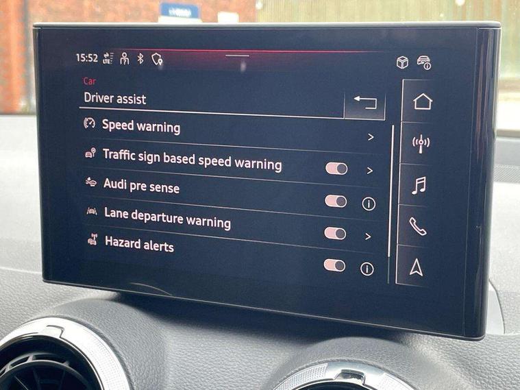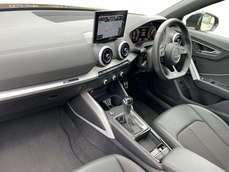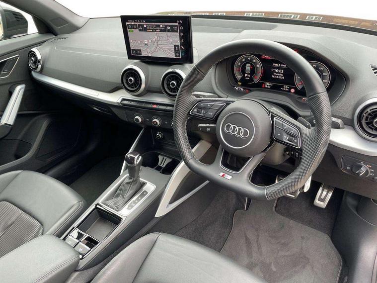 3D map display, Audi connect navigation and infotainment includes innovative services, Audi connect remote and control connects your vehicle to your smartphone, Audi drive select: S tronic - power steering assistance + engine + gearshift (modes: comfort, auto, dynamic, efficiency, individual), Audi smartphone interface - Apple carplay/Android Auto, USB connect, 2xSDXC card readers, voice control for navi, telephone, music and 3rd party apps, Audi virtual cockpit, Automatic start/stop system with recuperation, Bluetooth interface includes bluetooth audio streaming, Camera based traffic sign recognition, Cruise control, Distraction and Fatigue warning, E-call, Jukebox hard drive memory for music (10GB), Lane departure warning, MMI navigation plus with 8.8" touchscreen, Natural voice recognition, Power operated tailgate, Progressive steering, Rear parking sensors, Sport suspension, 6 passive loudspeakers, DAB Digital radio, USB type C port, Audi beam, Auto dimming rear view mirror, Black window trims, Bumper in full body colour paint finish, Electrically adjustable, folding, auto dimming and heated door mirrors with integrated LED side indicators, Front windscreen with grey tinted sunband, LED daytime running lights, LED headlights with dipped beam, high beam, position lights, indicators, LED rear lights, LED third brake light, Privacy glass - dark tinted rear and rear side windows from B-pillar backwards, Rear side wing doors, Rear wiper, Variable front intermittent wipers, Wheel arch trims in manhattan grey, 12v socket in front, 3 seat bench in 2nd row, 3 spoke flat bottomed multi-function leather sport steering wheel with gear shift paddles, 4-way electric lumbar support for front seats including manual seat height adjustment for both front seats, 60/40 split folding rear seat bench, Black carpets, Black cloth headlining, Front and rear head restraints, Front centre armrest, Front sport seats, Front/rear floor mats, Height/reach adjust steering wheel, Illuminated door sill trims with S logo, ISOFIX child seat mounting in front passenger and rear outer seats, Manual air conditioning, Single front passenger seat, Stainless steel pedals, Black styling pack - Q2, 3x3 point rear seatbelts, 6 airbags - Front, curtain and front side airbags, Electromechanical parking brake, Electronic stabilisation control including ABS, ASR and EDL, Front passenger airbag deactivation, Hill hold assist, Pre-sense front with pedestrian recognition, Seatbelt monitoring, Tyre pressure warning light with visual and acoustic warning, Warning triangle and first aid kit, Anti theft alarm, Anti theft wheel bolts, Electronically operated child locks, Remote central door locking, Aluminium interior element, Black dashboard, Gloss black centre console, Matt brushed aluminium trim inlays, Tool kit,
