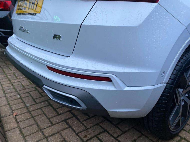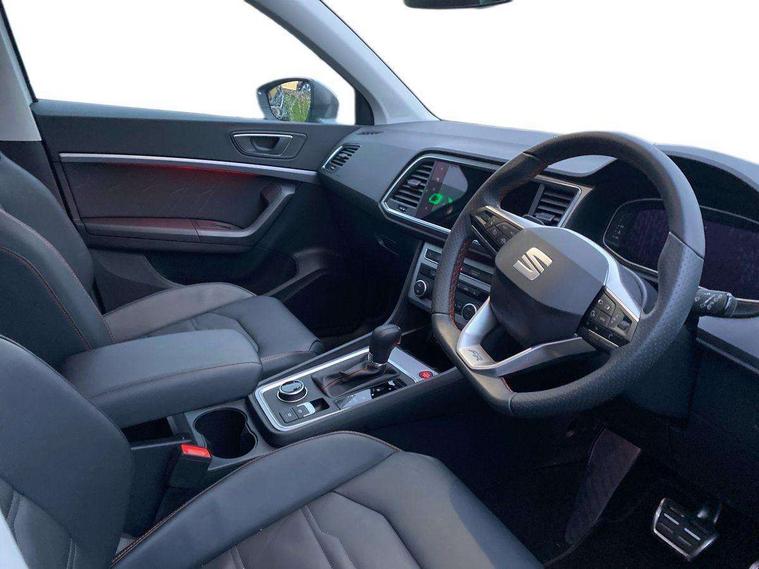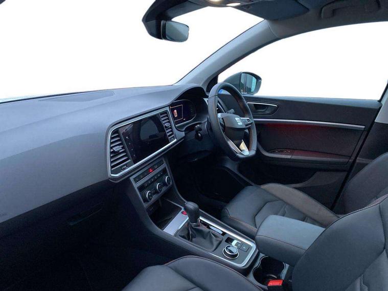 10" Digital cockpit, Cruise control system with speed limiter, E-call, Outside temperature gauge, Progressive power assisted steering, SEAT drive profile with driving experience button - Normal, Sport, Eco and Individual mode, gearshift, steering and throttle response, Self parking functionality (includes front and rear parking sensors), Start/stop system, Tailgate, Trip computer, wired and wireless full link smartphone integration, Wireless phone charger, Steering wheel mounted audio/phone controls, Black roof rails, Black side window trim, Body colour bumpers, Body coloured wheel arch surrounds, Chrome front grille frame, Dark tinted rear windows, Daytime running lights, Door mirrors with welcome light silhouette, Dynamic headlight range control with self adjusting whilst driving, Electric adjustable/heated/folding door mirrors, Front and rear electric windows, Full LED headlamps with lens and LED front fog lamps with cornering function, Illuminated aluminium front door sill, LED 3rd brake light, LED rear tail lights with dynamic indicators, Rear exhaust tailpipe, Rear fog lights, Rear side wing doors, Rear spoiler, Rear wash/wipe, Variable front intermittent wipers, 12v socket in front, 3 seat bench in 2nd row, 60/40 split folding rear seat, Aluminium pedals, Dual zone climate control, Electric adjustable driver seat with memory function, Front and rear head restraints, Front centre armrest, Front seat back storage pockets, Heated front seats, Height adjustable passenger seats with lumbar adjustment, ISOFIX points in outer rear seats with top tether anchorage points, Leather sports steering wheel and gear knob, Leather upholstery with front comfort seats, Manual lumbar support on driver seat, Rear armrest and easy back seat release mechanism from boot, Single front passenger seat, Steering wheel mounted gearshift paddles, Convenience pack - Ateca, Interior lighting pack - Ateca, Navigation system pack with DAB - Ateca, Safety and driving pack with attention and drowsiness assist - Ateca, 3x3 point rear seatbelts, ABS, Traction control system (TCS), Electronic stability control (ESC) and Electronic differential lock system (XDS), Airbags - Driver and front passenger airbag with deactivation, front side, two curtain and driver's knee airbags, Electric parking brake with auto hold function, Front and rear seatbelt reminder, Front assist with autonomous emergency braking, Hill hold control, Manual rear child locks, Single tone horn, Tiredness recognition system, Tyre pressure monitoring system, Alarm, Keyless entry, Locking wheel bolts, Remote central locking, Chrome interior detailing, 19" Exclusive machined alloy wheels with decorative inserts 36/7 in cosmo grey,