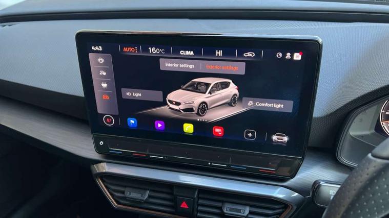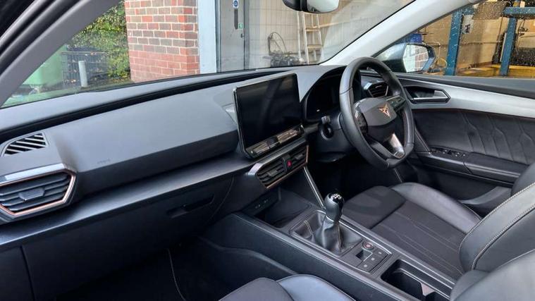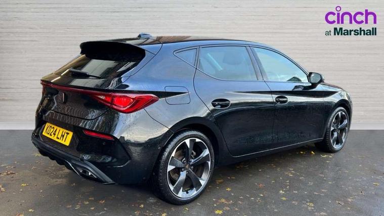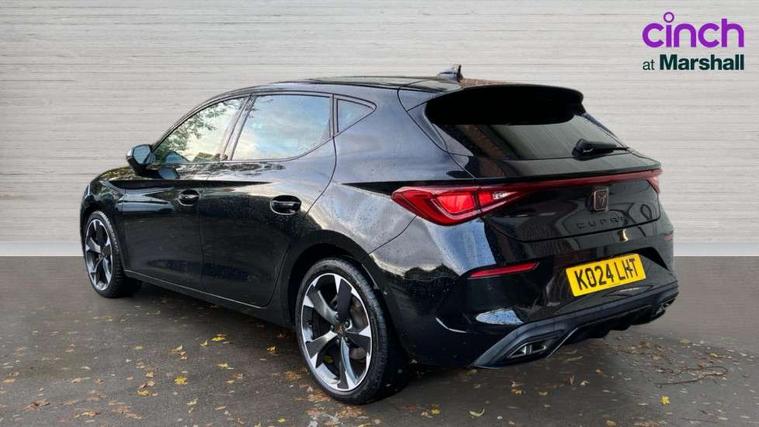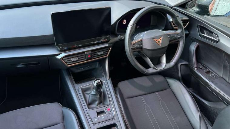 CUPRA drive profile selection with (Comfort/Sport/Individual), throttle response and gearshift mode, Digital cockpit, E-call, Electro mechanical speed sensitive power steering, Four x USB Type C ports (2 in front and 2 in rear), Front assist with forward collision warning braking reaction to vehicles, pedestrians and cyclists, Full link smartphone integration with Mirror Link, wireless Apple CarPlay and wired Google Android Auto, Lane assist, Lockable tailgate, Park assist (inc front/rear parking sensors), Rear view camera, RPM, trip computer, outside temp gauge, instrument light brightness, low fuel warning light, lights on reminder, gearshift indicator, Service interval indicator, Start/stop system with regenerative braking, Wireless phone charger, Sports suspension, Auxiliary input socket, Auto dimming rear view mirror, Body colour door handles, Body coloured bumpers, Cupra sports bumpers, Dark tinted rear windows, Electric front/rear windows, Electrically adjustable, heated and folding door mirrors, LED front fog lamps with cornering function, LED headlights with dynamic turn signals, tail lights, rear fog lights with rear coast to coast lighting, Rain sensing wipers, Rear diffuser with twin exhaust pipe on each side, Rear side wing doors, Rear wash/wipe, Separate daytime running light with automatic headlight control and coming home feature, Third brake light, 12v power supply in centre console, 3 seat bench in 2nd row, 5 headrests, 60/40 split rear bench seat with armrest, Ambient lighting with glovebox, footwell and single monocolour, Cupra Leather flat bottomed, perforated steering wheel, Driver/passenger manual seat height adjustment, Folding boot cover, Front and rear reading lights X 4, Front centre armrest, Front seats manual lumbar adjustment, Grey headlining, Height/reach adjust steering wheel, Illuminated interior front door sills, ISOFIX points in outer rear seats with top tether anchorage points, Jack and tool kit, PVC/Cloth upholstery with copper stitching, Single front passenger seat, Sports seats, Sunvisors with illuminated mirror, Three zone climate control, Media system plus with navigation pack - Leon Cupra, Safety and driving pack (M) - Cupra leon, 3 point seatbelts on all rear seats, ABS, Brake control system - ESC and brake booster, Child proof door locks, Cupra black brake calipers, Driver and front passenger airbags with front passenger airbag de-activation, front side and curtain airbags, Electronic parking brake, Extended safety system - seat belt tensioner, window closure and hazard lights, Hill hold control, Rear disc brakes, Seat belt reminder for front and rear seats, Tiredness recognition system, Tyre pressure monitoring system, Anti theft alarm system with interior monitoring in cab, backup horn and towing protection, KESSY Advanced - Keyless start, keyless entry, Locking wheel bolts, Chrome and copper interior detailing, 18" Machined sport black and silver alloy wheels with 92Y tyres,