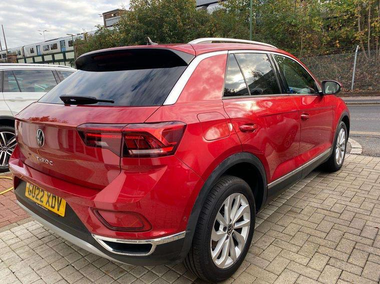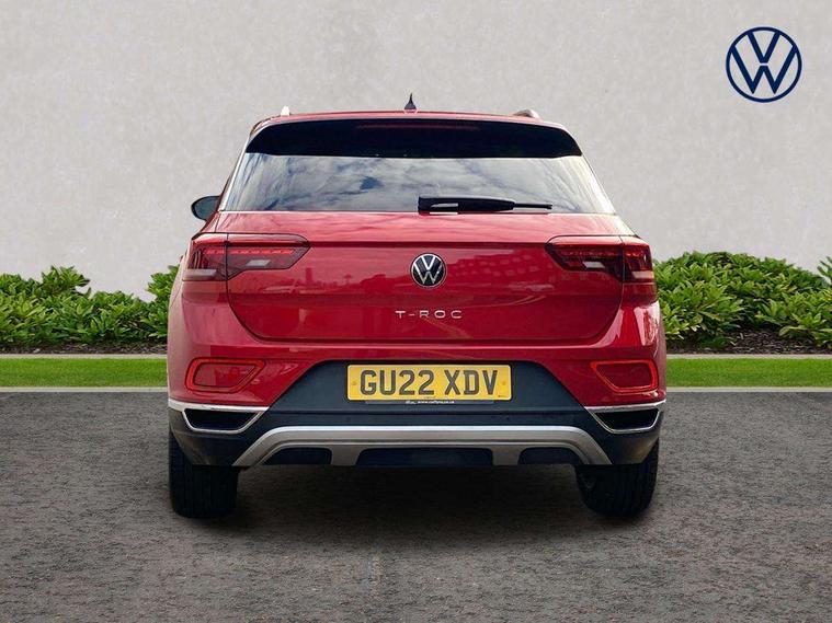 10.25" Digital cockpit pro, Bluetooth mobile phone interface, Driver alert system with fatigue detection, Driver tips and journey analysis, Emergency call service, Lane keeping system Lane Assist, Modified key software - reduce switch off time for key status change to Long no motion, Online services, Park assist including front and rear parking sensors, Service interval indicator, Tailgate/trunk lid release from outside, Think blue trainer driver tips and journey analysis, Warning sound and light for front seatbelts unfastened, Wireless app connect, Battery regeneration during braking, Start/stop function with battery regeneration, Diversity antenna for FM reception, Front and rear 6 speakers, Music playback - MP3, WMA and AAC files, Premium USB cable in choice of either Apple or Android smartphone compatibility, SD card slot, Simultaneous pairing of 2 compatible mobile devices, Title and cover art display, We Connect and We Connect Plus functionality, 3rd brake light, Auto dimming interior rear view mirror, Automatic hazard lights activation under emergency braking, Automatic headlight control with LED separate daytime running lights with coming/leaving home function, Body colour sports bumpers with silver metallic underbody fascia, Dynamic headlight range control with self adjusting whilst driving, Extended roof spoiler, Exterior mirrors aspherical on driver side, convex on front passenger side, External USB type C socket and charging sockets, Front windscreen wiper with intermittent wipe and 4 position delay, Heated rear window, LED Plus headlamps, LED rear combination lamps, LED rear number plate lights, LED tail lamp rear comination lamps, Light mode for poor weather, rain, fog or snow, Power windows with comfort operation and circuit breaker, Rain sensor, Rear exhaust tailpipe, Rear fog light on one side and reversing lights on both sides, Rear side wing doors, Rear wash/wipe with intermittent wipe setting, Remote electrically foldable door mirrors, puddle lights and reverse activated passenger's door mirror, 12V power socket in centre console, 3 rear head restraints, 3 seat bench in 2nd row, 4 load lashing points in luggage compartment, Air care climatronic air conditoning system with active combination filter and 2-zone temperature control, Chrome plated radiator grille inserts, air vent surrounds and light switch surrounds, Door and side trim panel with leatherette insert, Drawer under drivers seat, Front + rear carpet mats, Front centre armrest, Front comfort sports seats, Front cupholders x 2, Front footwell illumination, Instrument lighting, white adjustable panel illumination, Interior ambient lighting and surround lighting, Interior light delay, Isofix child seat preparation, Leather gearshift handle, LED interior light with switch off delay/dimmer and 2 front/rear LED reading lights, Load-through provision with cup holder when folded down ('Unsplit rear seat bench, split folding backrest, with centre armrest), Luggage compartment lighting, Non-folding front passenger seat backrest, Single front passenger seat, Storage compartment in left and right luggage area, Storage compartment in rear doors, Storage compartments in driver and front passenger doors, Sunvisors with illuminated vanity mirrors, Variable boot floor, height adjustable and removable, Driver assistance pack - T-Roc, 3 point height adj front seatbelts + pretensioners, 3 point seatbelts in outer rear with ECE label, ABS, Child locks on rear doors, Driver and front passenger airbag with front passenger airbag deactivation, Driver and front passenger safety-optimised head restraints, Drivers seatbelt reminder, Electronic parking brake, Electronic Stability Control (ESC) inc EDL (Electronic Differential Lock) and ASR (Traction Control), Front and rear passengers curtain airbag system including front side airbags, Front assist with city emergency braking and pedestrian monitoring, Front seat side impact airbags, Predictive pedestrian protection, Rear disc brakes, Single tone horn, Tyre pressure loss indicator, Volkswagen roadside assistance, Alarm with interior protection, Anti-theft alarm system with interior monitoring, backup horn, and towing protection, Remote central locking with SAFELOCK, radio remote control with 2 remote control folding keys, Trims for alloy wheels,