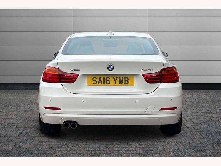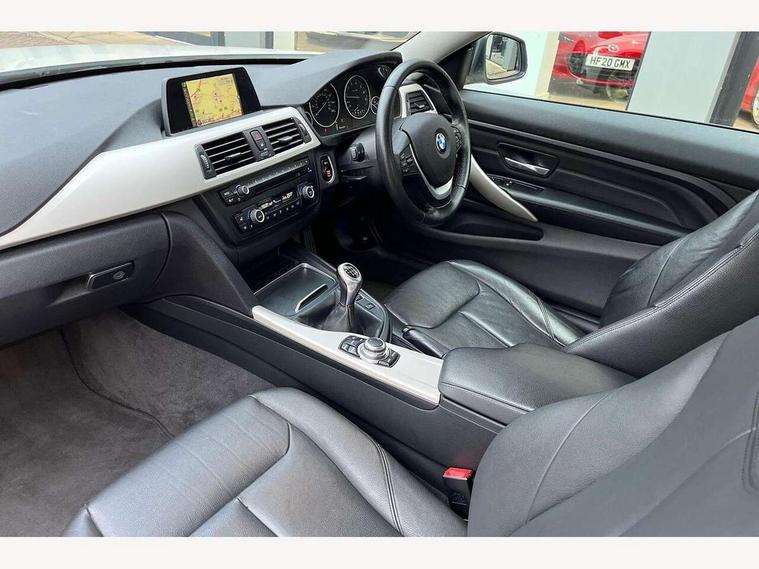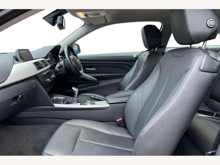 BMW Online services, BMW Teleservices, Brake pad wear indicator warning light, Check control system, Cruise control with brake assist, Door/boot open warning, Front/rear Parking distance control, Lights on warning, Oil temperature gauge, On board computer, Outside temperature display, Run flat indicator, Service interval indicator, Stop/start button, Drive Performance Control, Auxiliary point for auxiliary devices, Bluetooth audio streaming, BMW professional radio/CD/MP3, DAB Digital radio, 2 speed adjustable intermittent wipers with wash/wipe function, Auto dimming rear view mirror, Body colour bumpers, Body colour door handles, Body colour door mirrors, Body colour roof mouldings, Chrome exhaust tailpipe, Chrome kidney grille with black vertical slats, Daytime running lights, Door sill finishers, Electric adjustable heated door mirrors, Electric front windows/one touch facility, Follow me home headlights, Front fog lights, Headlight washers, Heat insulating tinted glass, Heated windscreen washer jets, Rain sensor including auto headlights activation, Windscreen with grey shadeband, 12V sockets in front centre console and passenger footwell, 3 spoke leather multifunction sports steering wheel, 4 grab handles, Anthracite Velour floor mats, Dakota leather upholstery, Dual zone climate control, Folding storage compartment with glasses holder + coin tray, Front centre armrest with storage compartment, Front cupholders x 2, Front head restraints, Front/rear armrests within door panels, Glovebox with lid, Heated front seats, Integrated rear head restraints, ISOFIX child seat preparation+airbag deactivation, Lashing eyelets in boot, Leather gearknob, Leather handbrake grip, Reach + rake adjustable steering column, Rear centre armrest, Storage compartment in rear centre console, Sunvisors with vanity mirrors, Toolkit located in luggage compartment, Extended lights package - 4 Series, Media pack - Business - 4 Series, 3 point seatbelts on all seats, ABS/EBD, Automatic Stability Control (ASC), BMW emergency call, Cornering brake control (CBC), Crash Sensor - activates hazard/interior lighting + unlocks doors, Driver seatbelt warning indicator, Driver/Front Passenger airbags, DSC+, Dynamic brake control, Dynamic Traction Control - DTC, Front seatbelt force limiters, Front seatbelt pretensioner, Front side airbags, Hill start assist, ITS head airbags for front/rear, Tyre pressure monitor, Warning triangle and first aid kit, Drive away door locking, Electronic immobiliser, Remote central locking, Remote control Thatcham category 1 alarm, Run flat tyres,